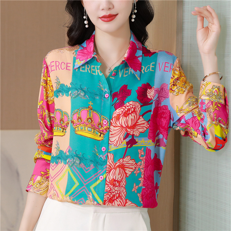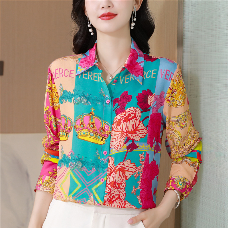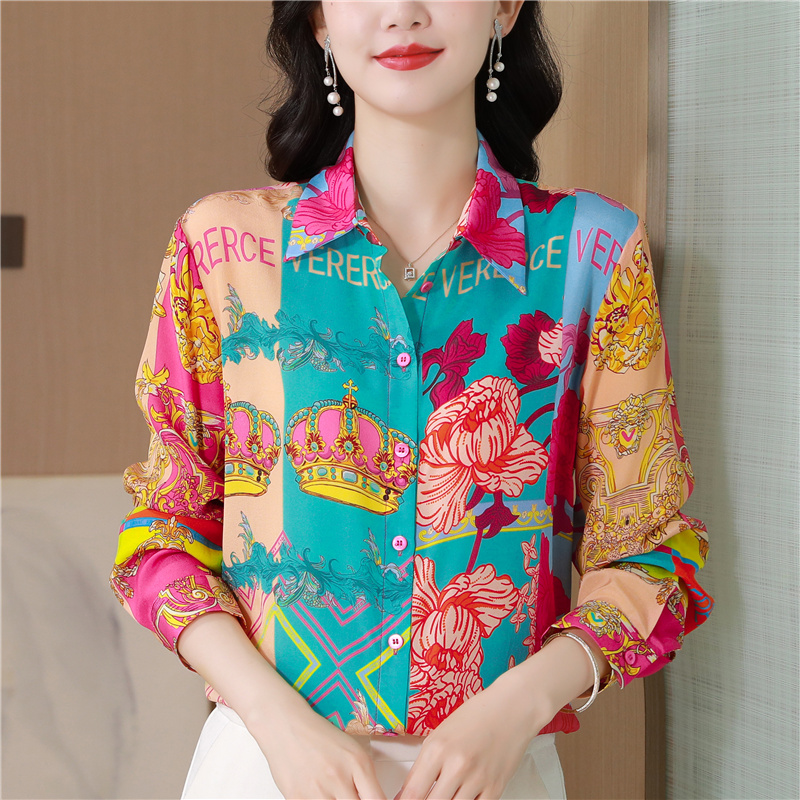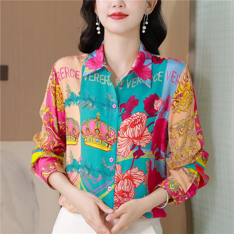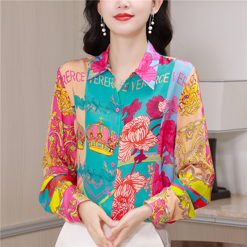 FA47652# 重磅真丝衬衫女上衣春秋装新款长袖大码气质印花桑蚕丝衬衣女 服裝批發女裝批發服飾貨源