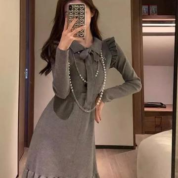 FA48013# 韩国高级设计感气质绝美系带绑带针织毛衣连衣裙秋冬小个子打底裙 服裝批發女裝批發服飾貨源