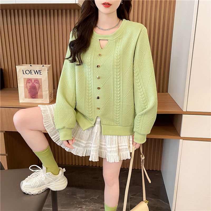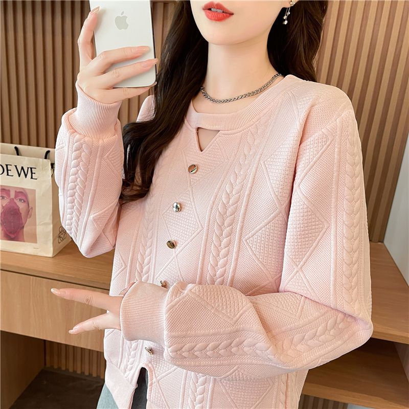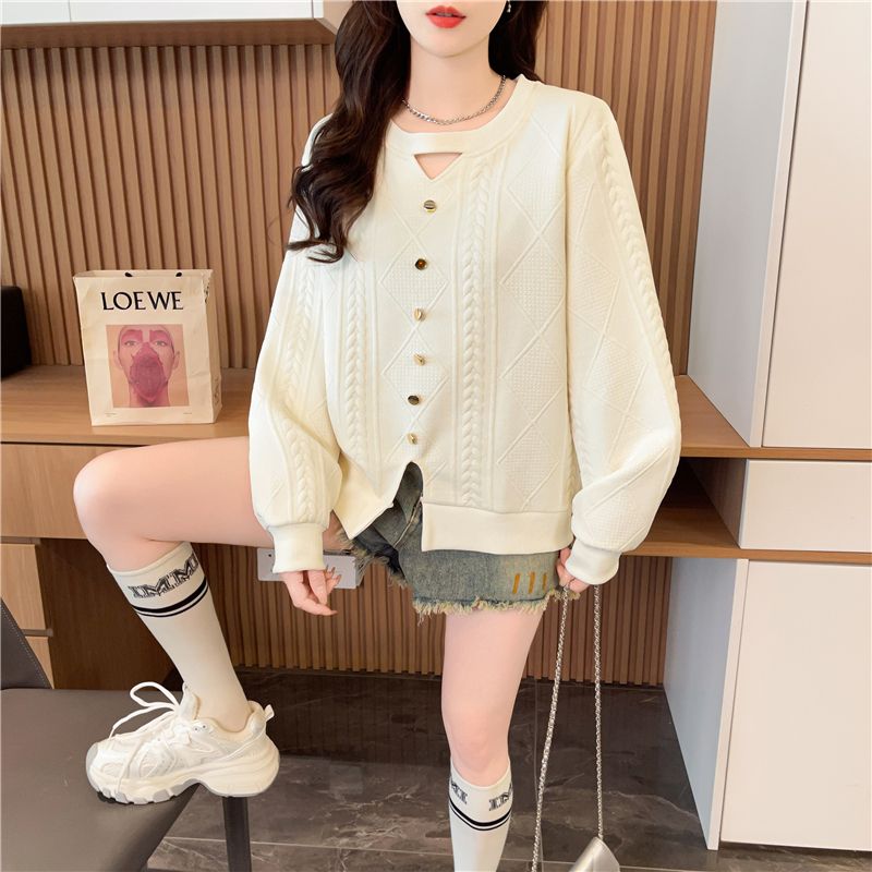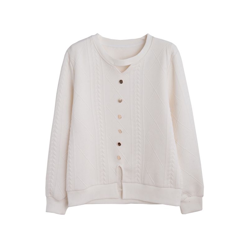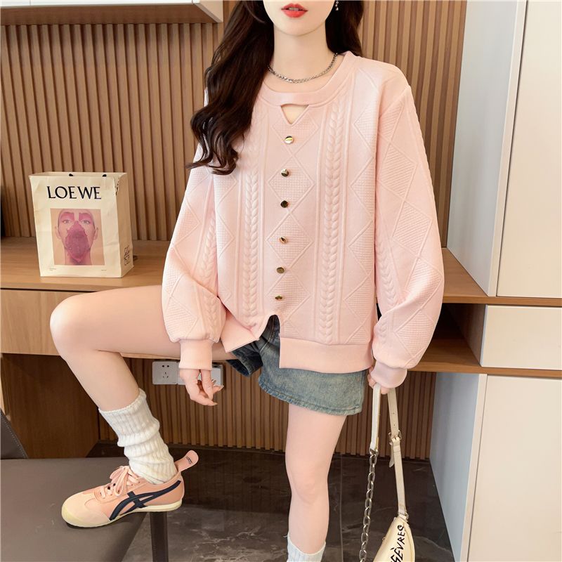 FA48091# 春秋韩版宽松螺纹拼接镂空装饰小设计提花卫衣女 服裝批發女裝批發服飾貨源