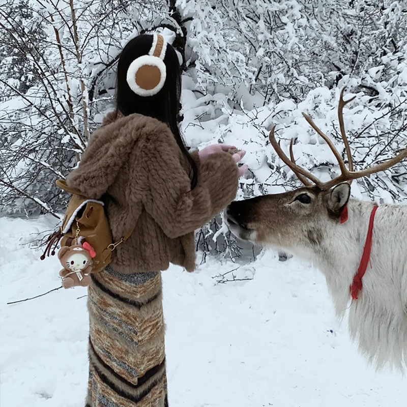 FA48231# 云南丽江废土风秋冬条纹针织连衣裙毛绒短外套侘寂裙子美拉德川西 服裝批發女裝批發服飾貨源