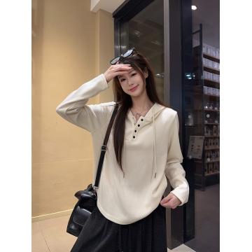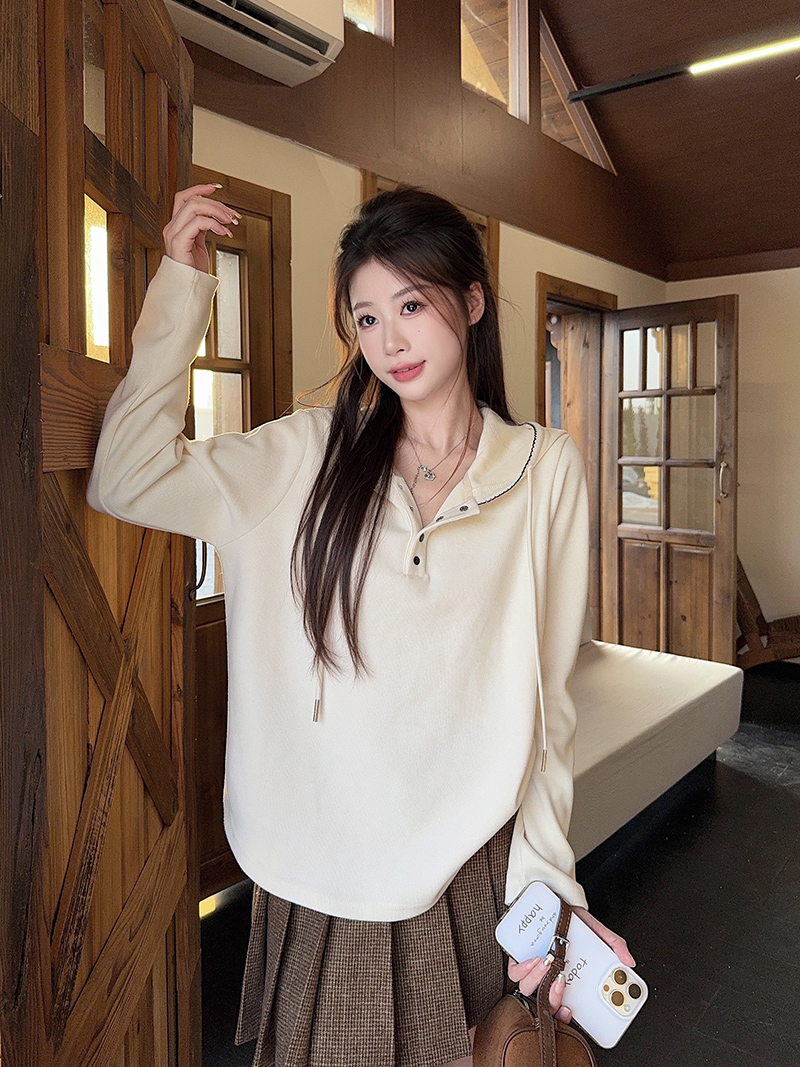 FA48237# 糯米绒长袖t恤打底衫女薄款潮春秋纯色新款宽松连帽上衣 服裝批發女裝批發服飾貨源