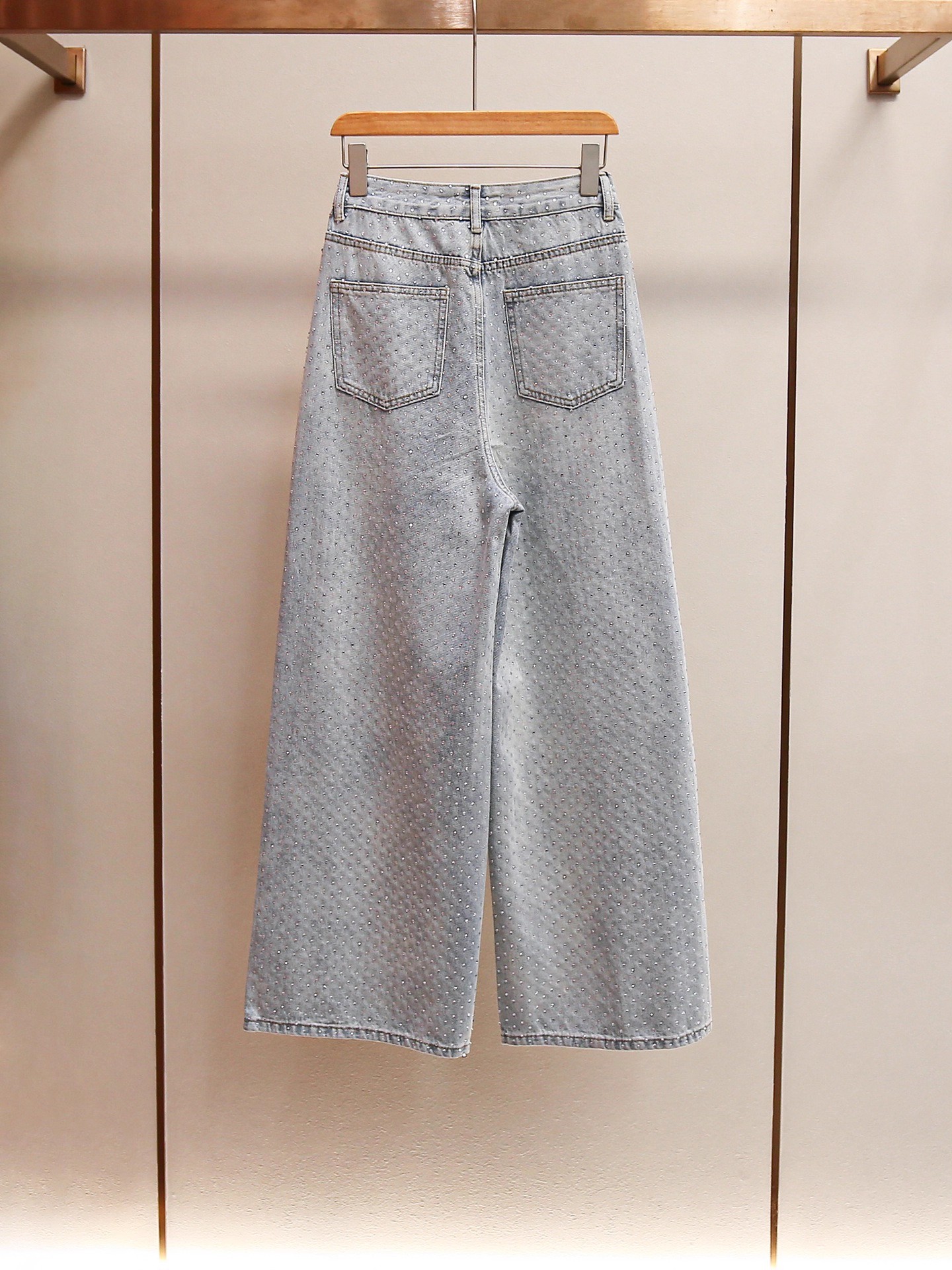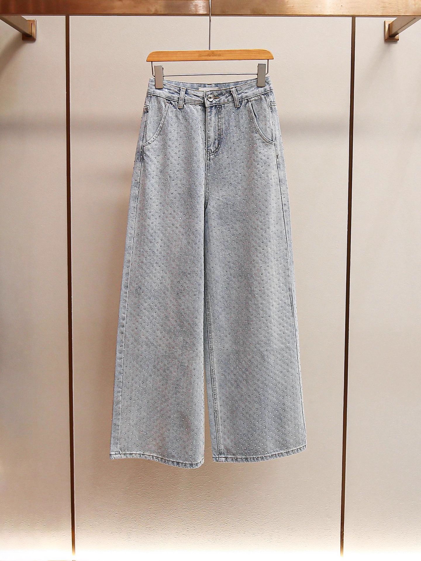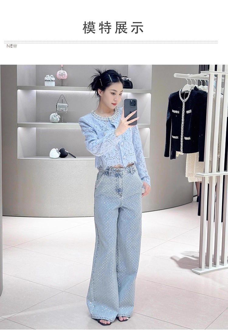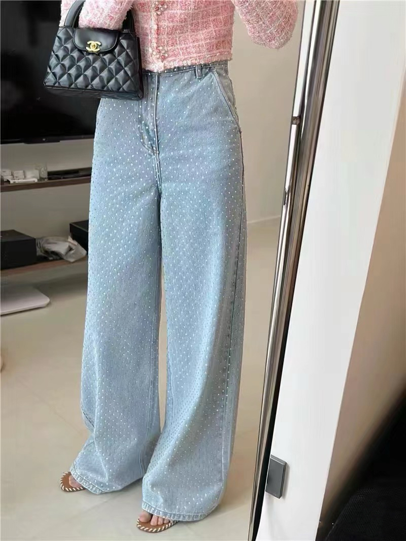 FA48268# 法式重工烫钻水洗蓝高腰阔腿裤时尚显瘦直筒牛仔裤女 服裝批發女裝批發服飾貨源