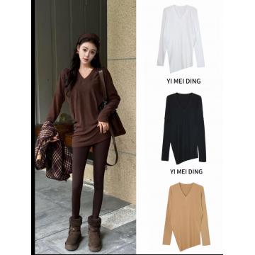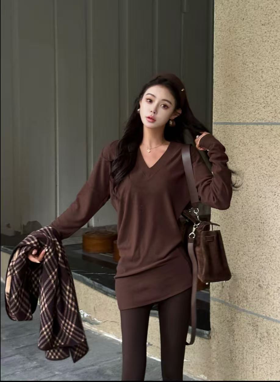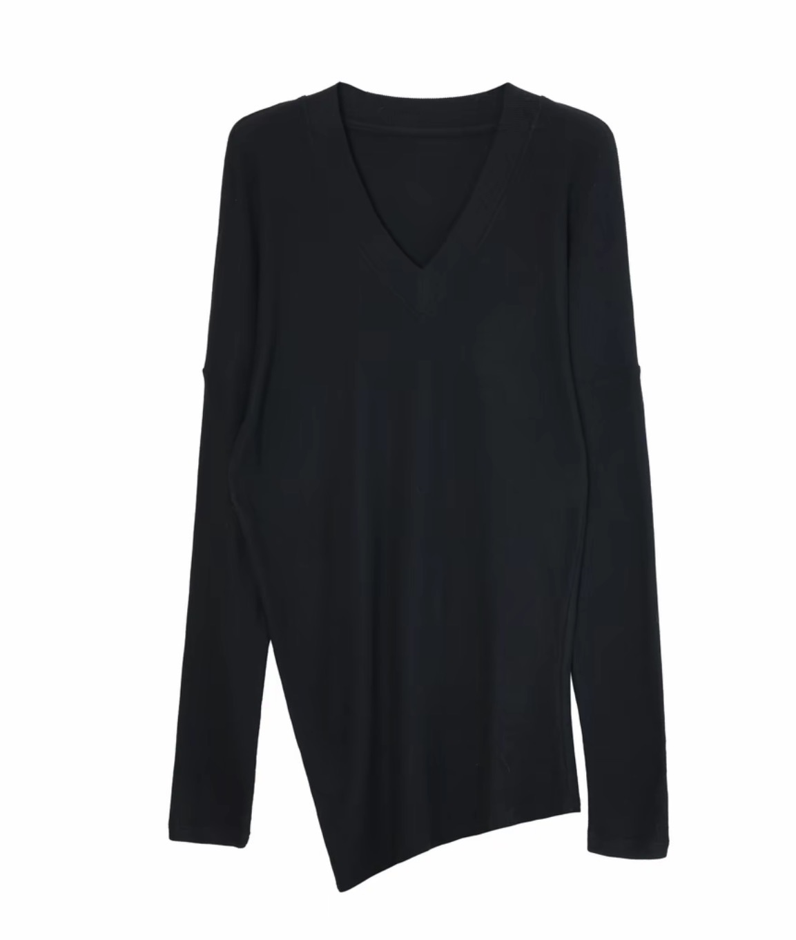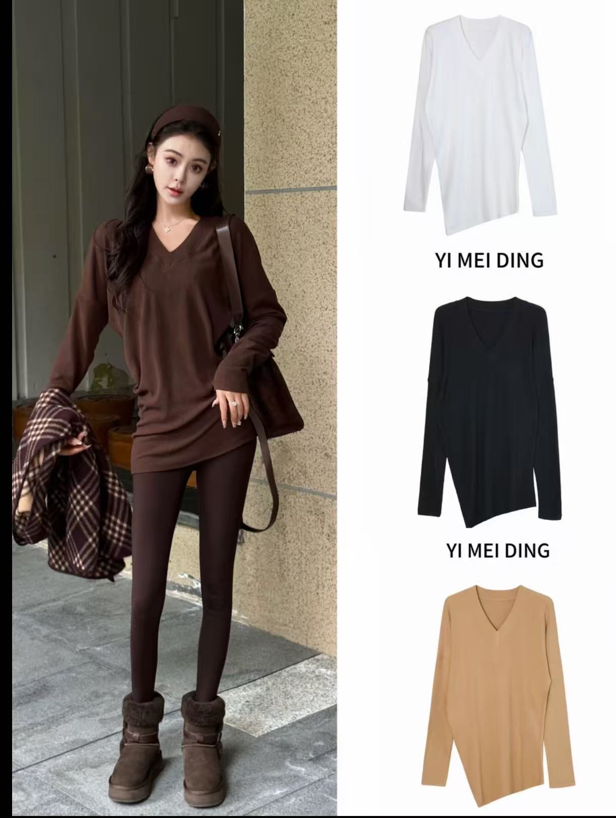 FA48338# 新款V领设计感素版蝙蝠袖磨毛百搭T裙 服裝批發女裝批發服飾貨源