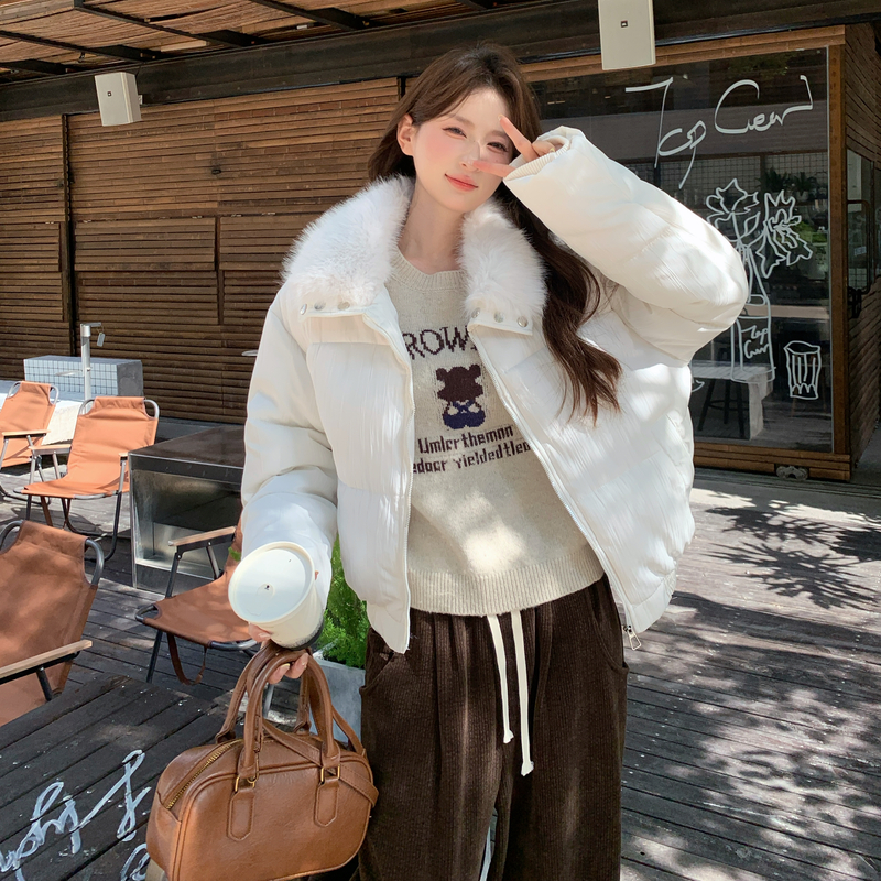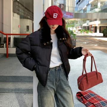 FA48481# 美式复古毛领翻领加厚棉服外套女小香风冬季时尚气质短款棉袄 服裝批發女裝批發服飾貨源