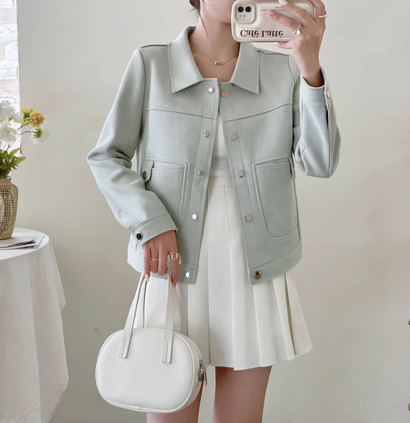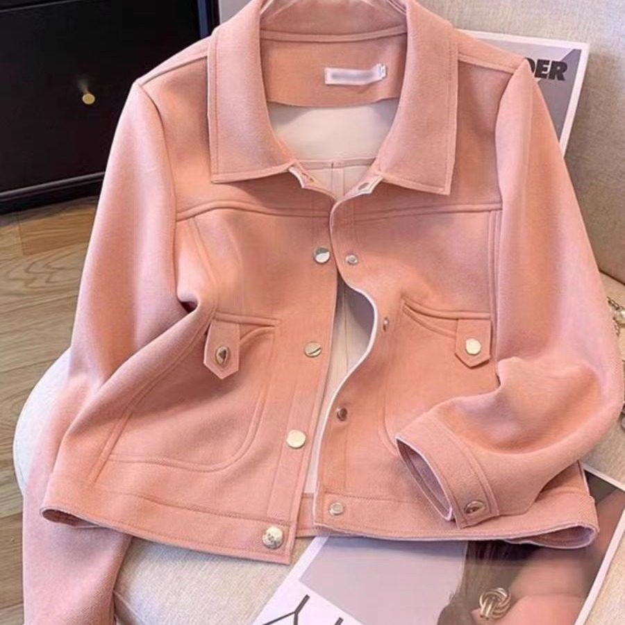 FA48500# 仿鹿皮绒外套女秋冬短款新款宽松休闲百搭小个子气质显瘦夹克 服裝批發女裝批發服飾貨源