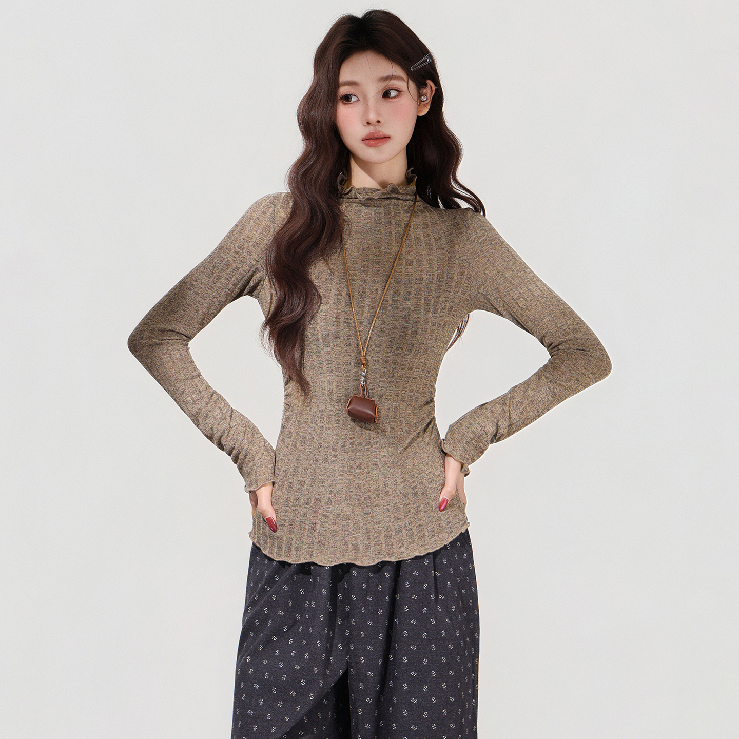 FA48734# 美式复古高领长袖t恤女秋冬季新款修身软糯内搭打底上衣 服裝批發女裝批發服飾貨源