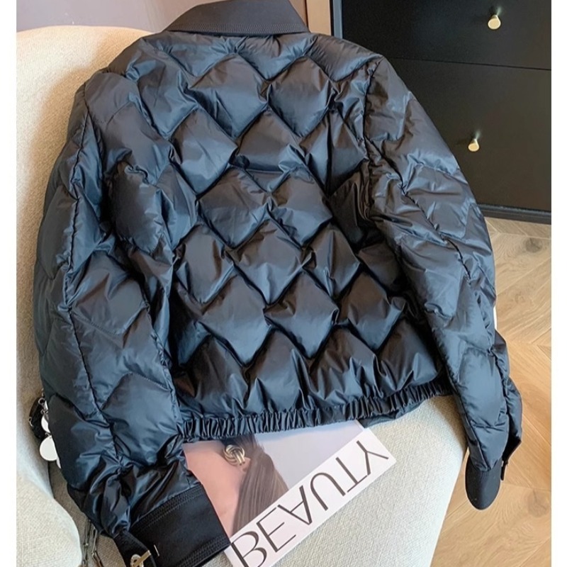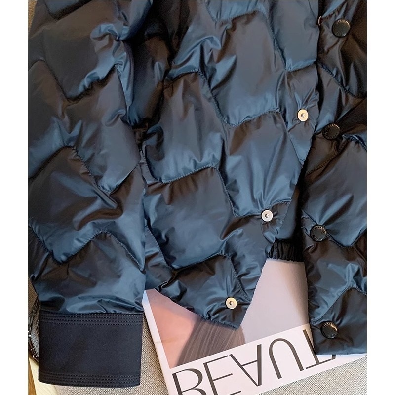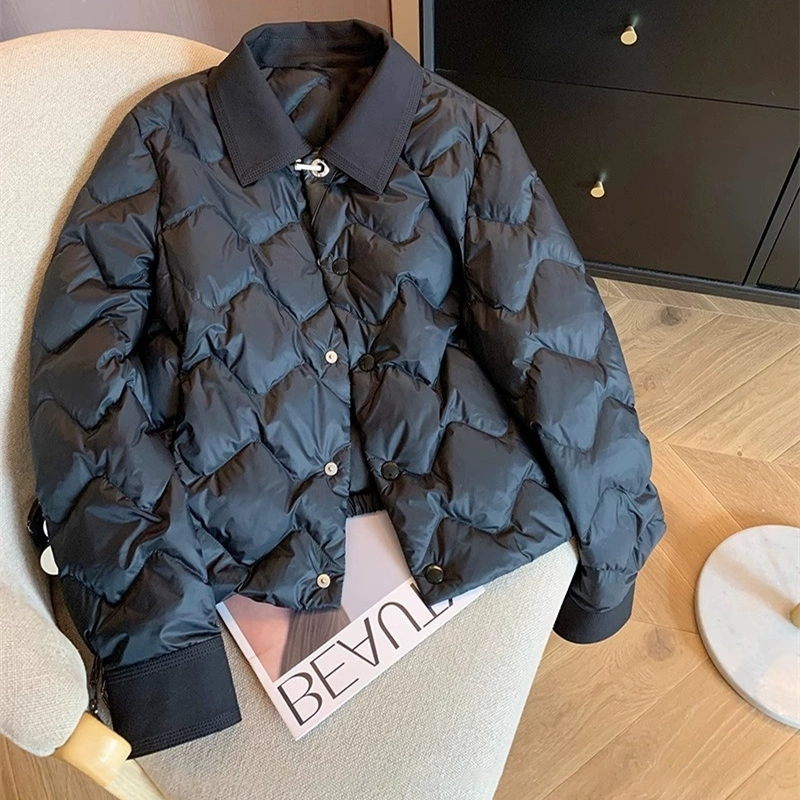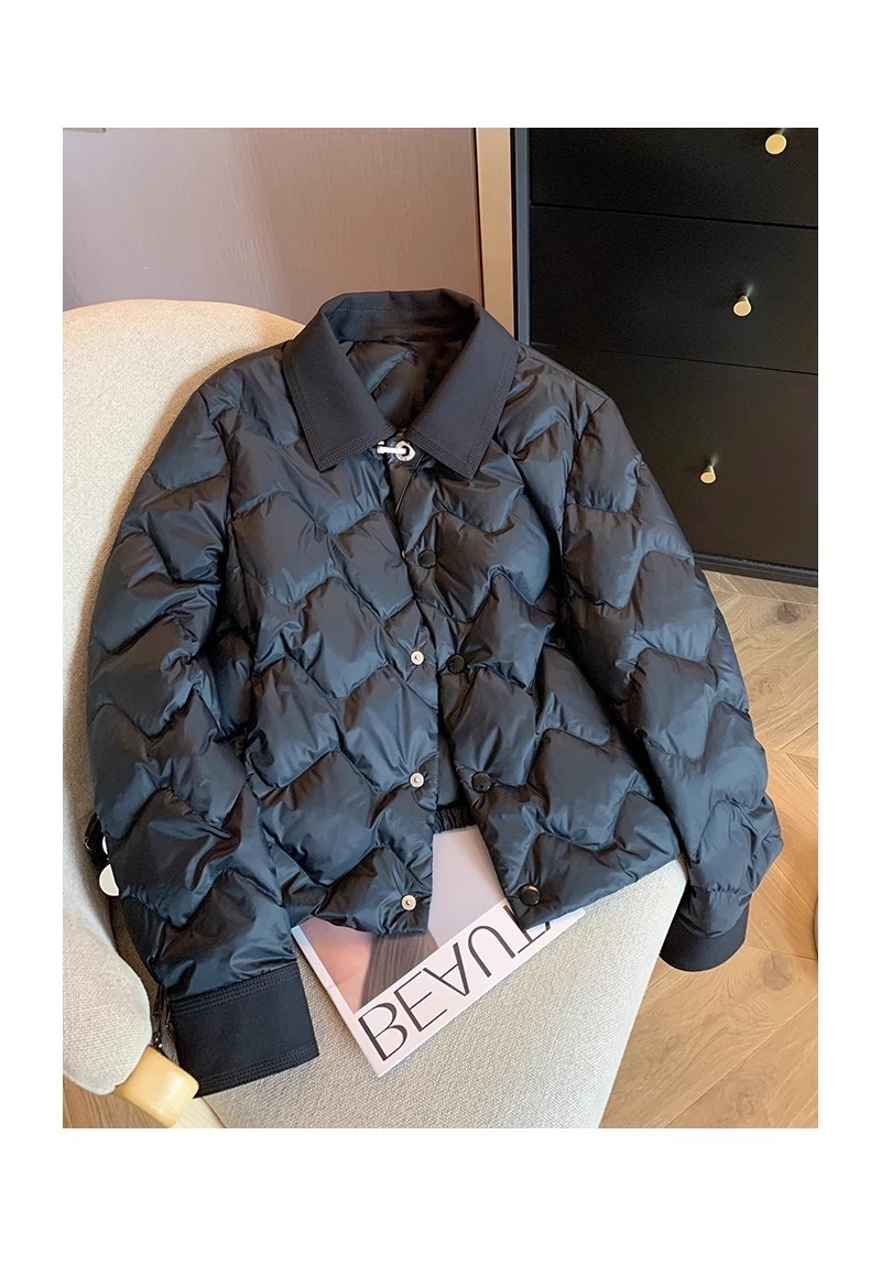 FA48740# 黑色翻领短款轻薄棉服外套女秋冬新款小个子保暖气质时尚棉衣 服裝批發女裝批發服飾貨源