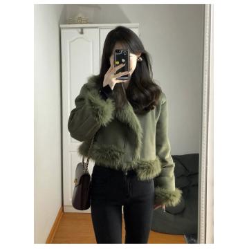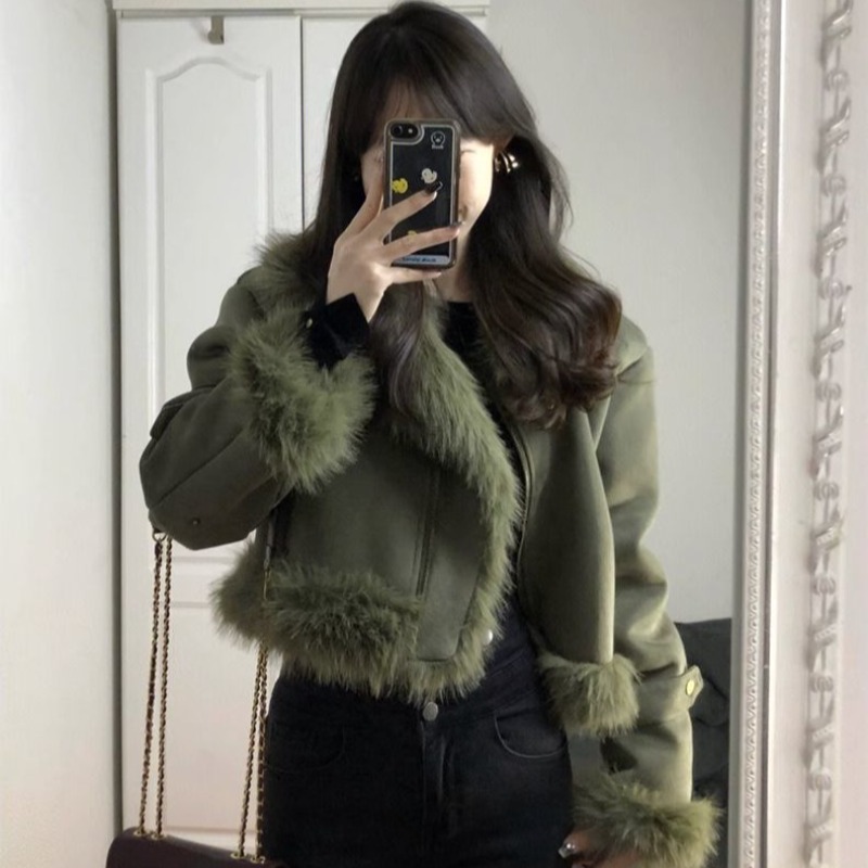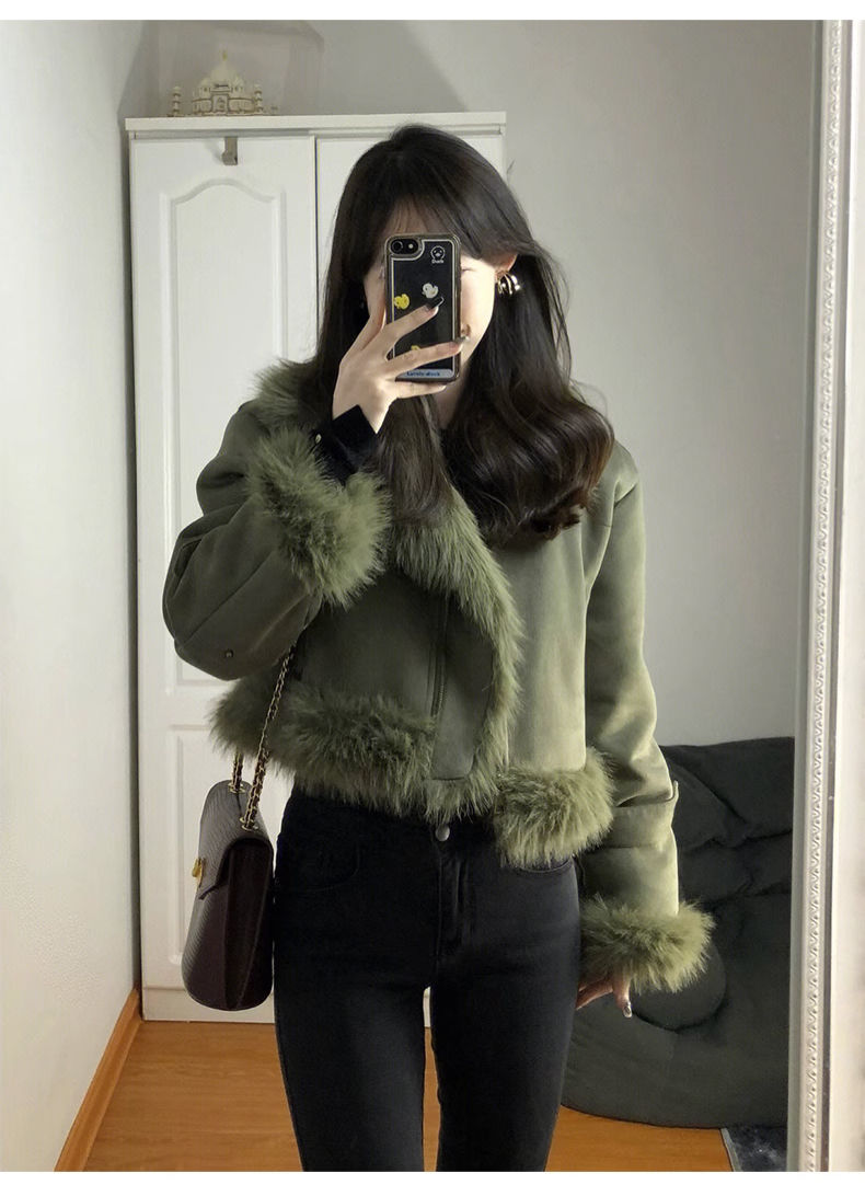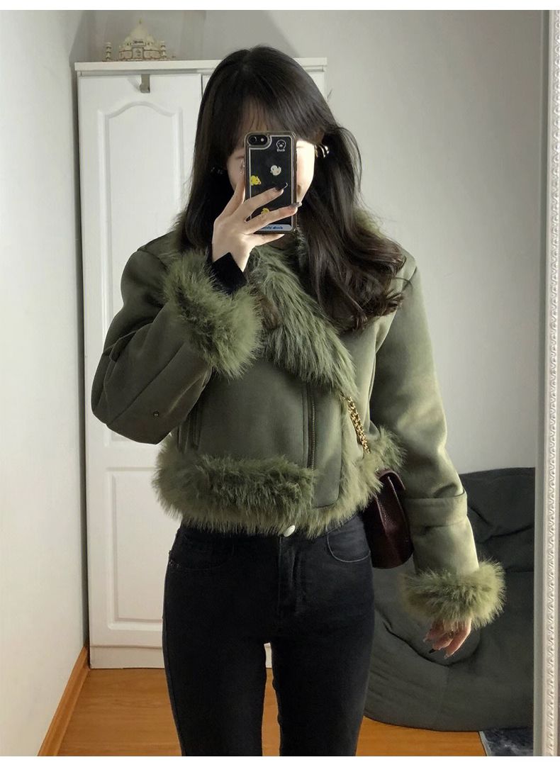FA48742# 仿狐狸毛皮毛一体机车服女秋冬设计感小个子环保毛毛外套女 服裝批發女裝批發服飾貨源