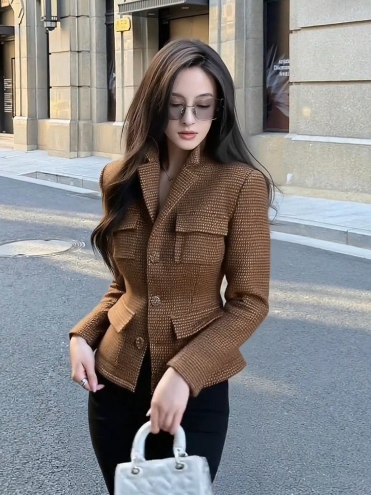 棕色小香风外套女秋冬气质高级感时髦洋气巨好看轻熟掐腰上衣 服裝批發女裝批發服飾貨源