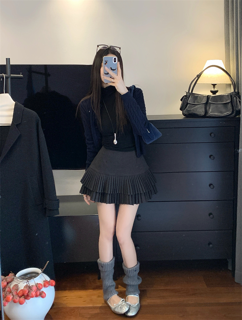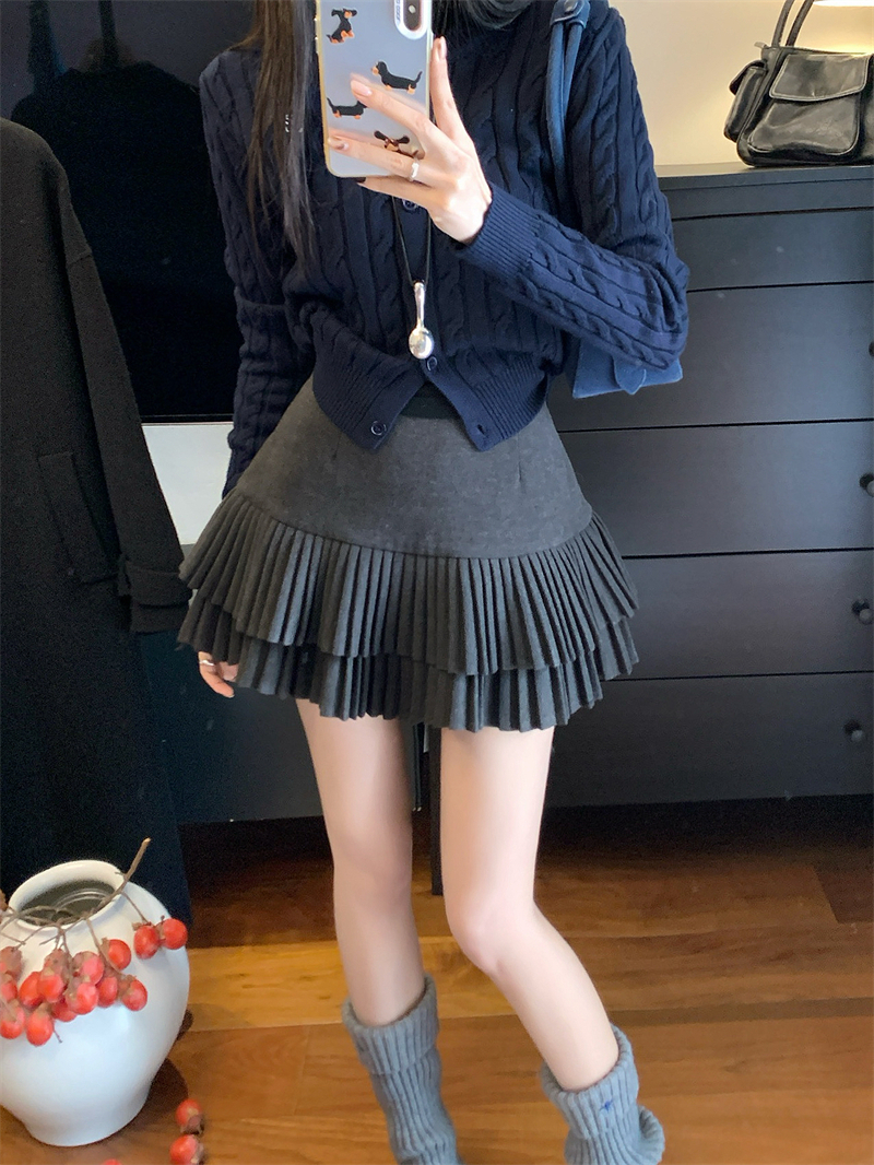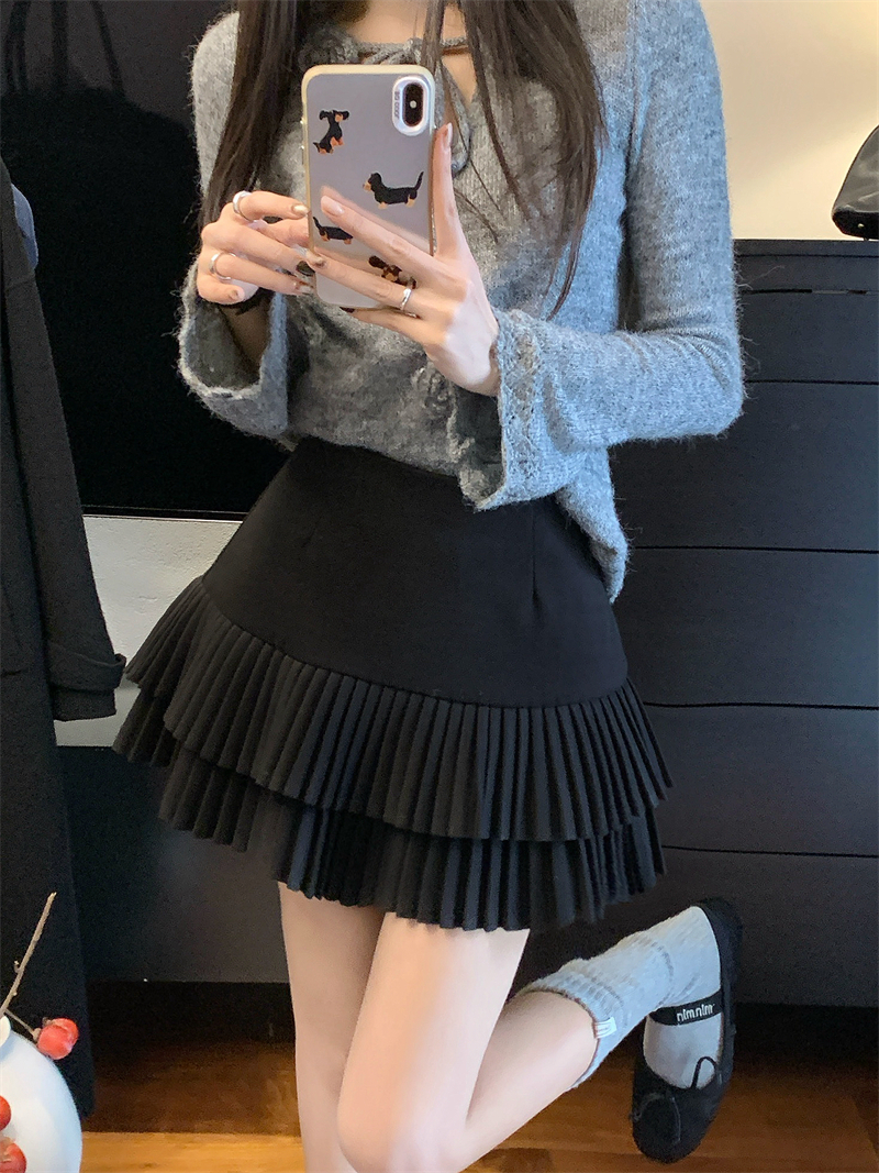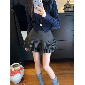 ~大码胖MM复古设计感百褶半身裙A字高腰显瘦防走光短裙 服裝批發女裝批發服飾貨源