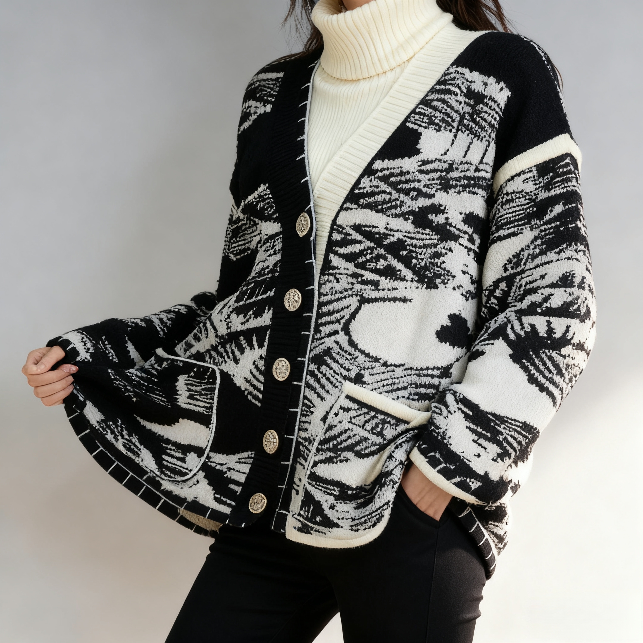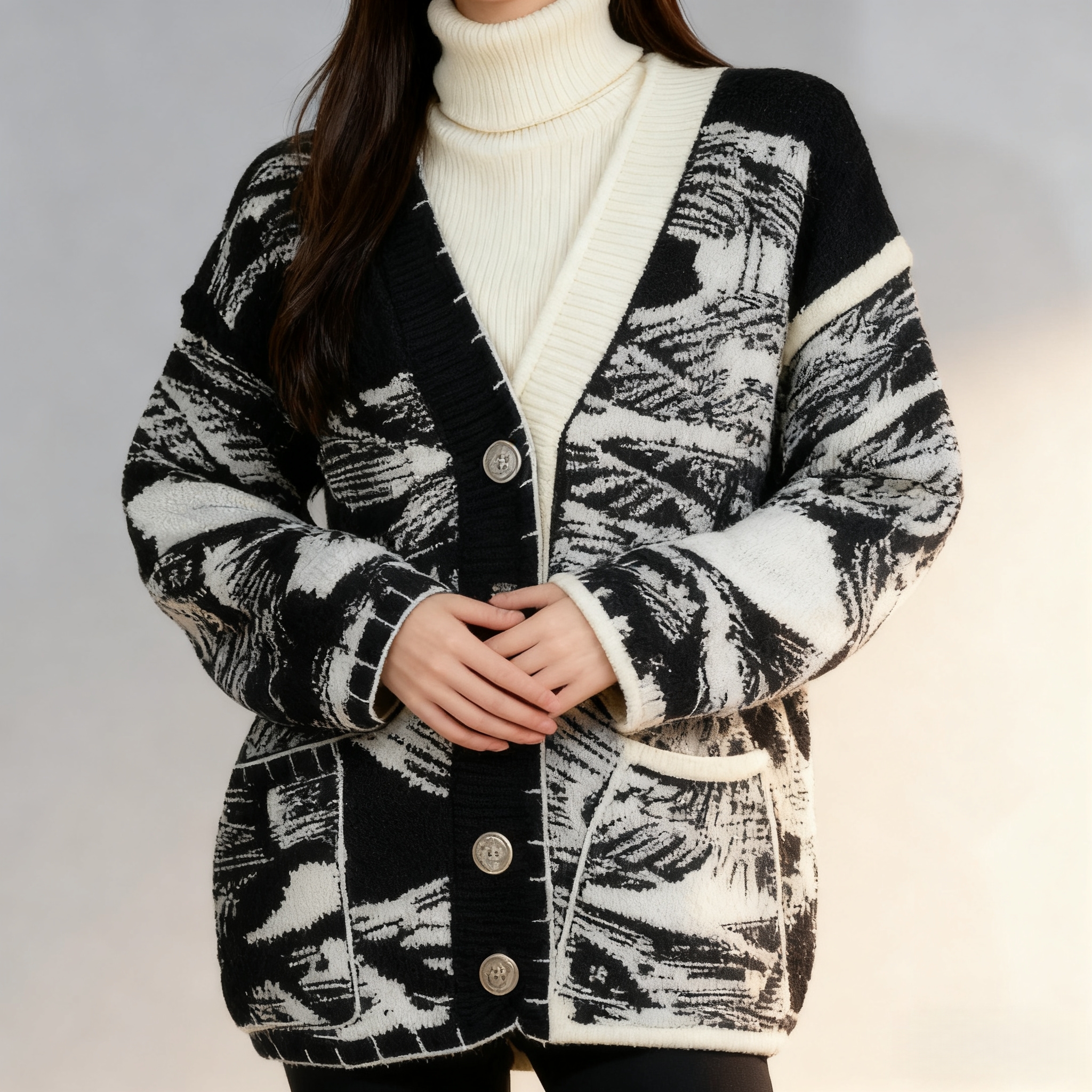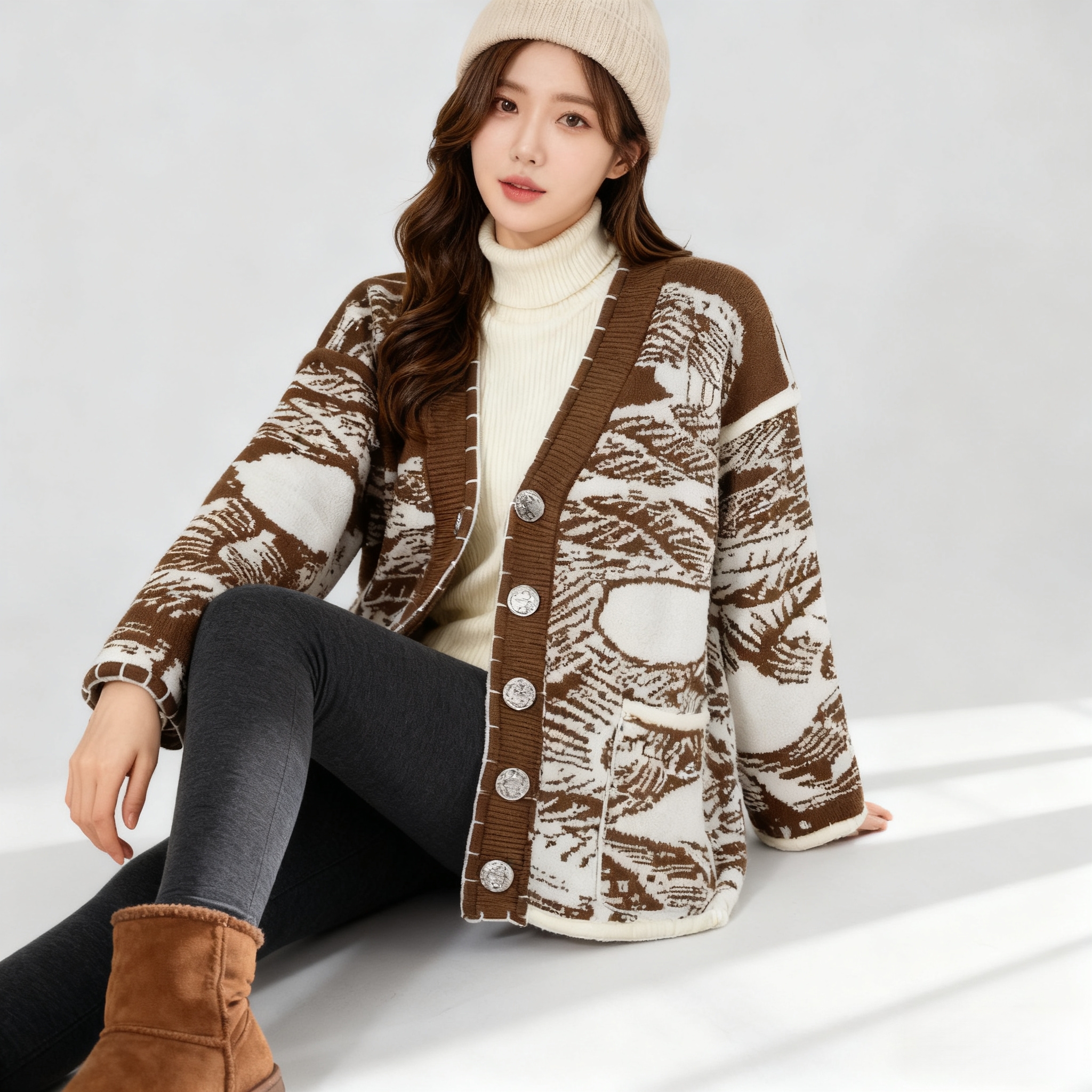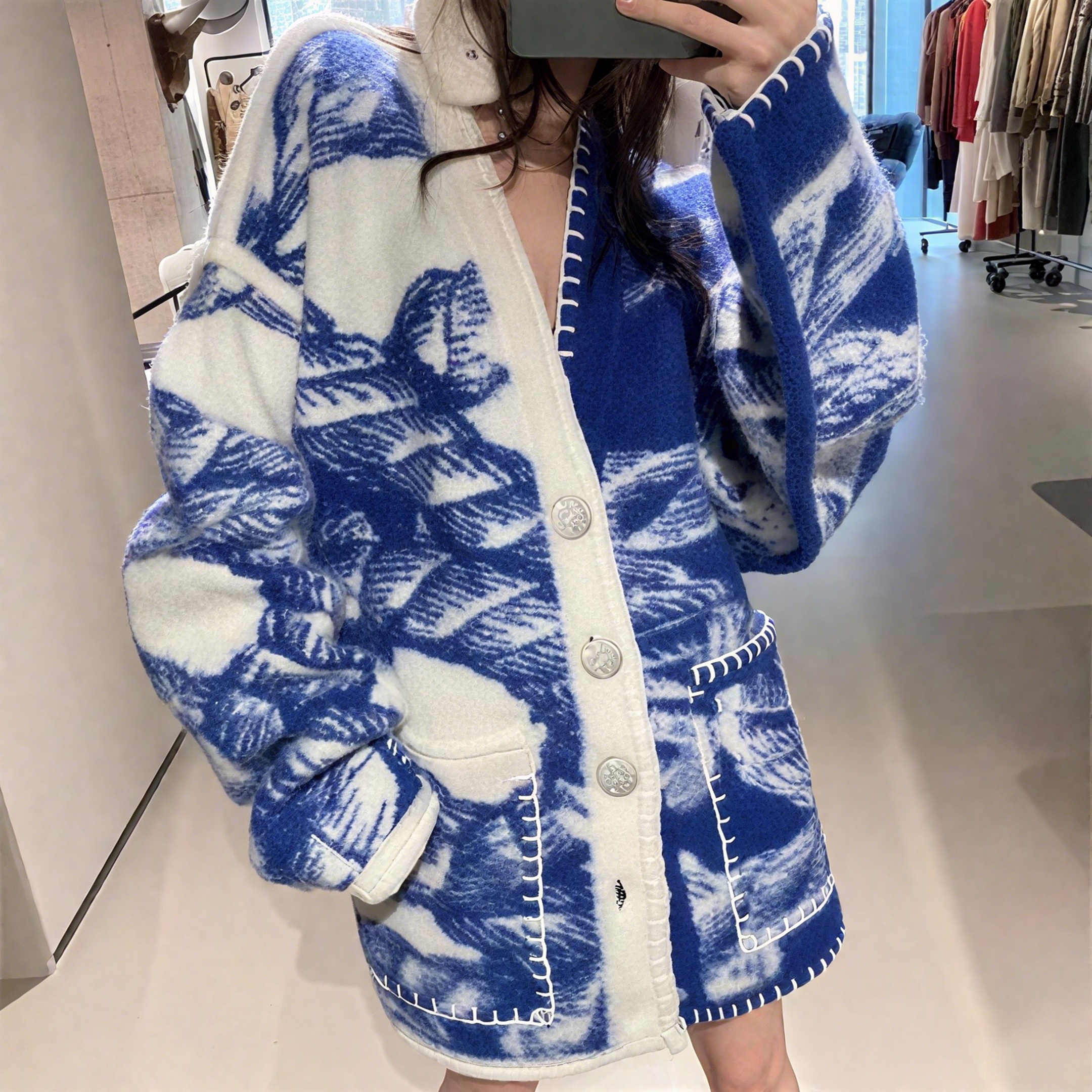 明星同款加厚手工缝无限锁边针织开衫宽松慵懒风青花瓷针织衫 服裝批發女裝批發服飾貨源