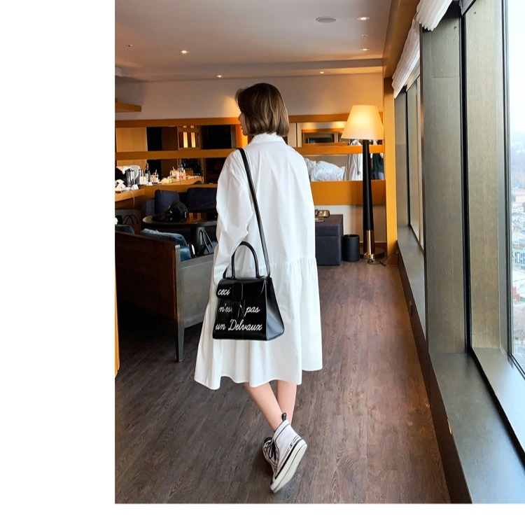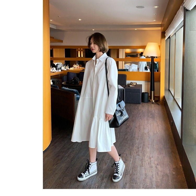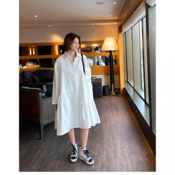 设计感不规则连衣裙女中长款春季新款韩版宽松显瘦衬衫裙子潮女 服裝批發女裝批發服飾貨源