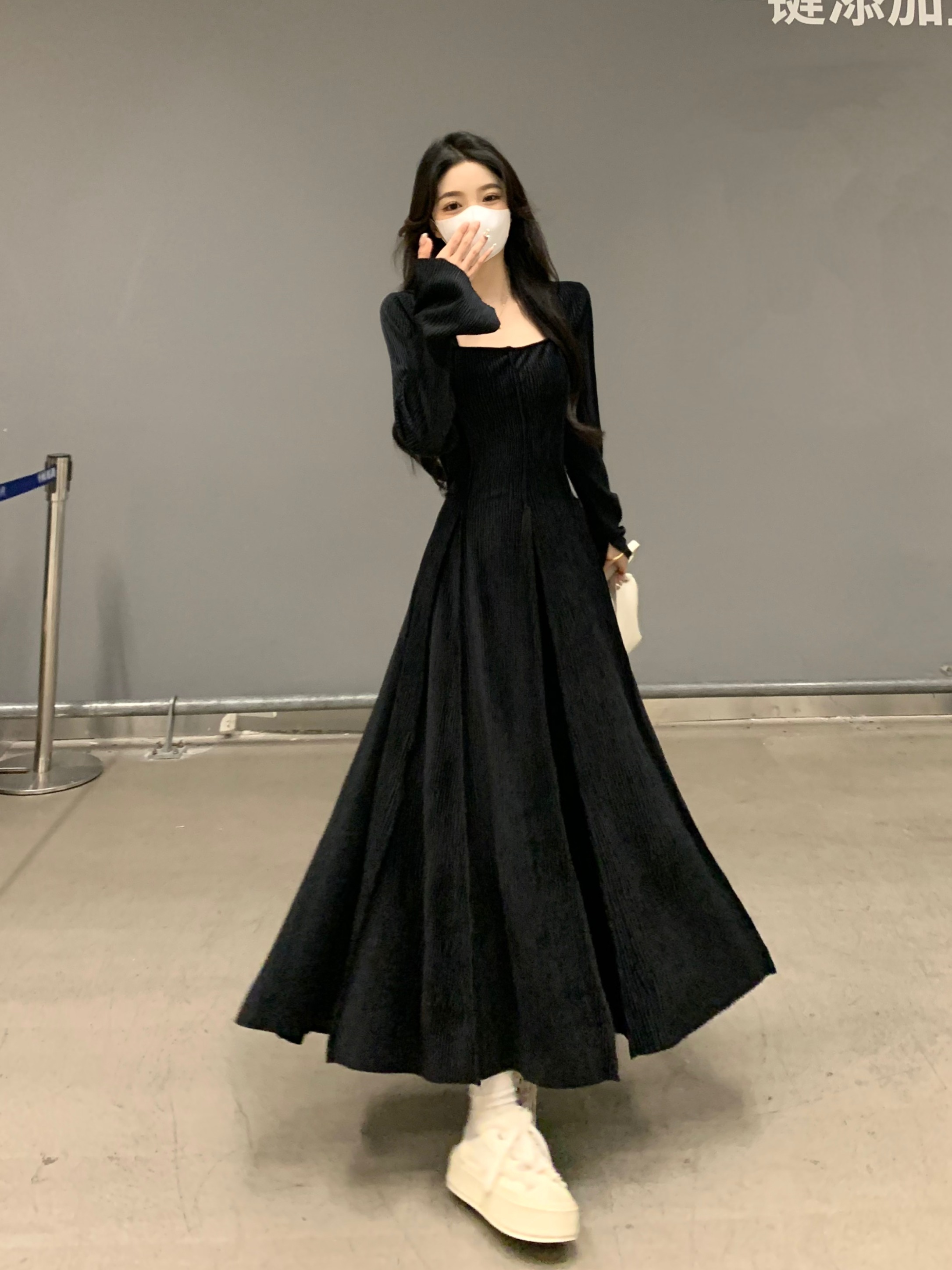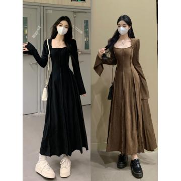 秋冬新款高级感修身显瘦气质内搭中长丝绒连衣裙 服裝批發女裝批發服飾貨源