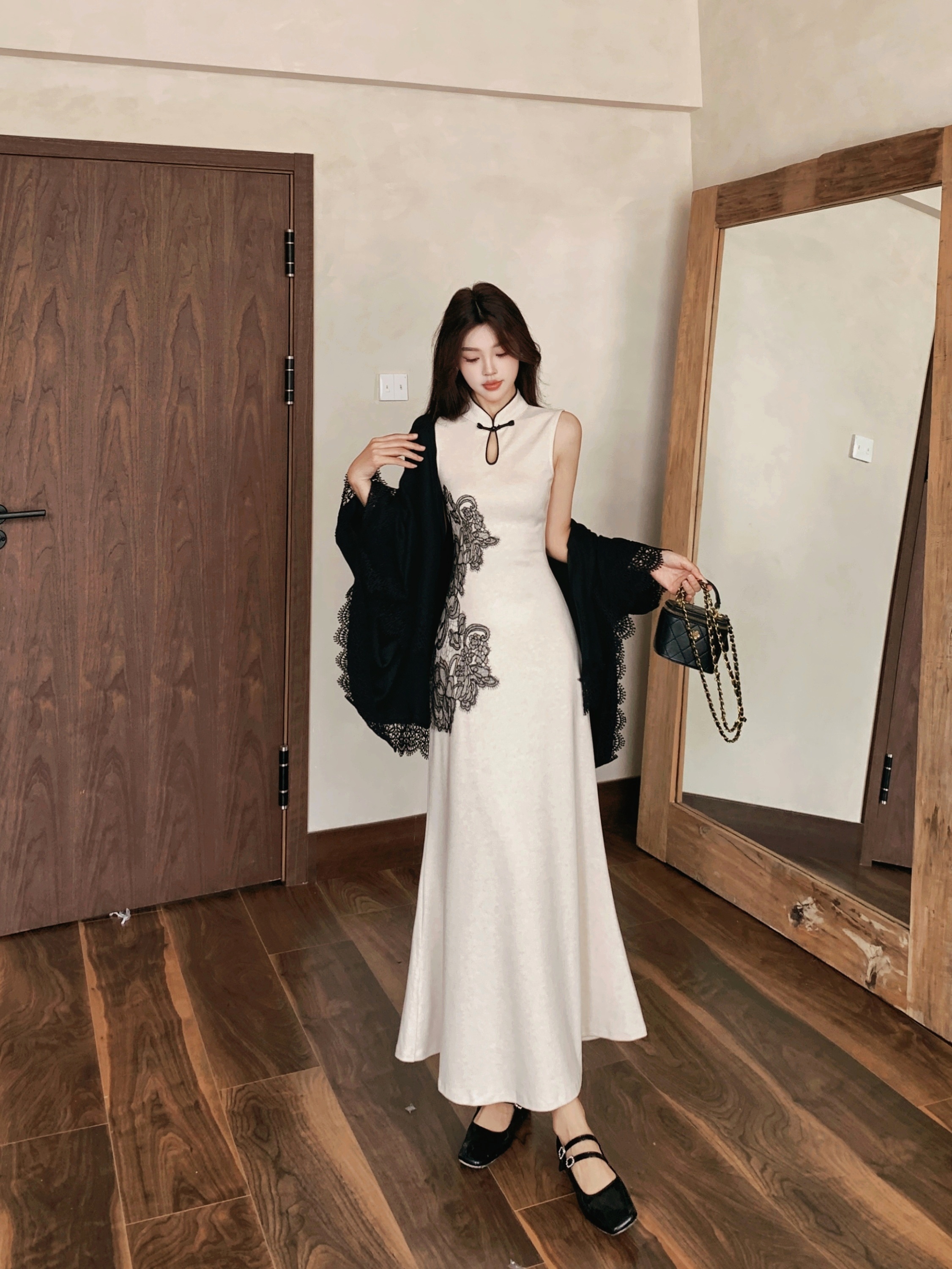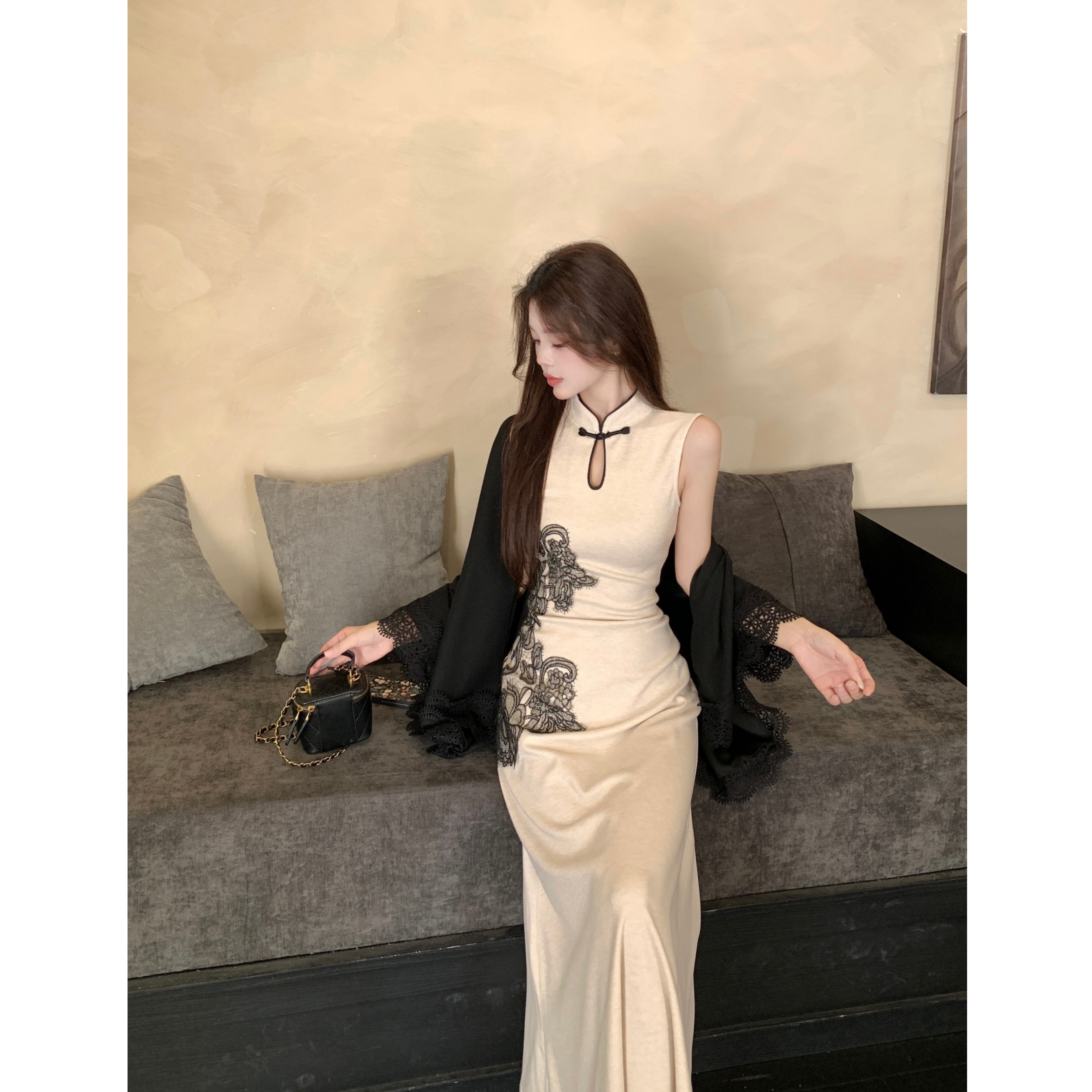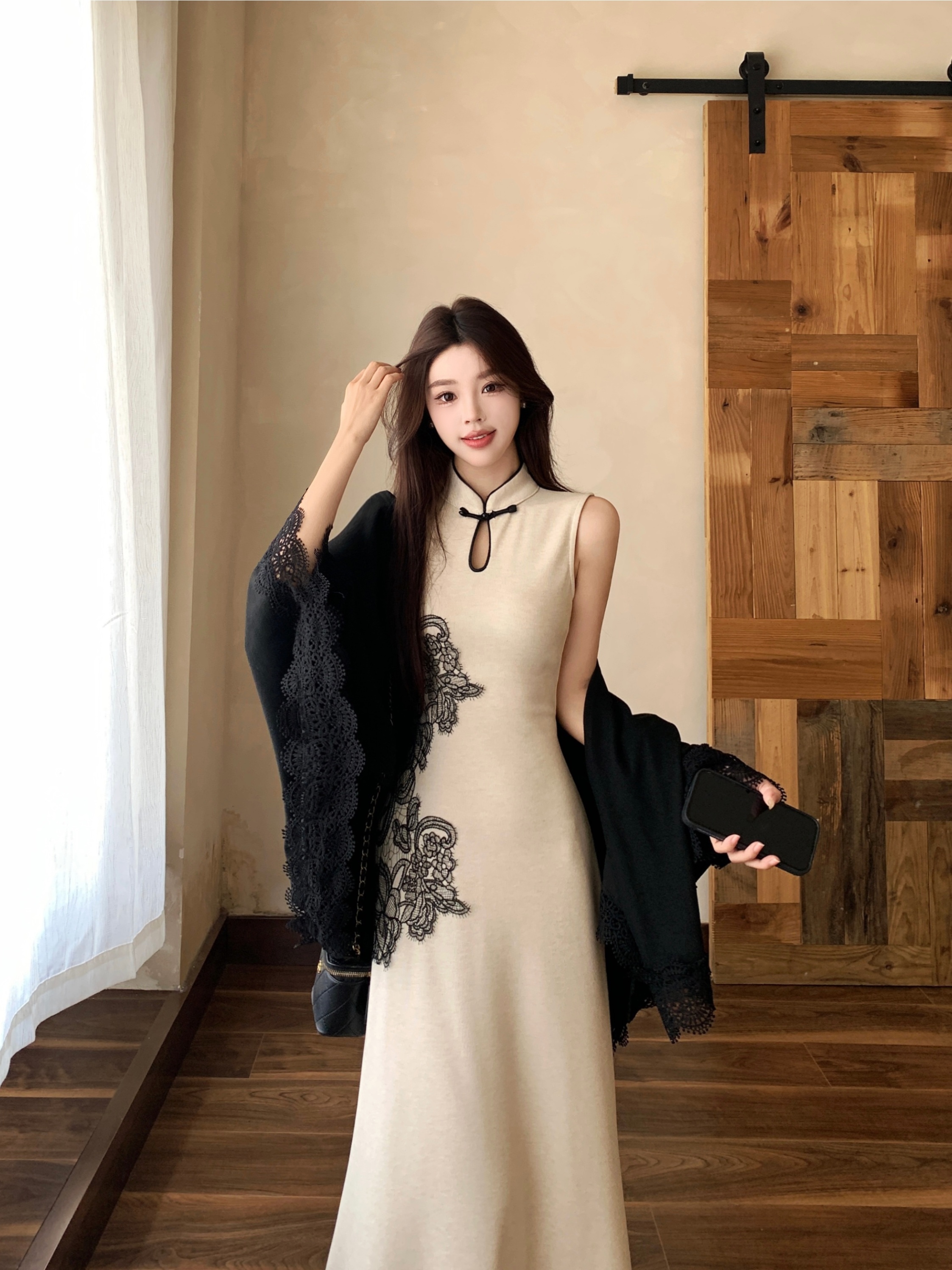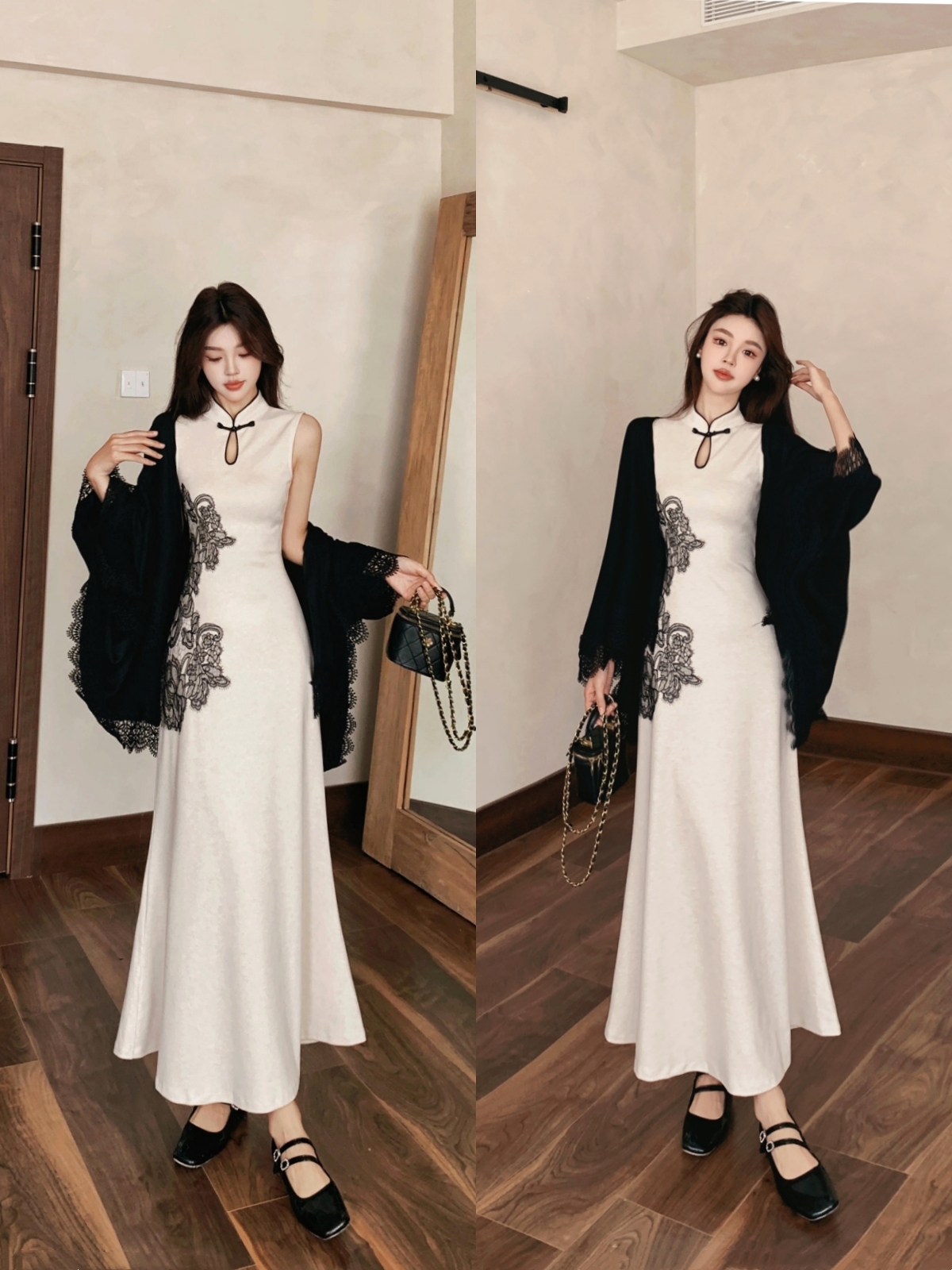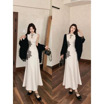 Home > 夜店裙、长袖连衣裙 > 秋冬新中式无袖旗袍针织连衣裙长裙开衫两件套套装 服裝批發女裝批發服飾貨源
