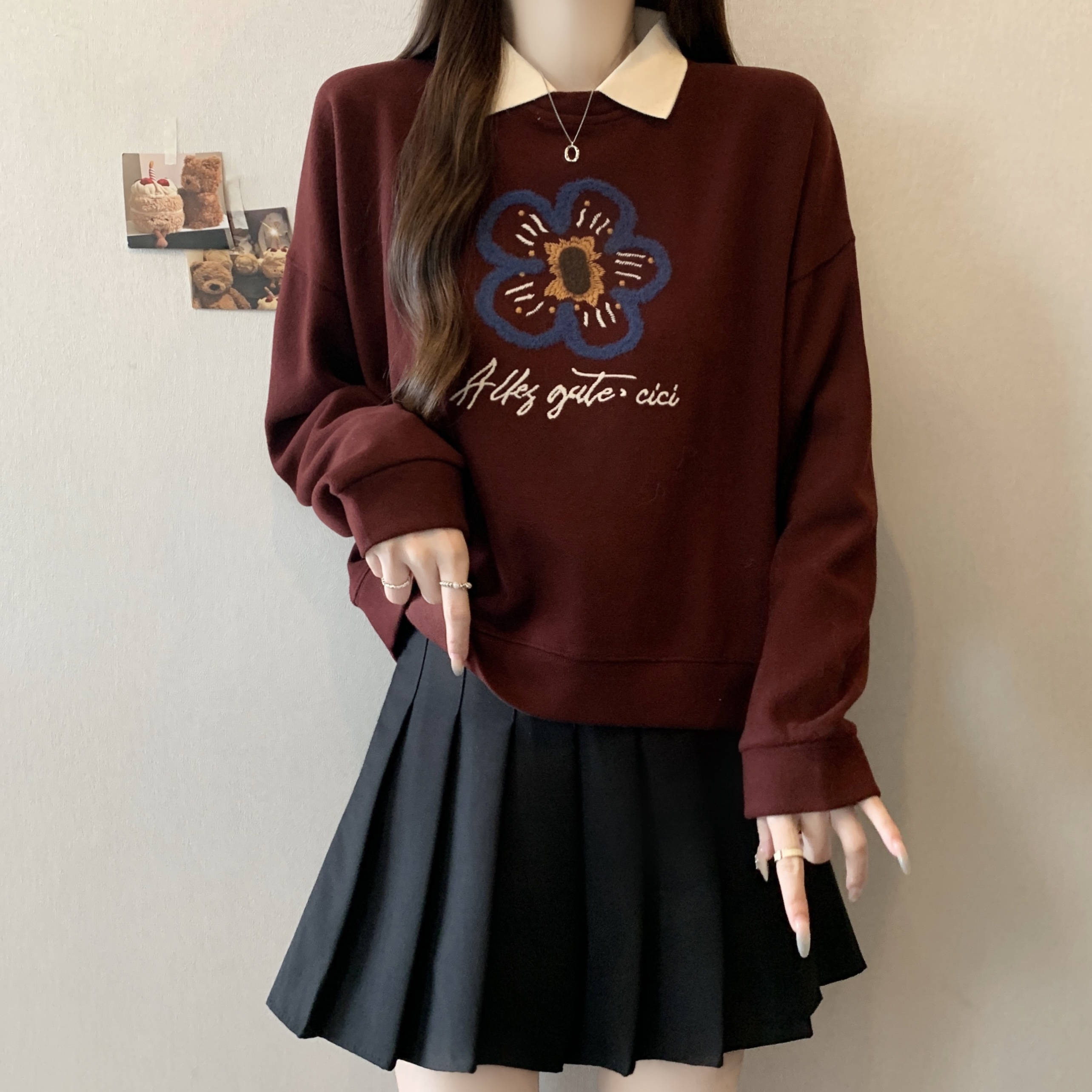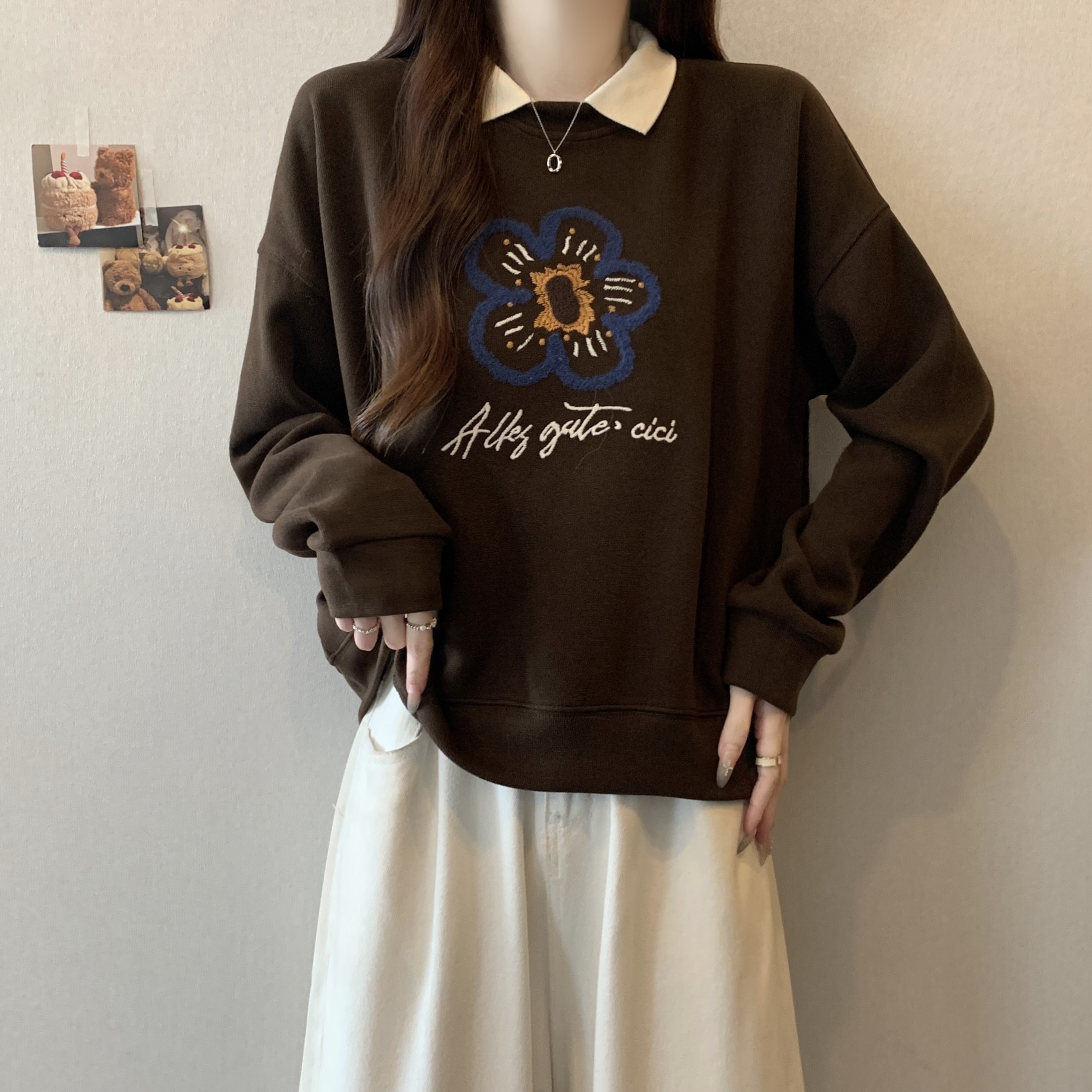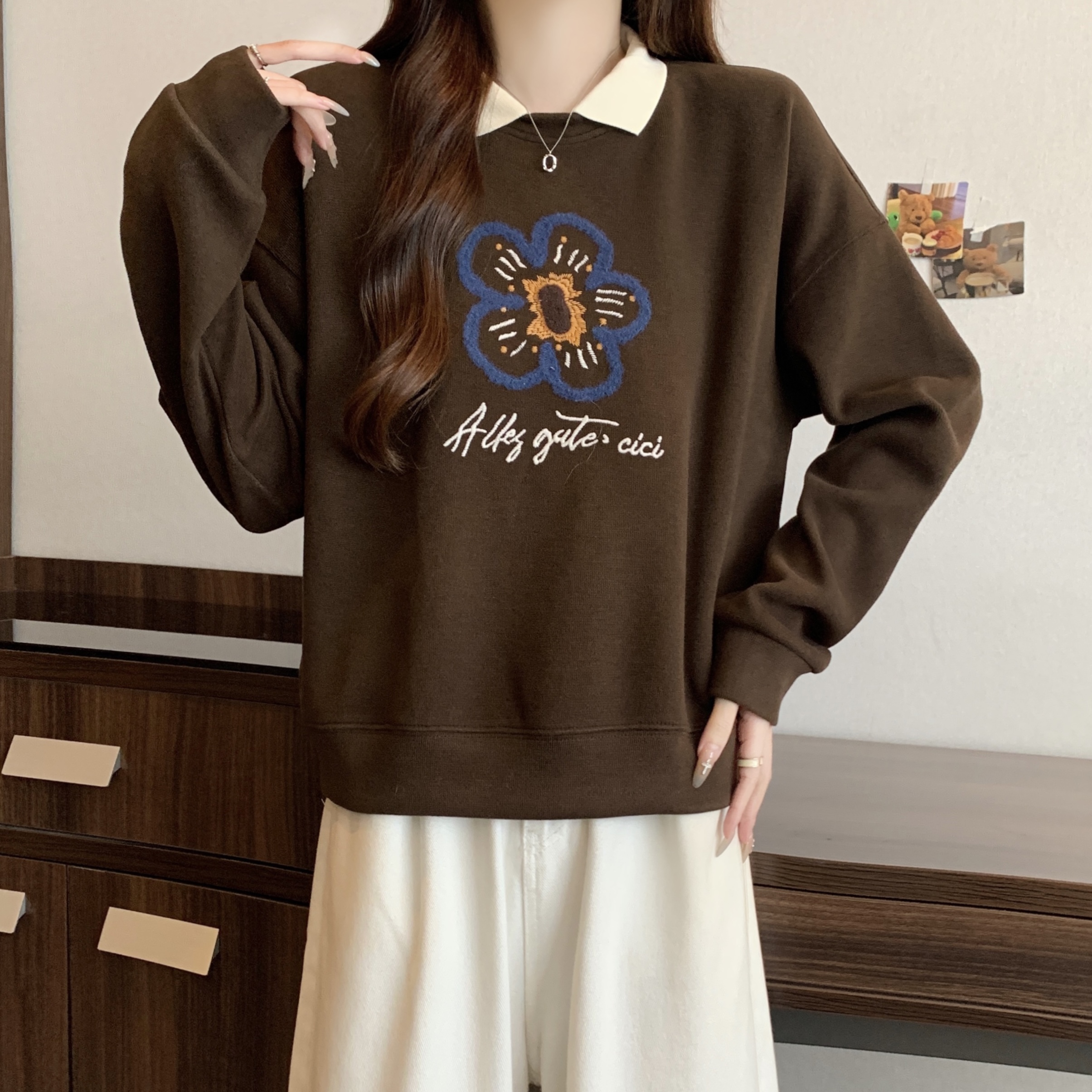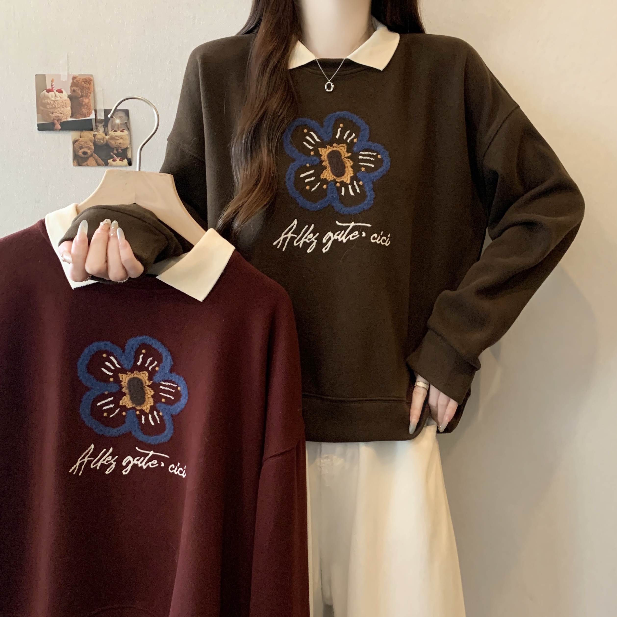 Home > 卫衣 > 新款大码女装胖MM秋冬设计感假两件花朵印花百搭卫衣 服裝批發女裝批發服飾貨源
