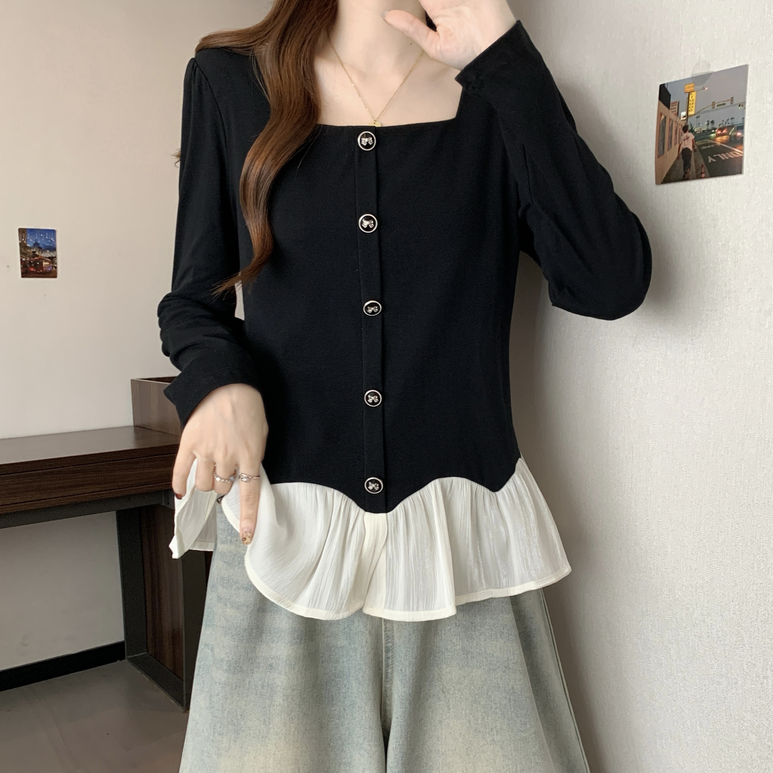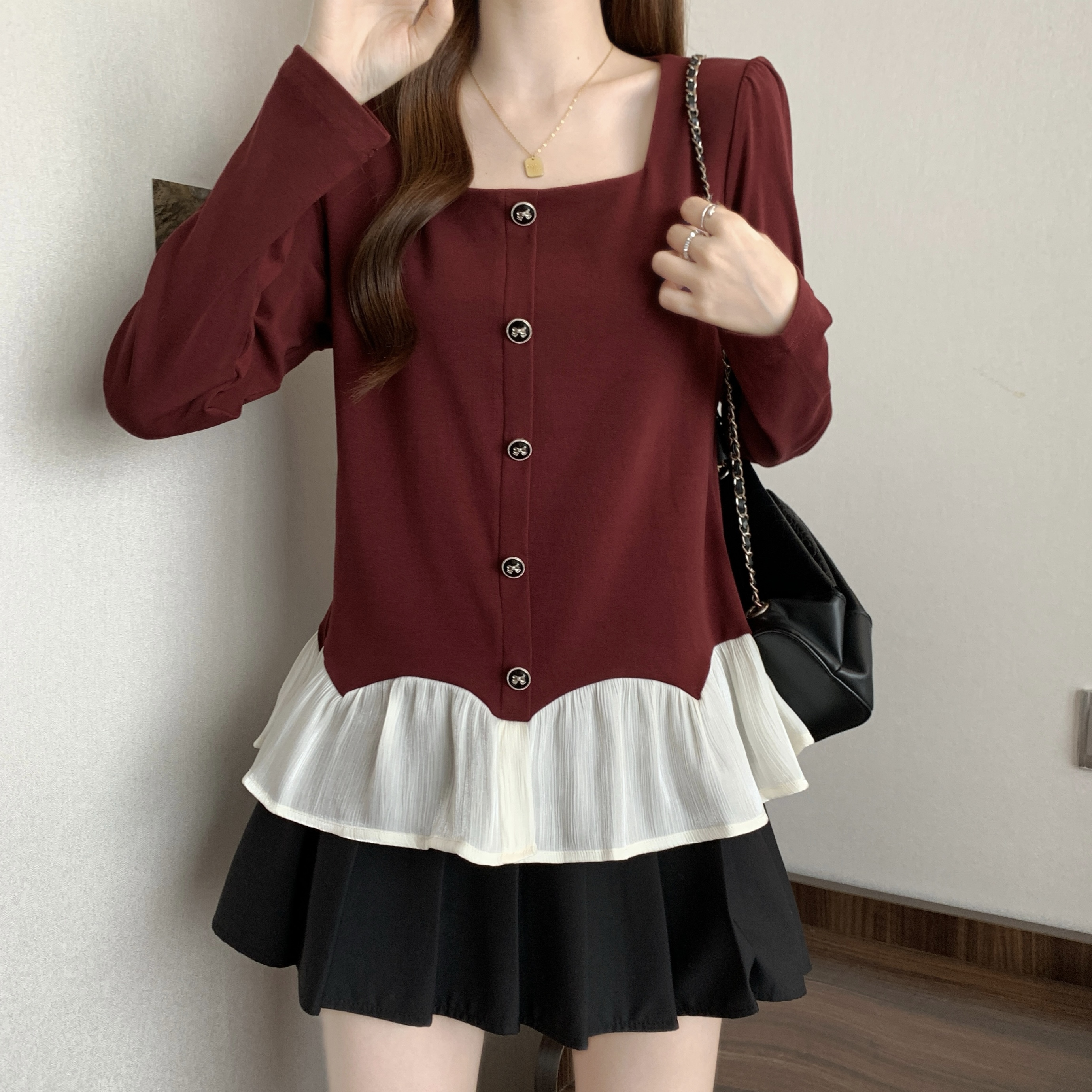 Home > 长袖雪纺衫、衬衫、上衣 > 新款大码胖MM时尚设计感拼接假两件显瘦遮肚百搭上衣 服裝批發女裝批發服飾貨源