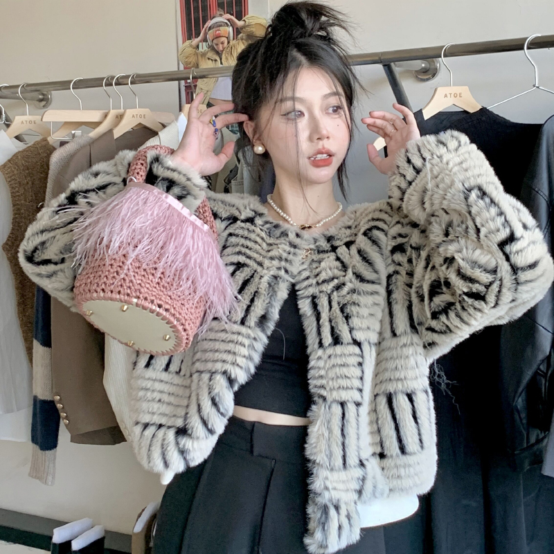 FA48910# 韩版水貂毛皮草外套女冬季设计感高级气质名媛短款毛茸茸上衣潮 服裝批發女裝批發服飾貨源