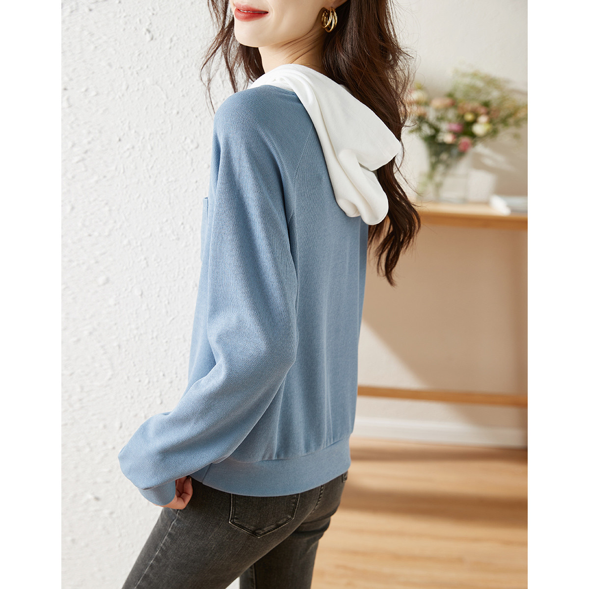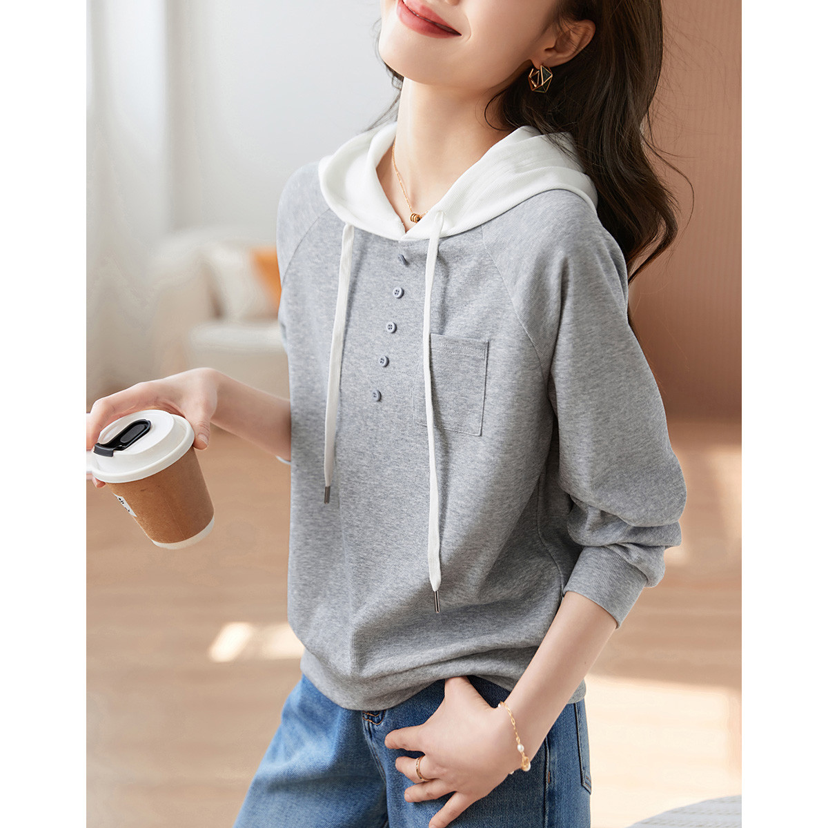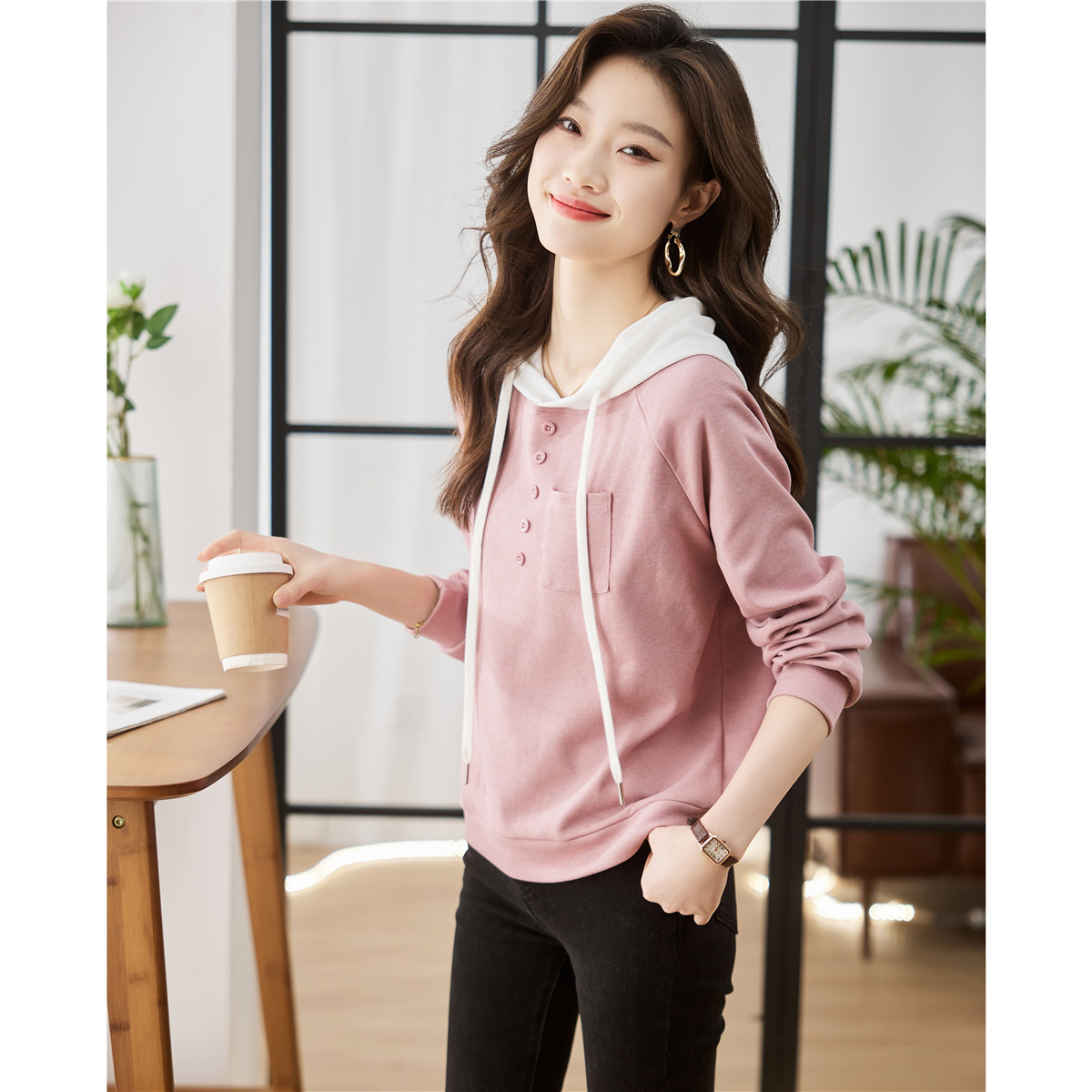 FA49014# 气质百搭连帽卫衣秋款纽扣装饰宽松显瘦长袖舒适上衣 服裝批發女裝批發服飾貨源