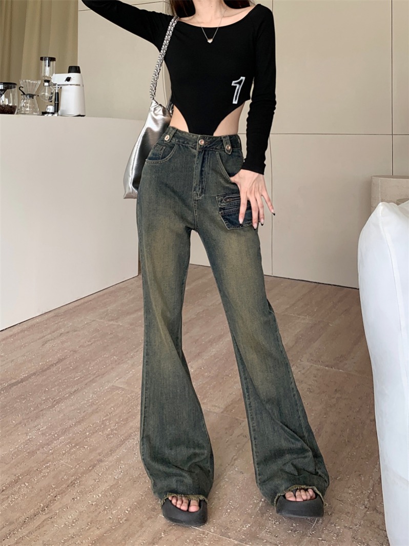 Home > 牛仔裤、长裤 > FA49420# 微喇叭牛仔裤女高腰秋冬新款复古显瘦弹力直筒宽松拖地长裤 服裝批發女裝批發服飾貨源