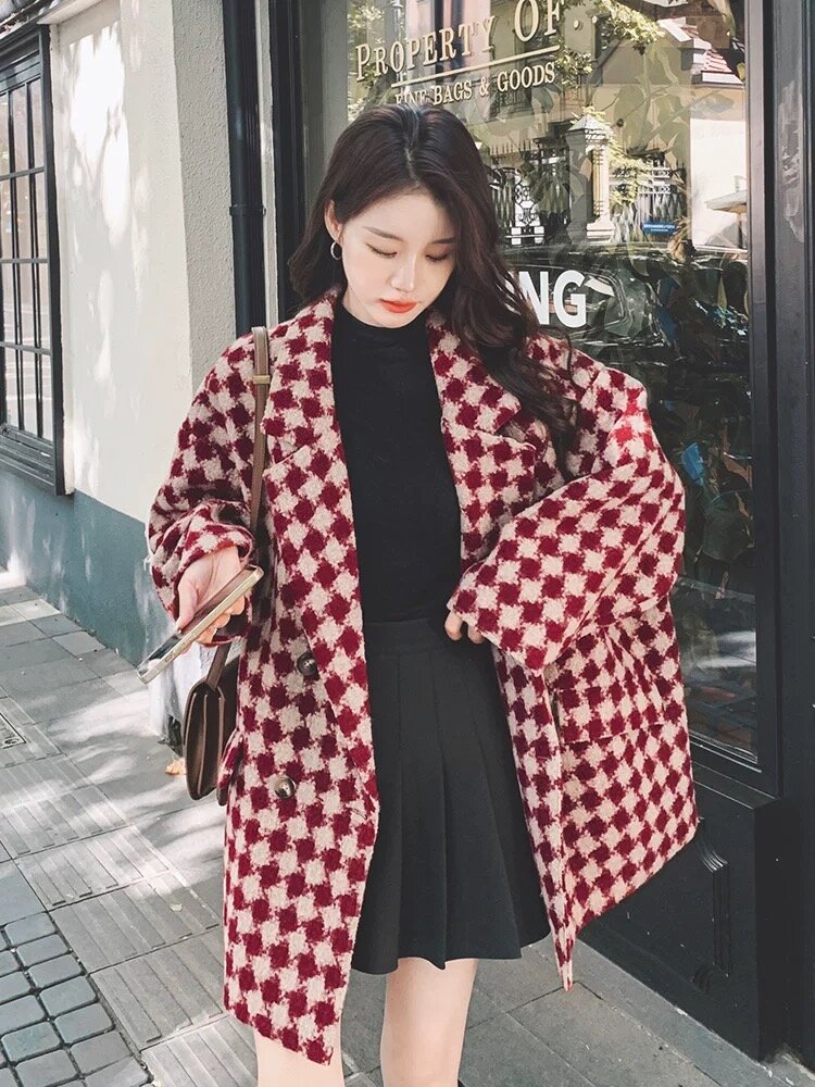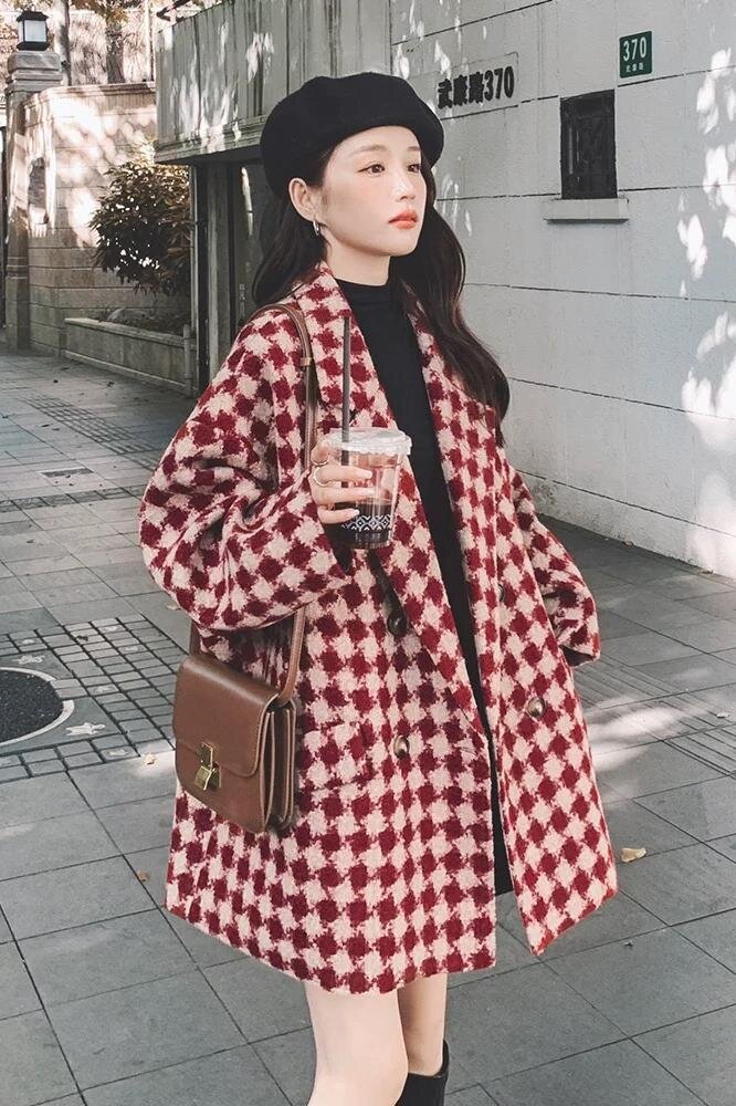 韩版宽松格子西装毛呢外套女加厚学生冬季新款小个子显瘦呢子大衣 服裝批發女裝批發服飾貨源