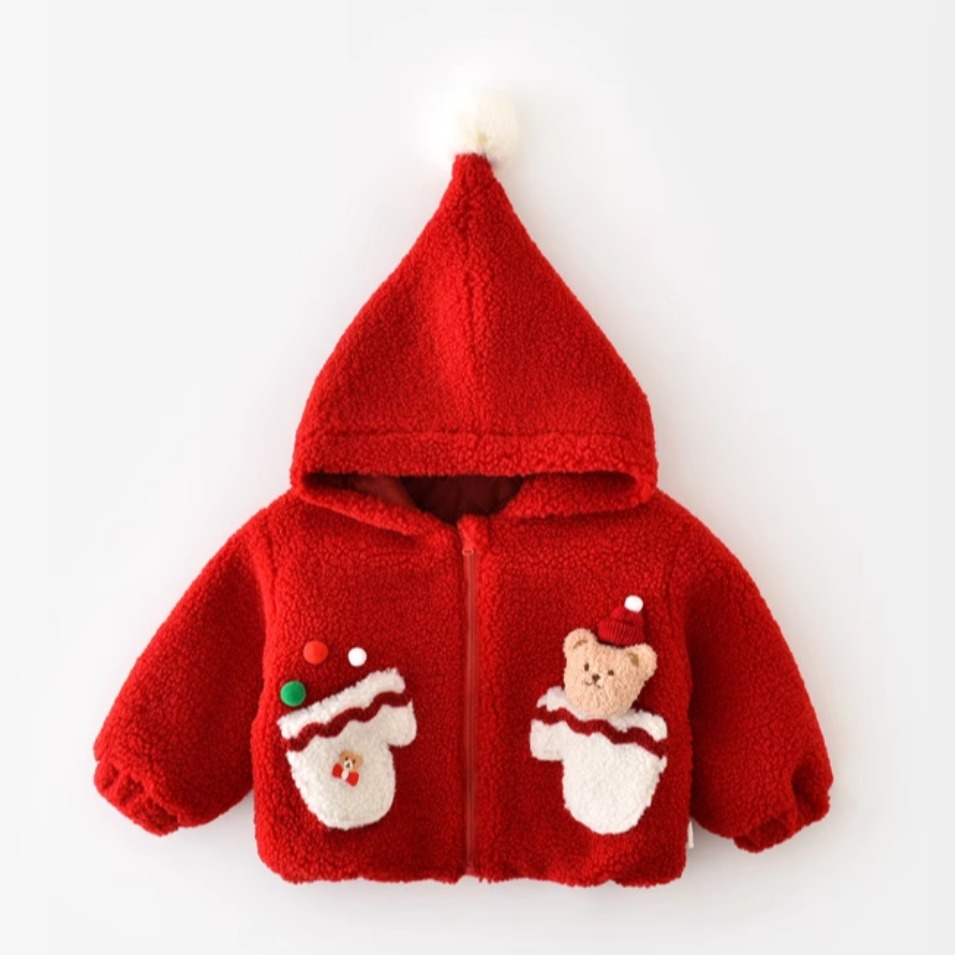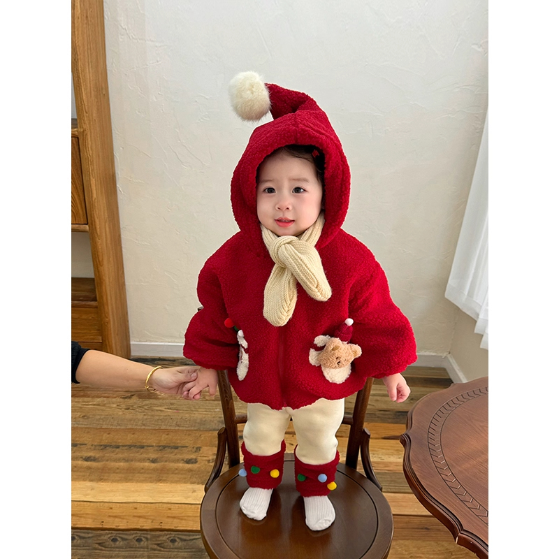 宝宝女童冬装新款洋气圣诞节外套可爱卫衣加厚保暖婴儿秋冬上衣服 童装批发宝宝服饰批发
