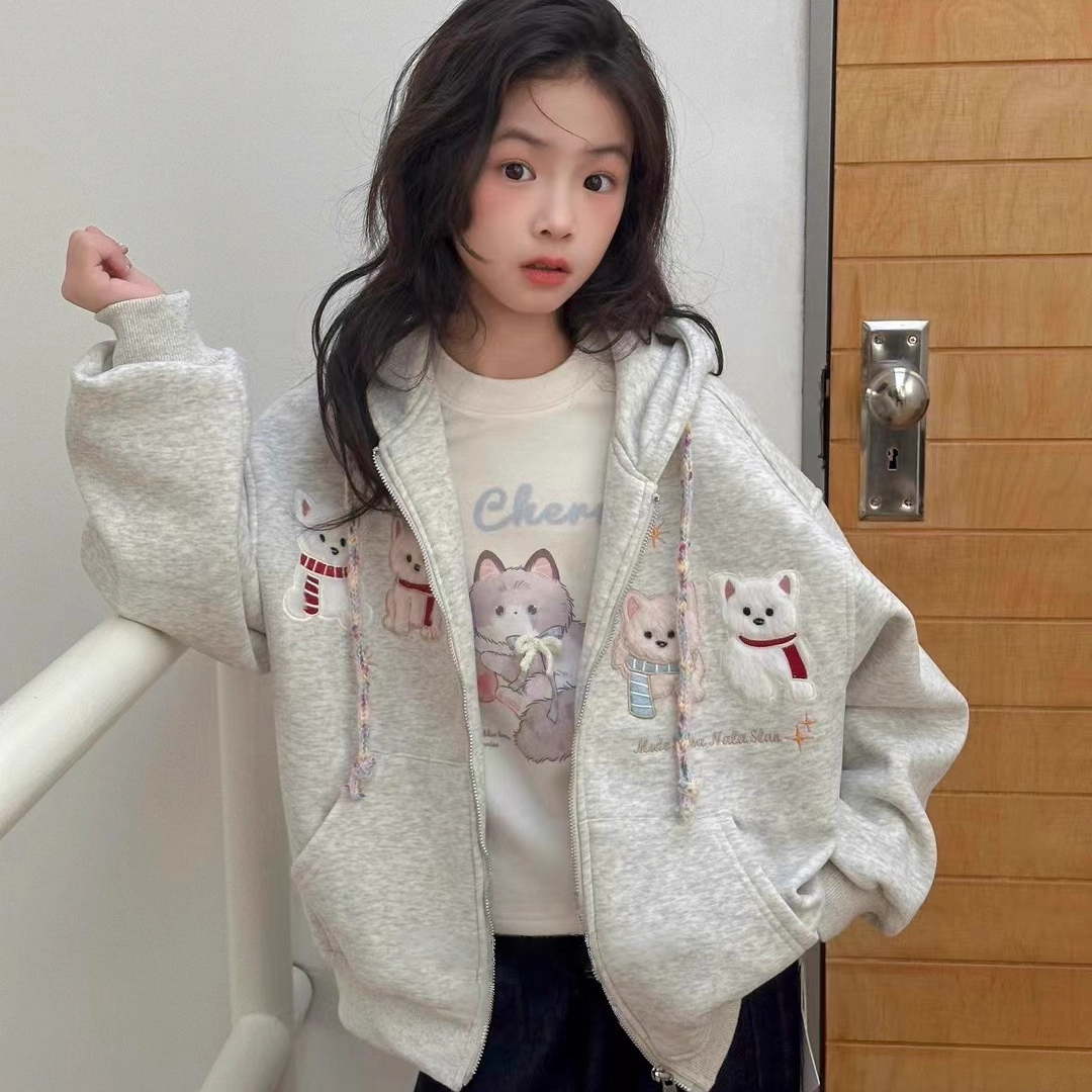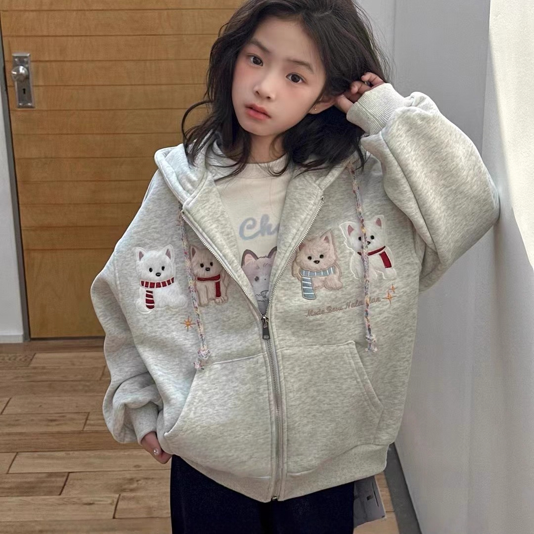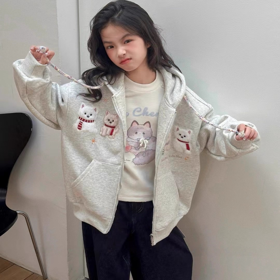 Home > 童装--外套 > 韩国女童一体绒拉布布连帽卫衣外套秋冬女孩时尚休闲运动开衫上衣 童装批发宝宝服饰批发