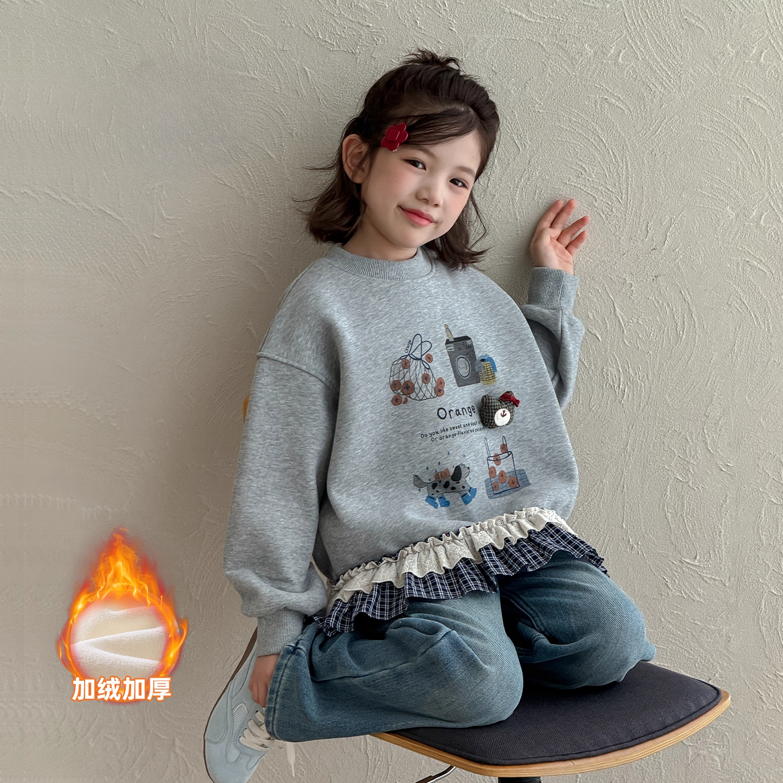 Home > 童装--外套 > 女童加绒卫衣冬季新款儿童洋气时髦女大童冬装加厚打底衫上衣 童装批发宝宝服饰批发