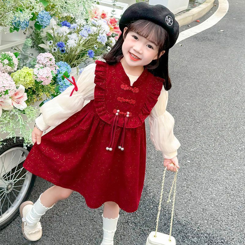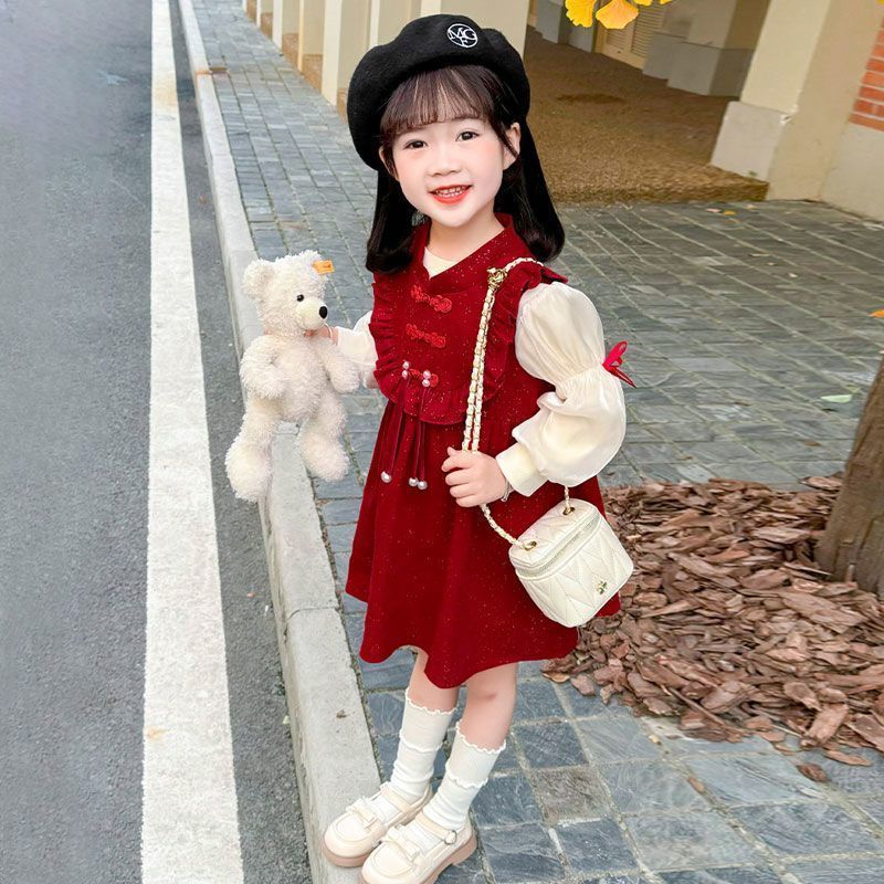 Home > 童装--连衣裙 > 女童连衣裙新款套装秋季童装过年圣诞红色儿童公主裙两件套潮 童装批发宝宝服饰批发