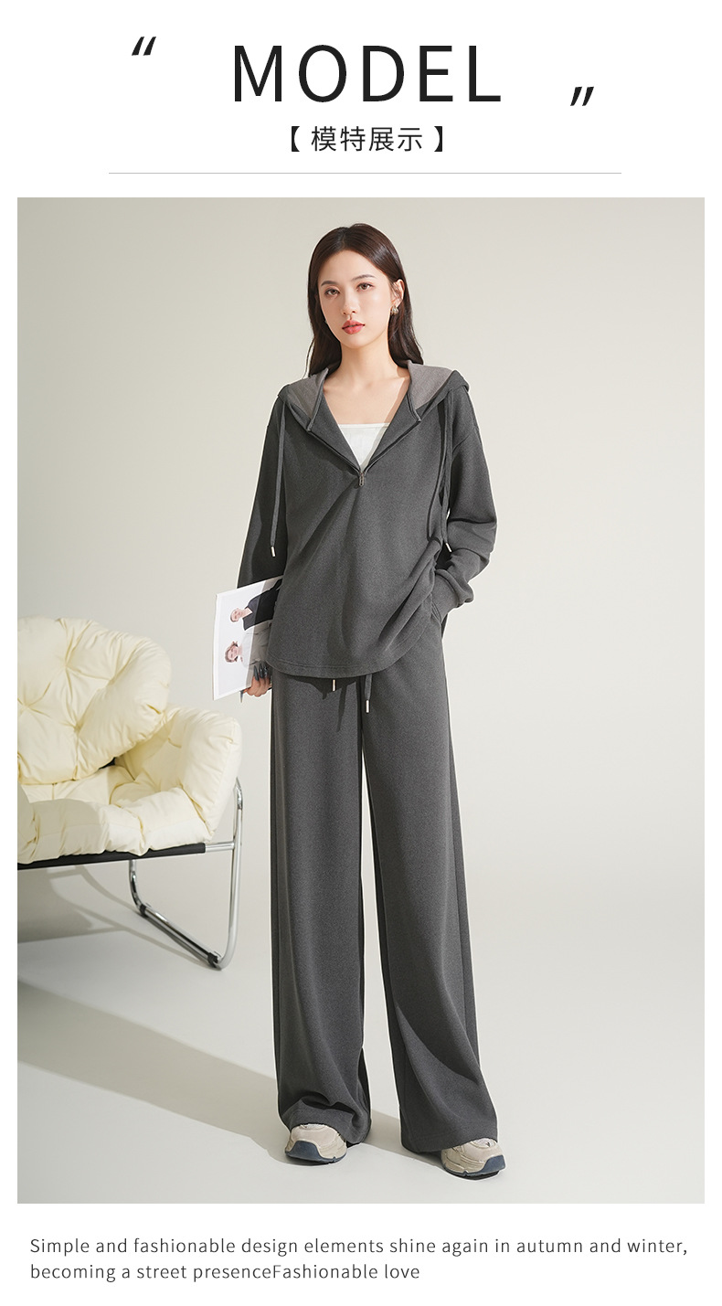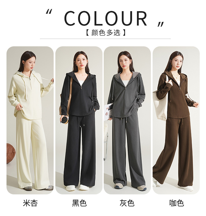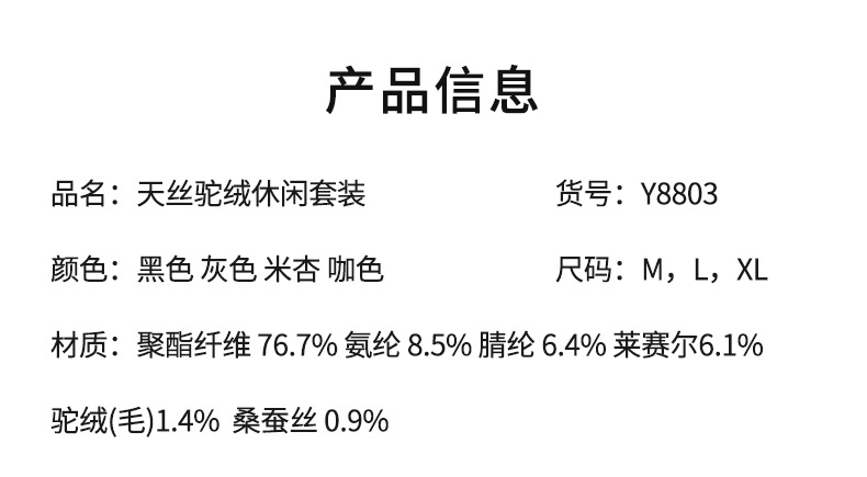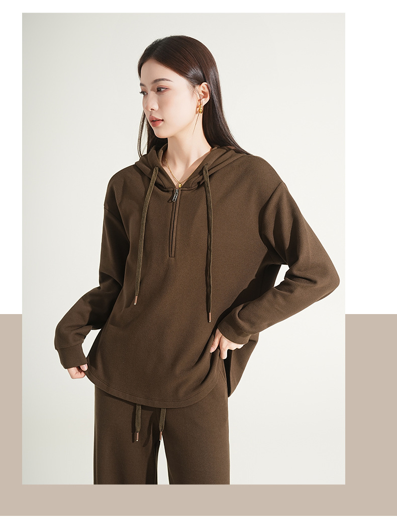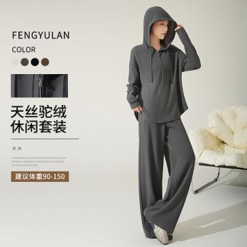 FA50718# 早秋款天丝驼绒女式休闲套装蚕丝混纺连帽卫衣裤