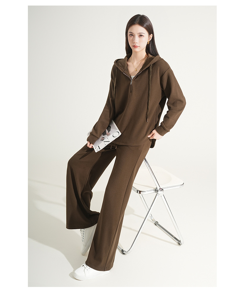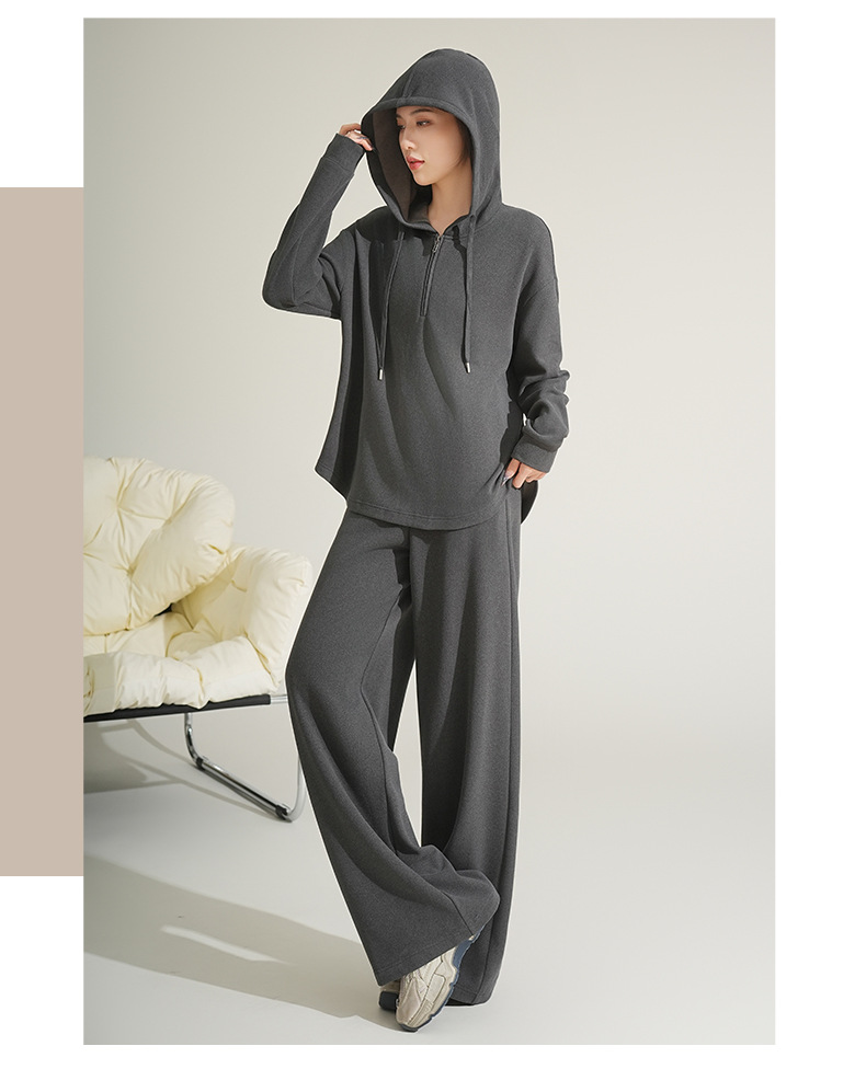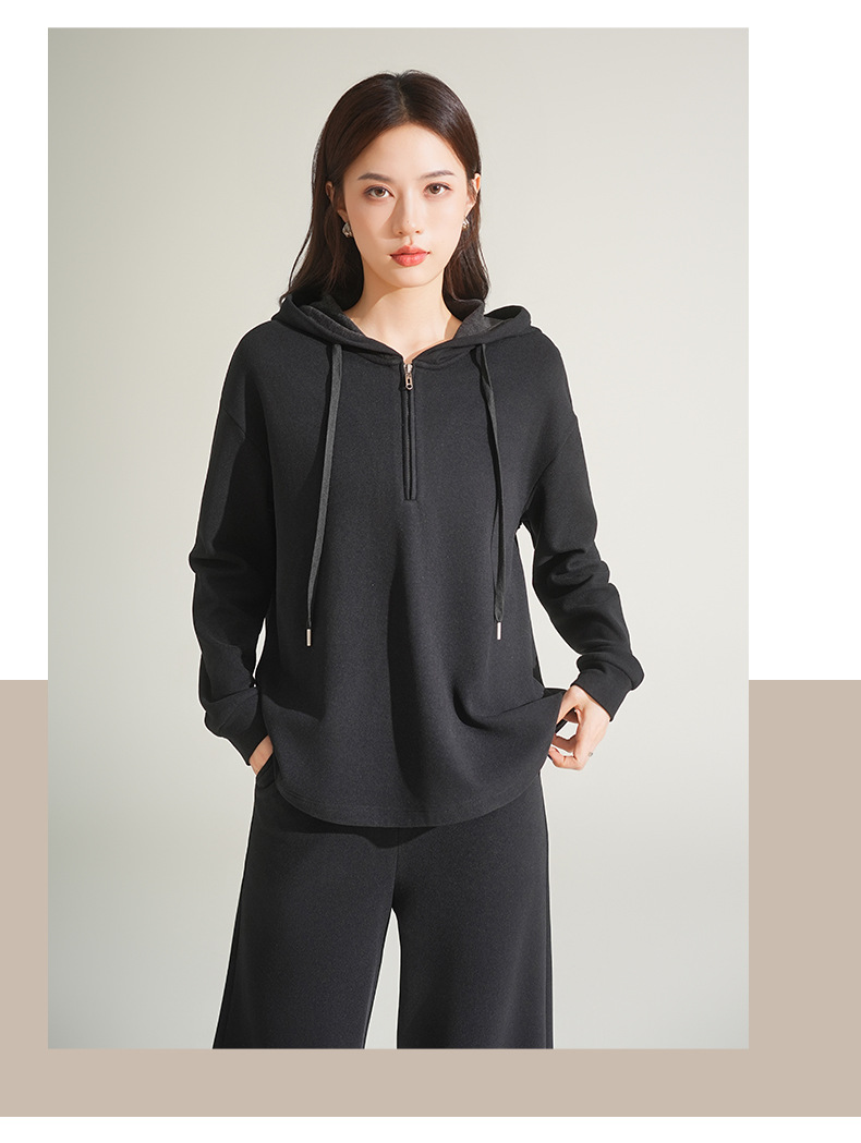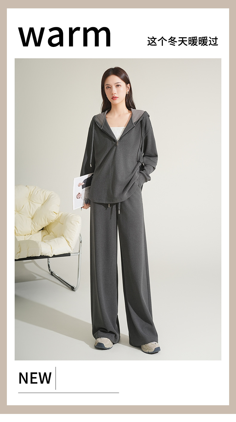 FA50718# 早秋款天丝驼绒女式休闲套装蚕丝混纺连帽卫衣裤