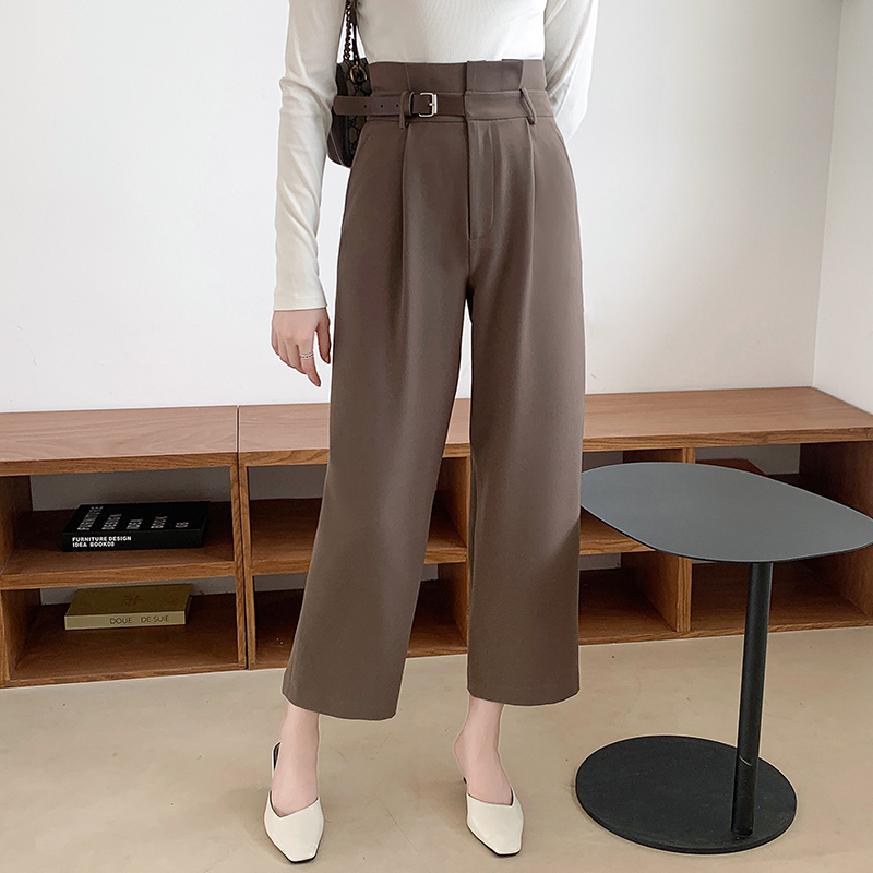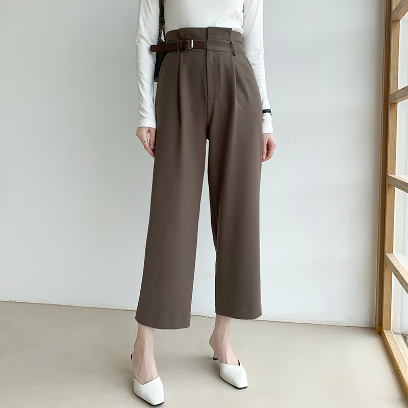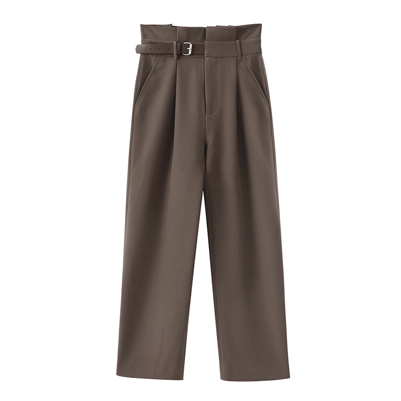FA51345# 新款直筒裤女时尚宽松垂感高腰显瘦皮袢装饰百搭长裤 服裝批發女裝批發服飾貨源