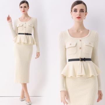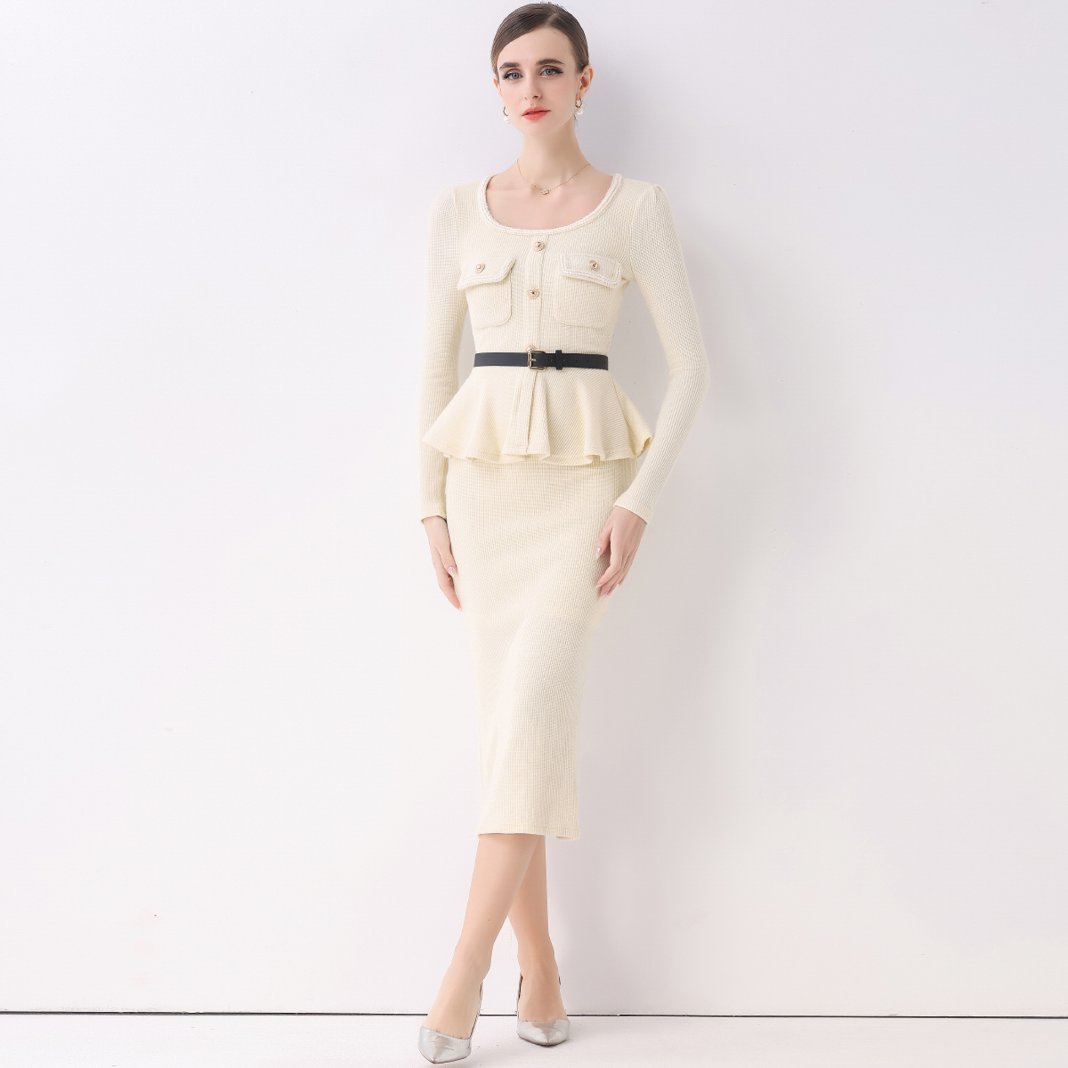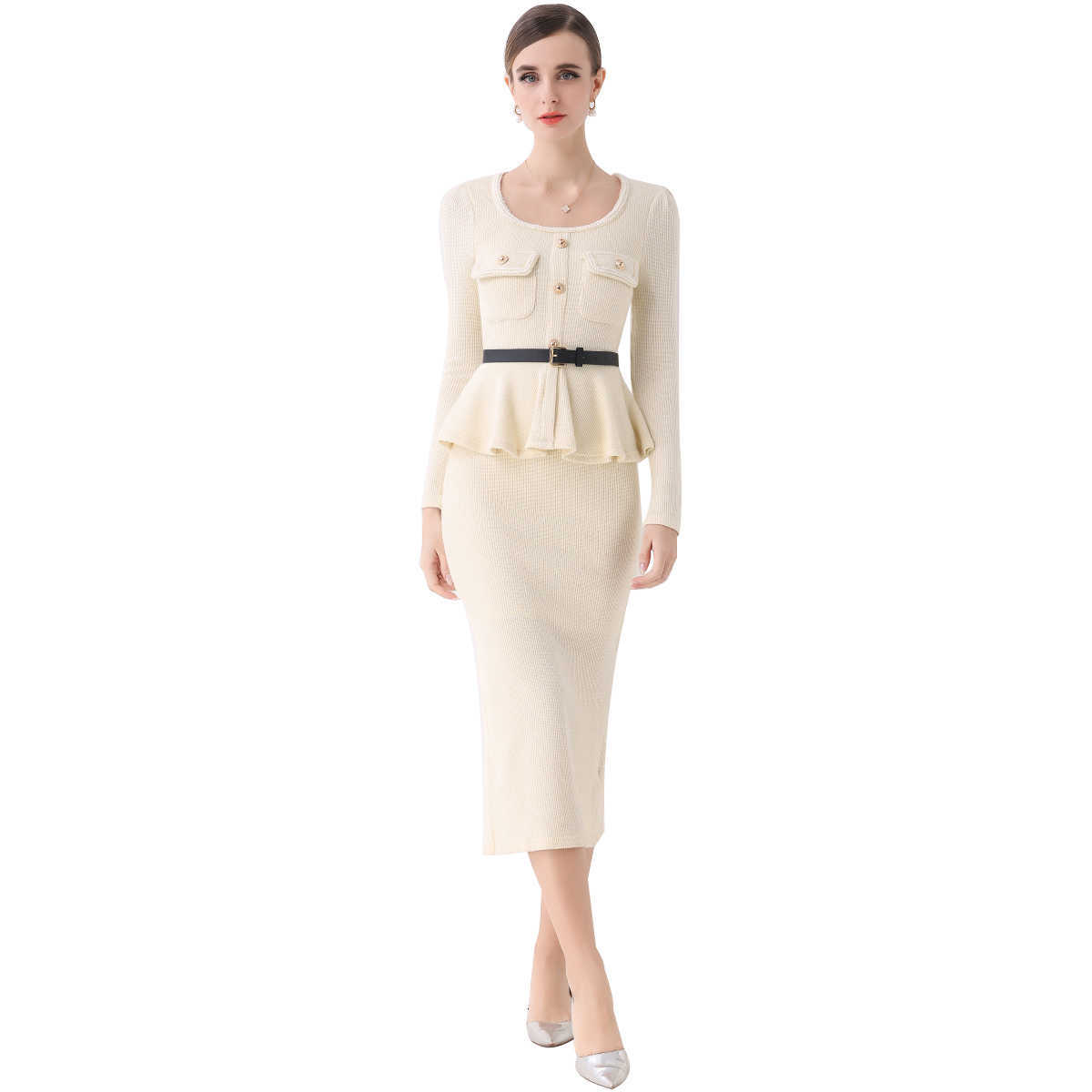 FA51358# 法式名媛轻熟风气质轻奢小香风假两件连衣裙女高级感送腰带 服裝批發女裝批發服飾貨源