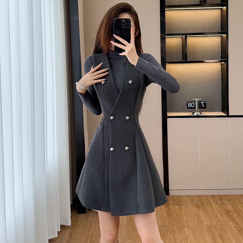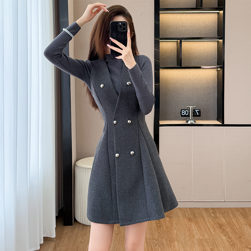 Home > 夜店裙、长袖连衣裙 > FA51381# 款法式复古气质半高领打底衫收腰显瘦背心裙洋气减龄两件套女 服裝批發女裝批發服飾貨源