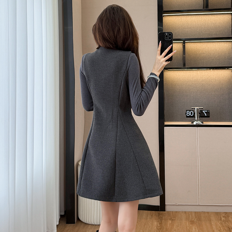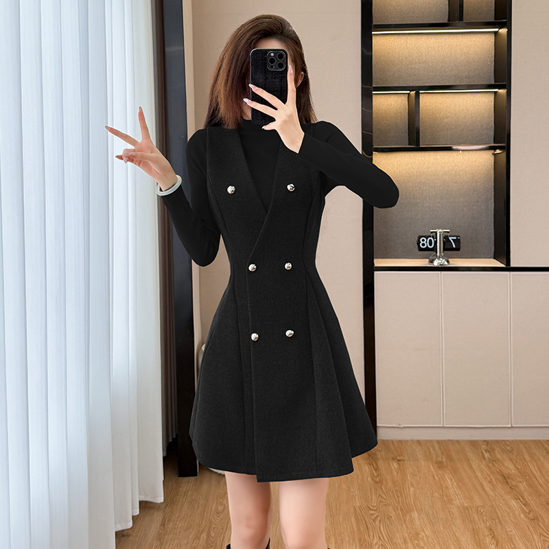FA51381# 款法式复古气质半高领打底衫收腰显瘦背心裙洋气减龄两件套女 服裝批發女裝批發服飾貨源