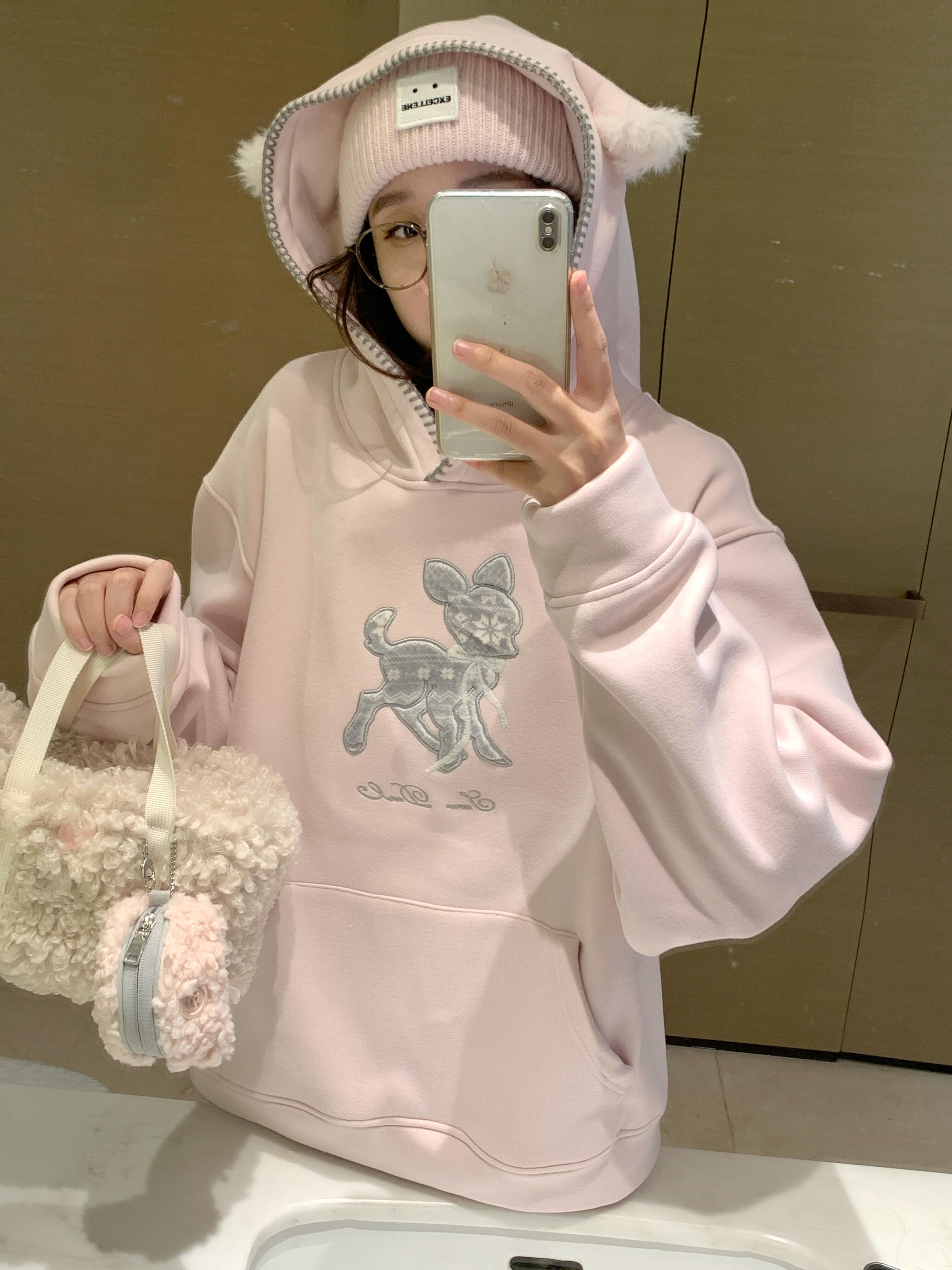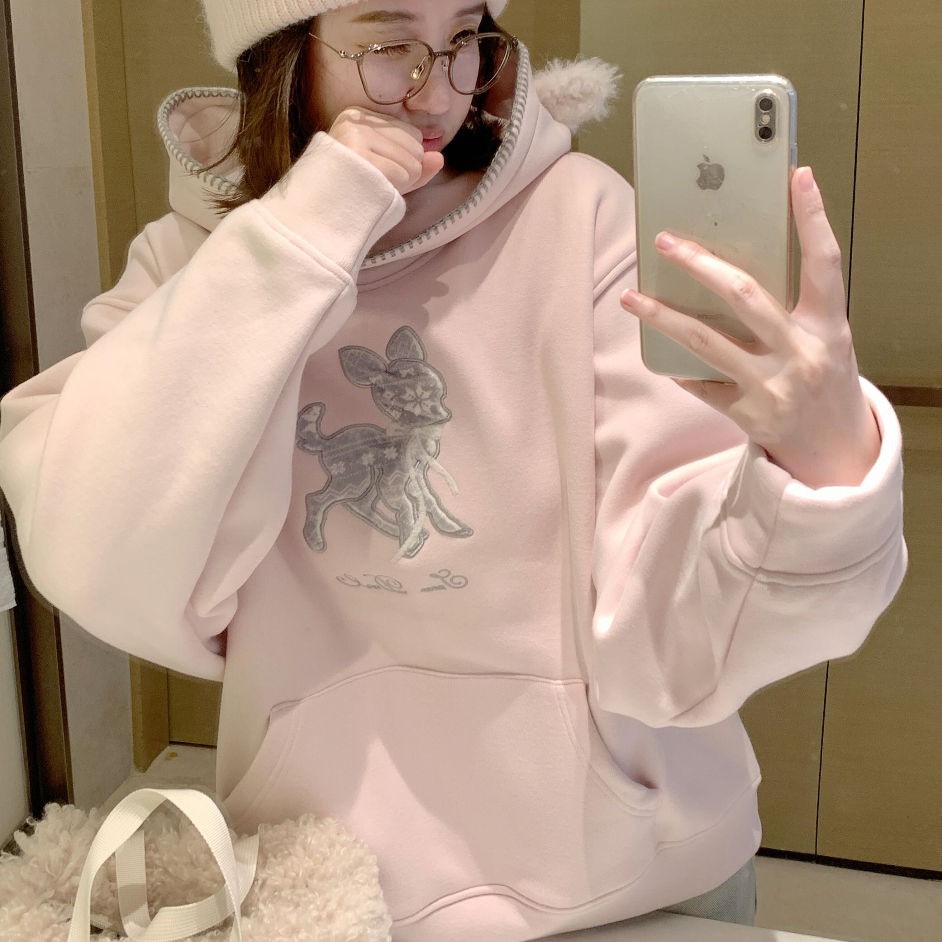 FA52006# 加绒袖窿+整件压线刺绣贴布后包领纯棉华棉复合卫衣女 服裝批發女裝批發服飾貨源