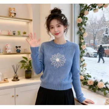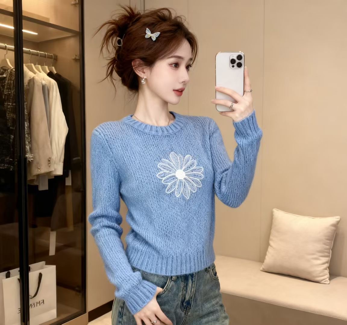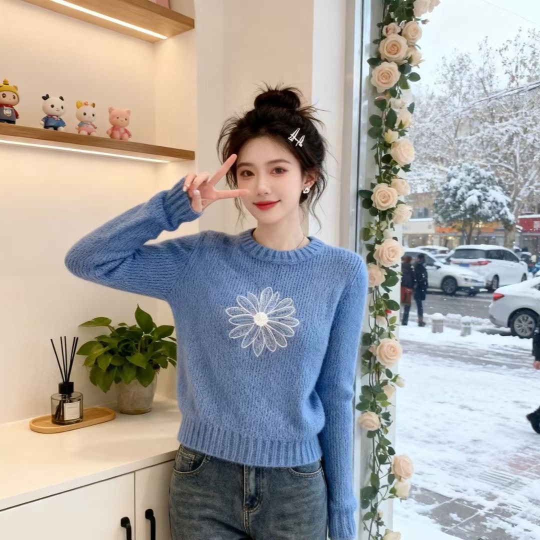 FA55497# 蓝色字母印花针织衫女冬季新款超火时尚减龄内搭可外穿上衣 服裝批發女裝批發服飾貨源