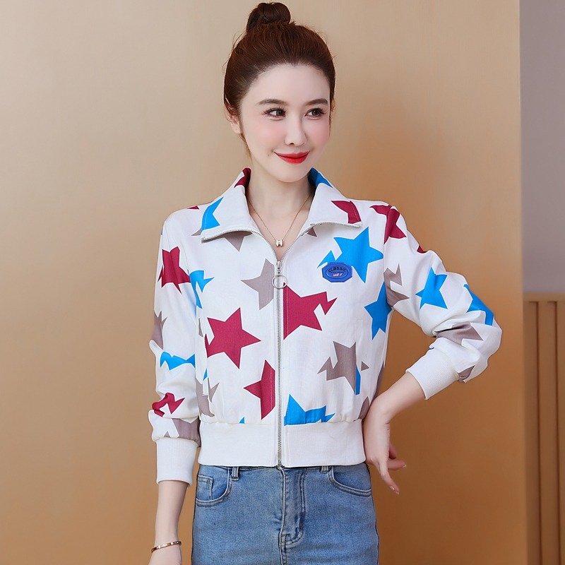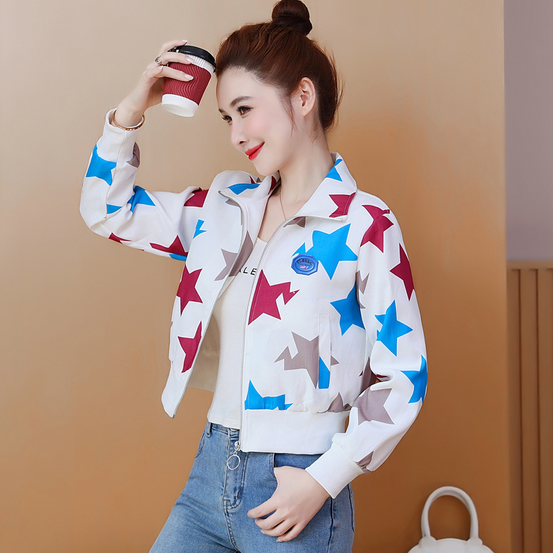 FA55558# 美式高街设计感星星国潮风印花夹克小个子显高时尚白搭休闲短外套 服裝批發女裝批發服飾貨源