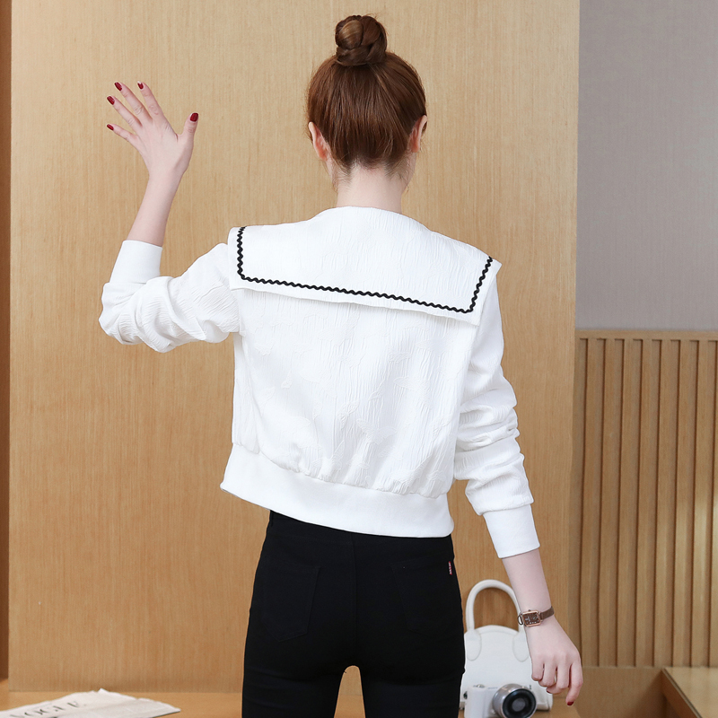FA55561# 简约oldmoney老钱风外套小个子海军领高级气质名媛绣花上衣 服裝批發女裝批發服飾貨源