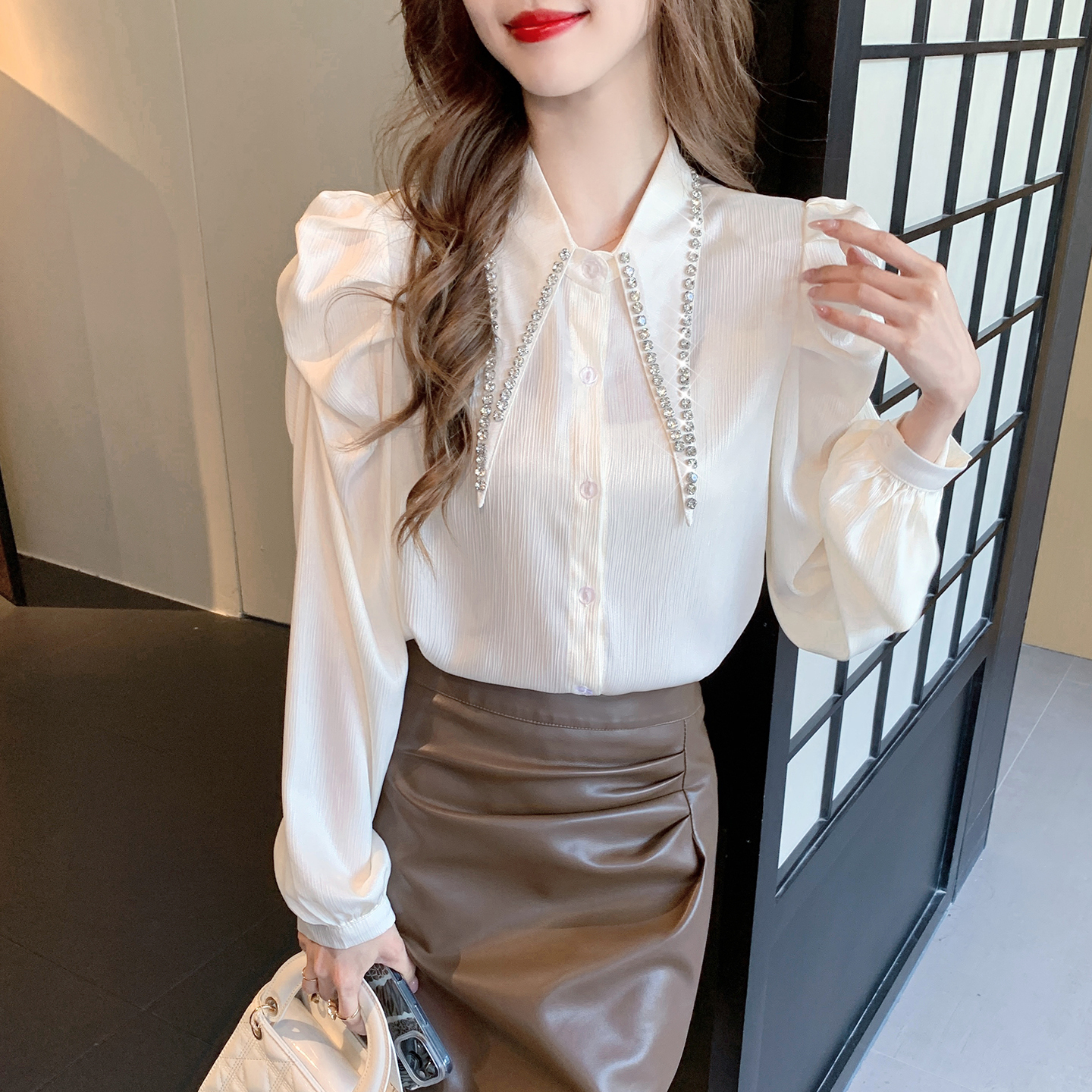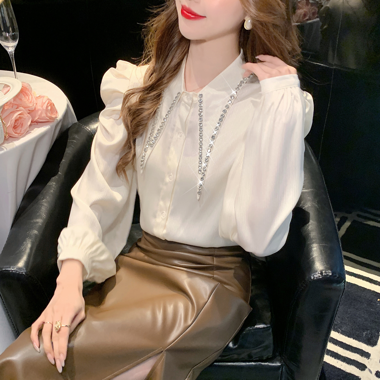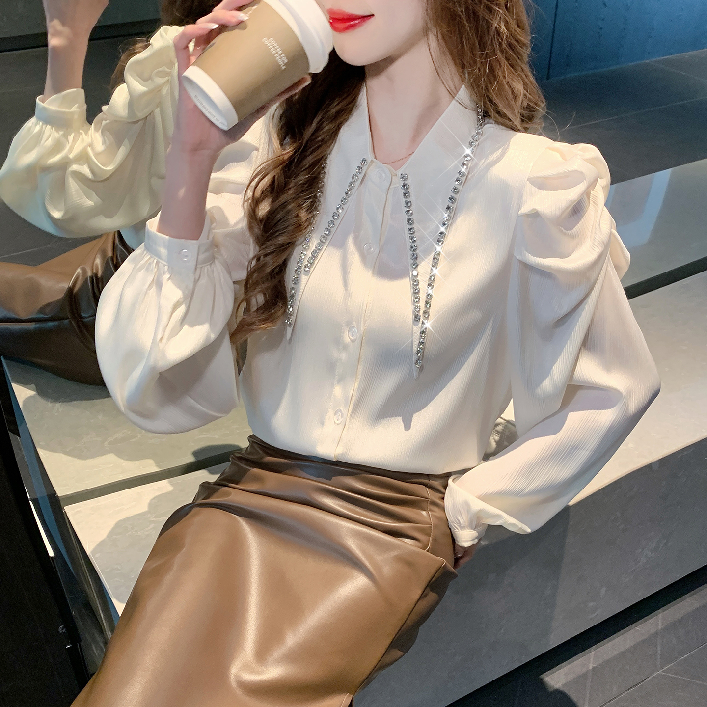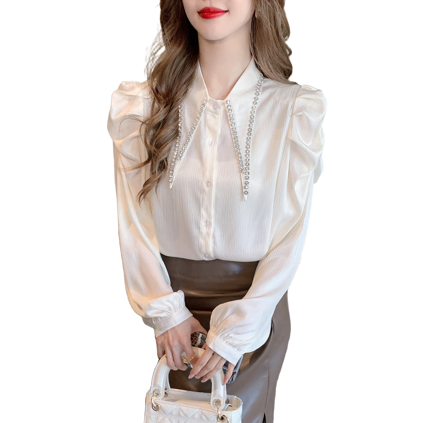 Home > 长袖雪纺衫、衬衫、上衣 > FA55607# 春季新款重工钉珠镶钻衬衫设计感小众法式气质长袖衬衣女 服裝批發女裝批發服飾貨源