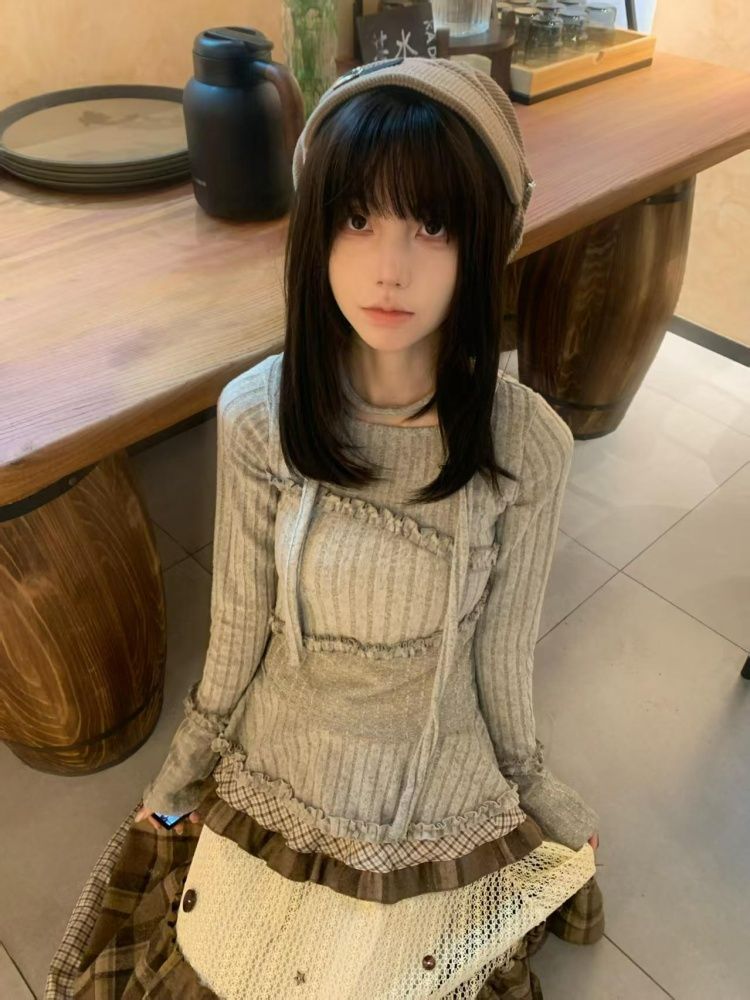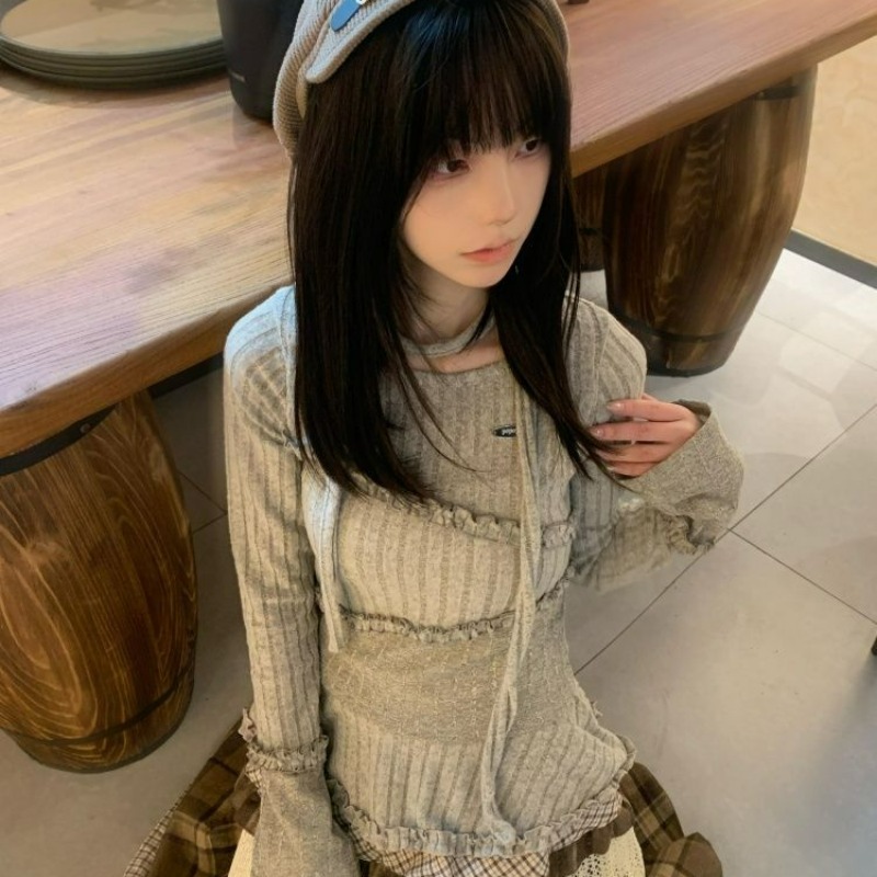 Home > 长袖T恤 > FA55620# 木耳边长袖t恤秋冬修身圆领立体装饰上衣 服裝批發女裝批發服飾貨源