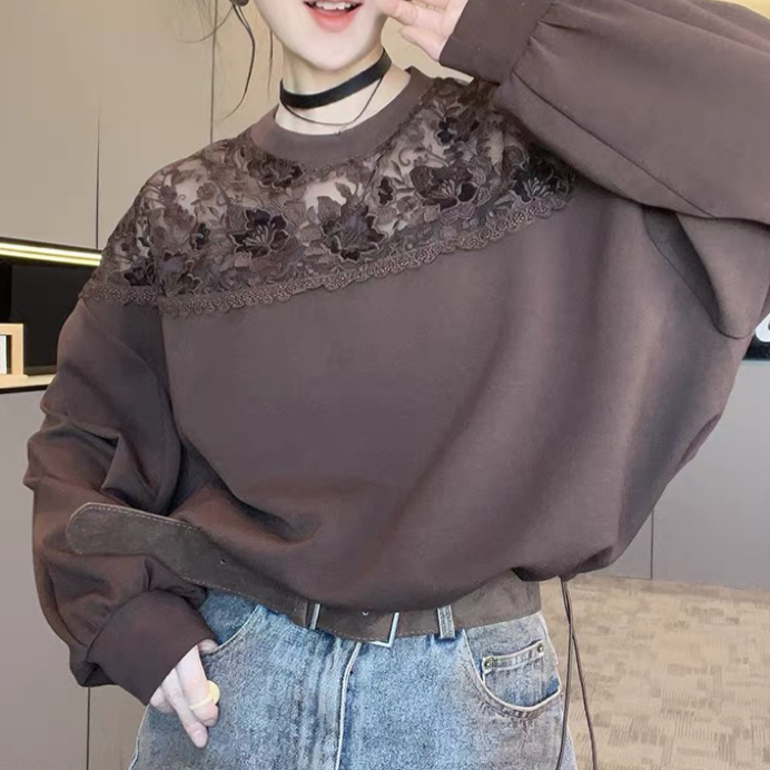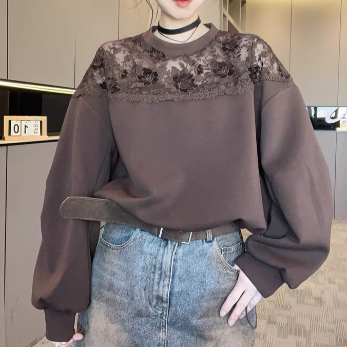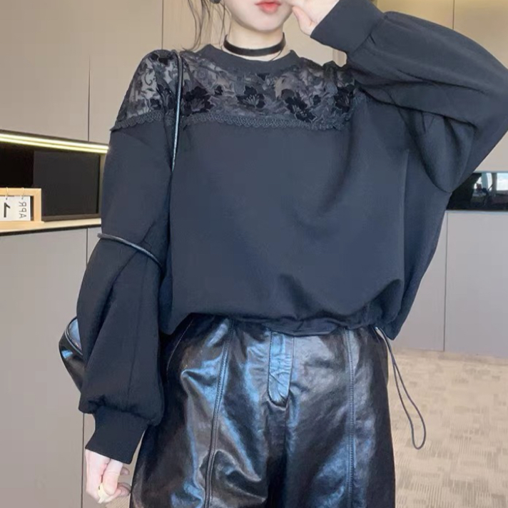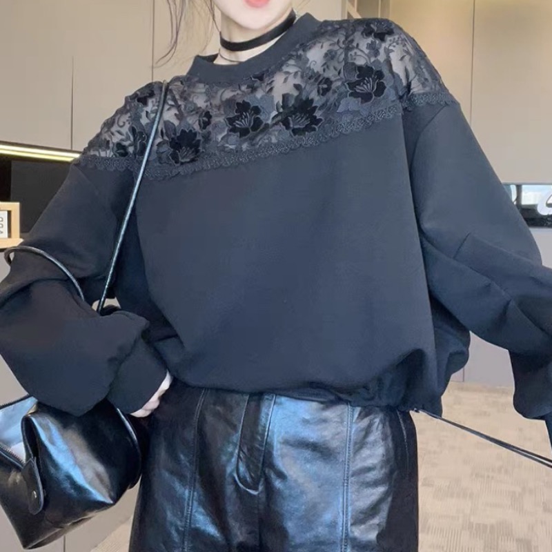 FA55636# 卫衣女秋季新款欧洲站时尚纯色蕾丝钩花镂空圆领套头长袖上衣 服裝批發女裝批發服飾貨源