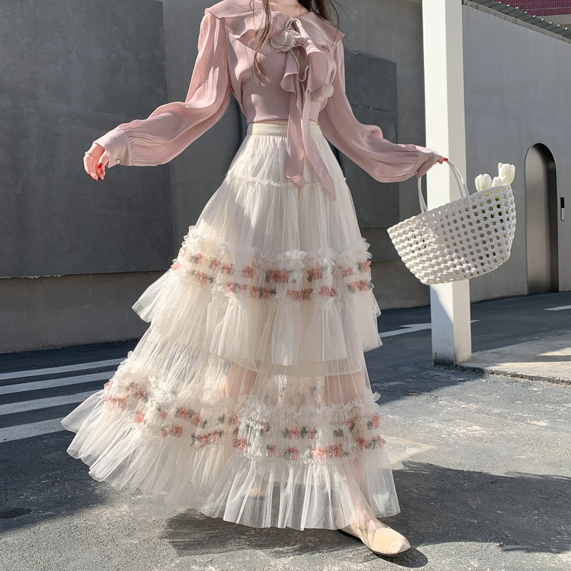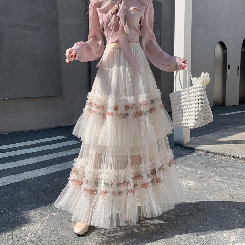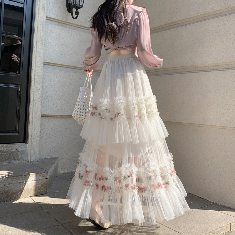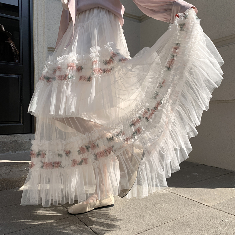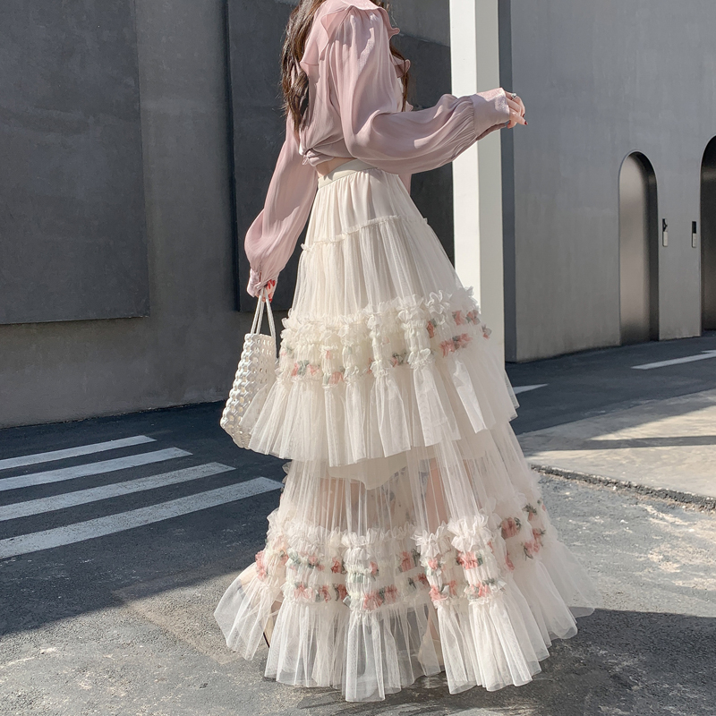 FA55645# 超仙重工网纱蛋糕裙半身裙女长款及踝设计感小众显瘦大摆长裙 服裝批發女裝批發服飾貨源