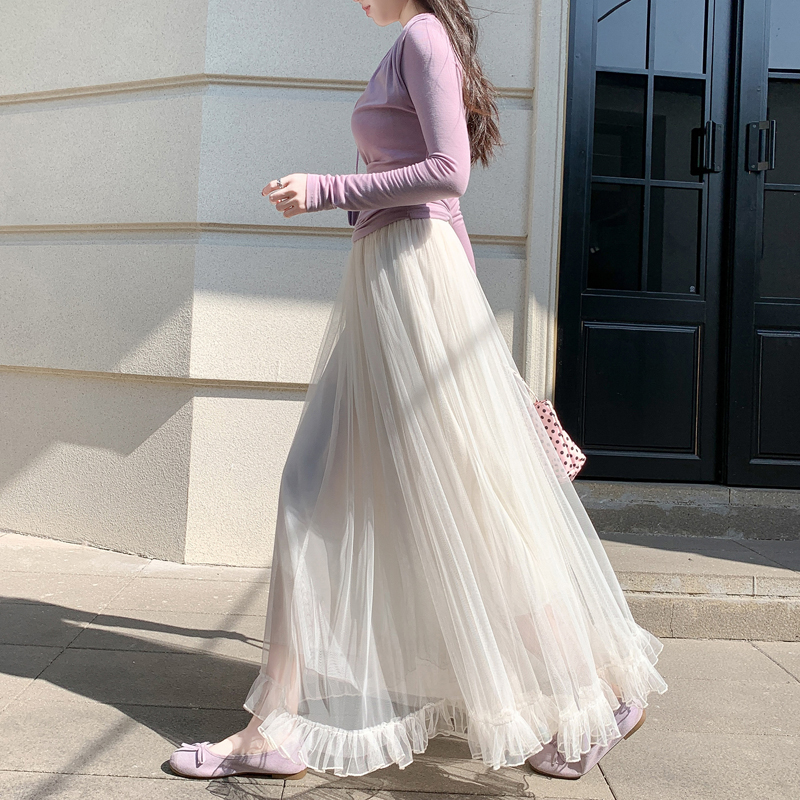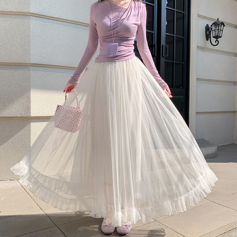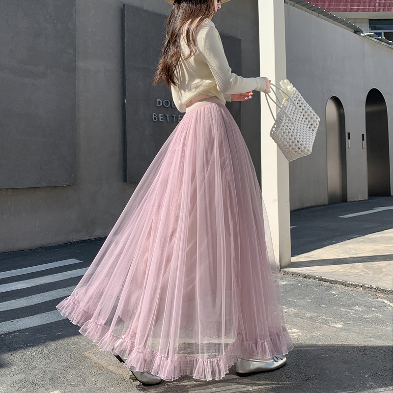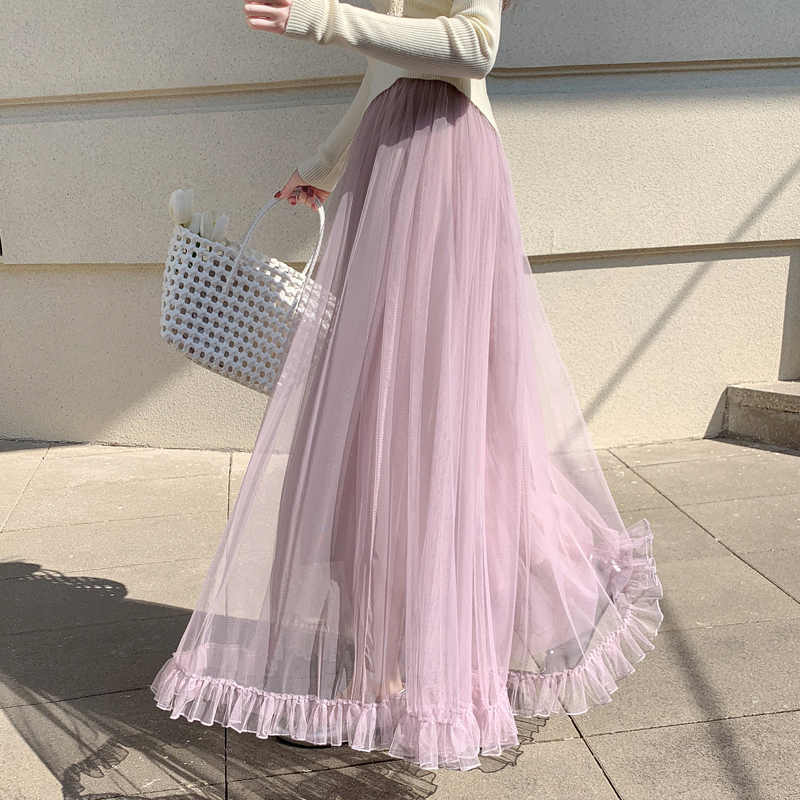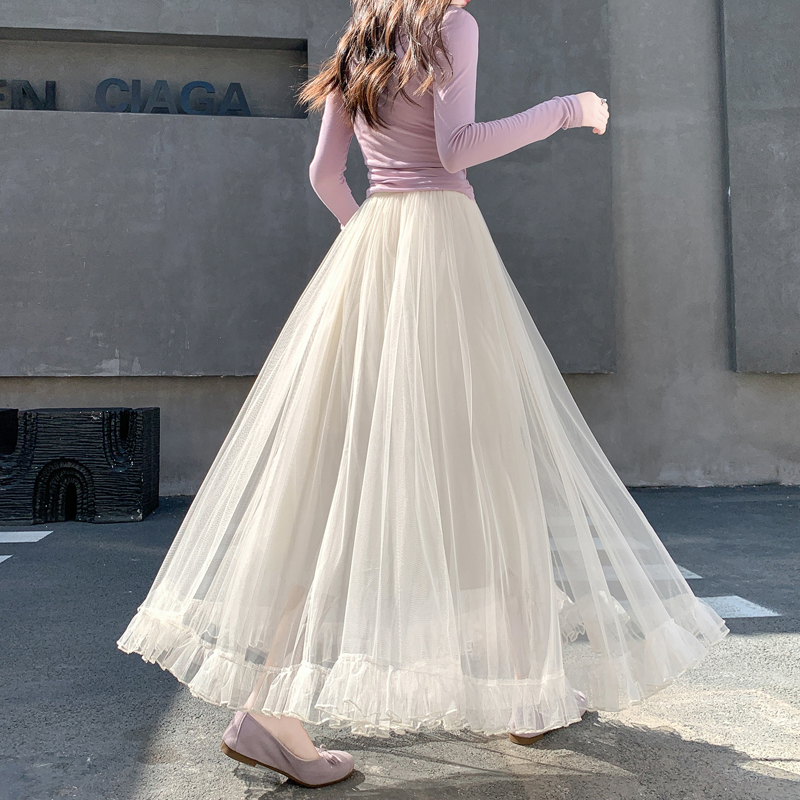 FA55646# 春季新款纱裙网纱半身裙垂坠感a字高腰长裙大摆蓬蓬裙子 服裝批發女裝批發服飾貨源