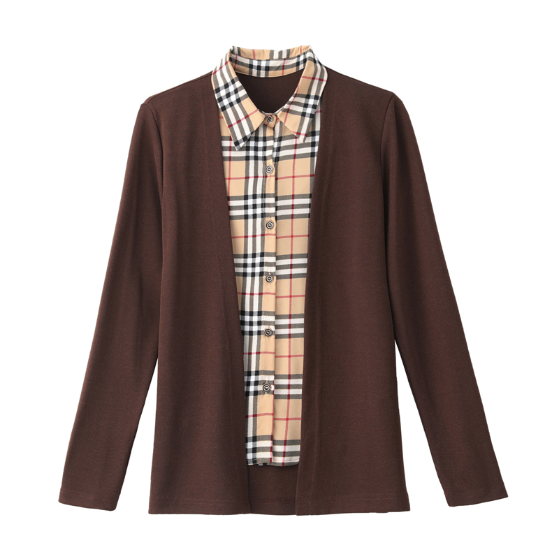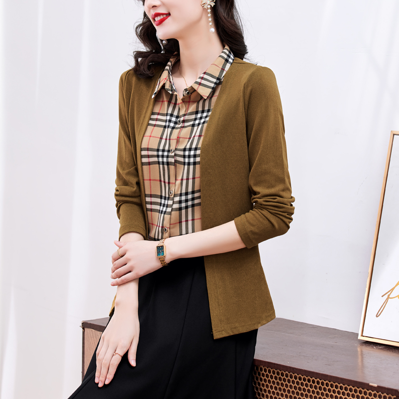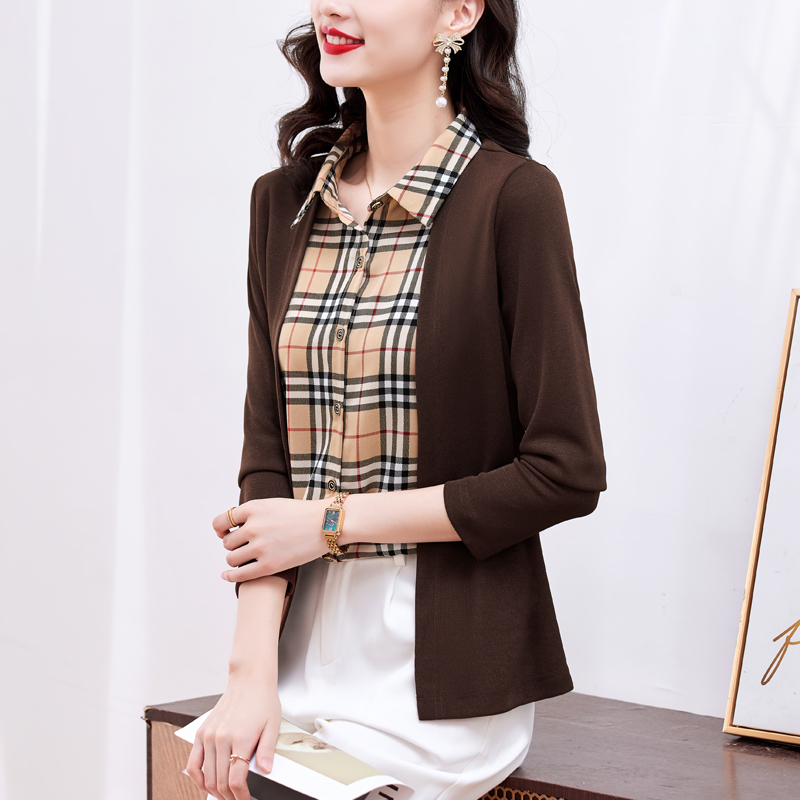 FA55690# 假两件长袖新款洋气百搭衬衫欧货拼接上衣外套 服裝批發女裝批發服飾貨源