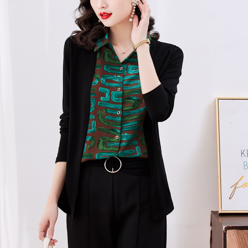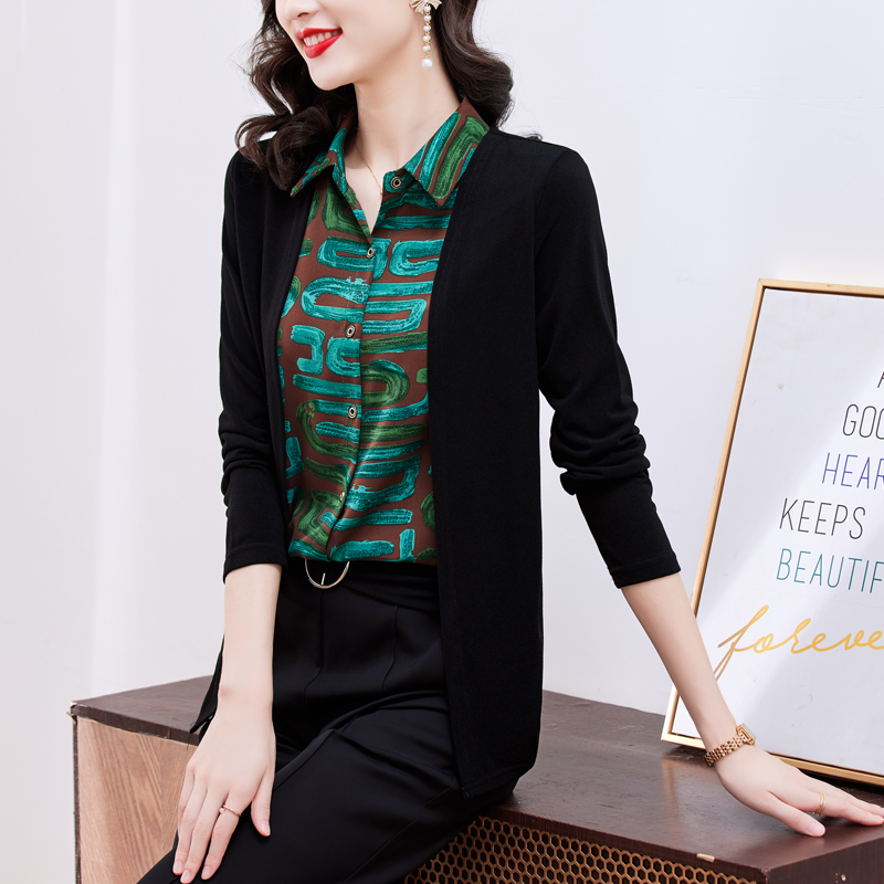 FA55692# 假两件长袖新款洋气百搭衬衫欧货拼接上衣外套 服裝批發女裝批發服飾貨源