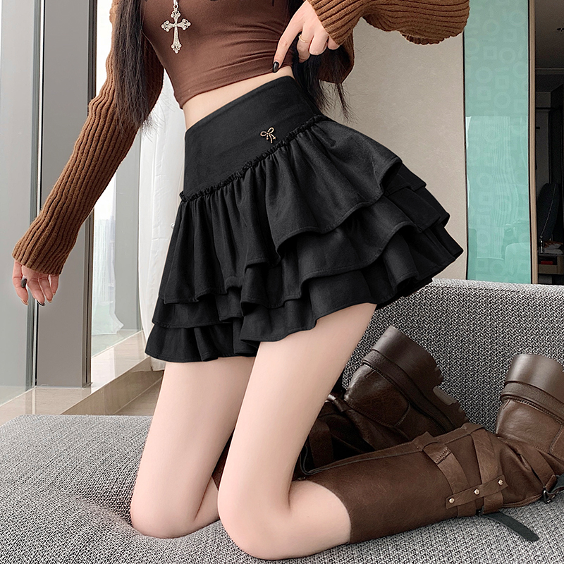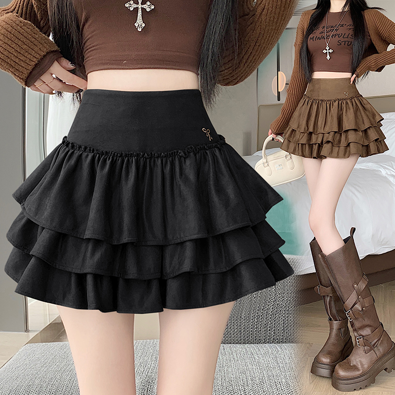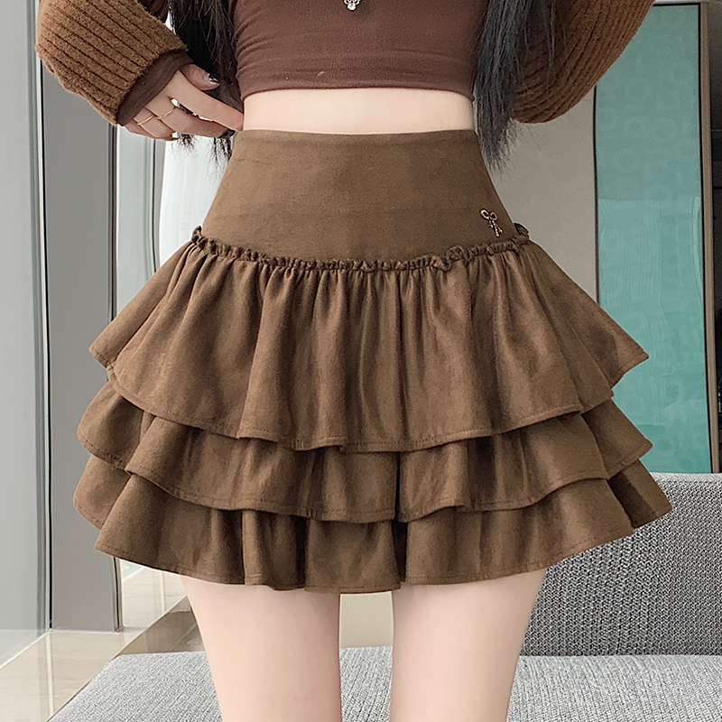 FA55709# 芭蕾风鹿皮绒蛋糕裙半身裙女秋冬高腰显瘦荷叶边a字蓬蓬短裙 服裝批發女裝批發服飾貨源