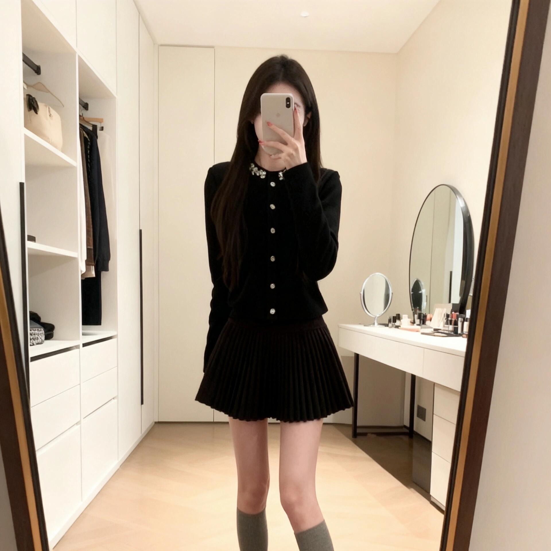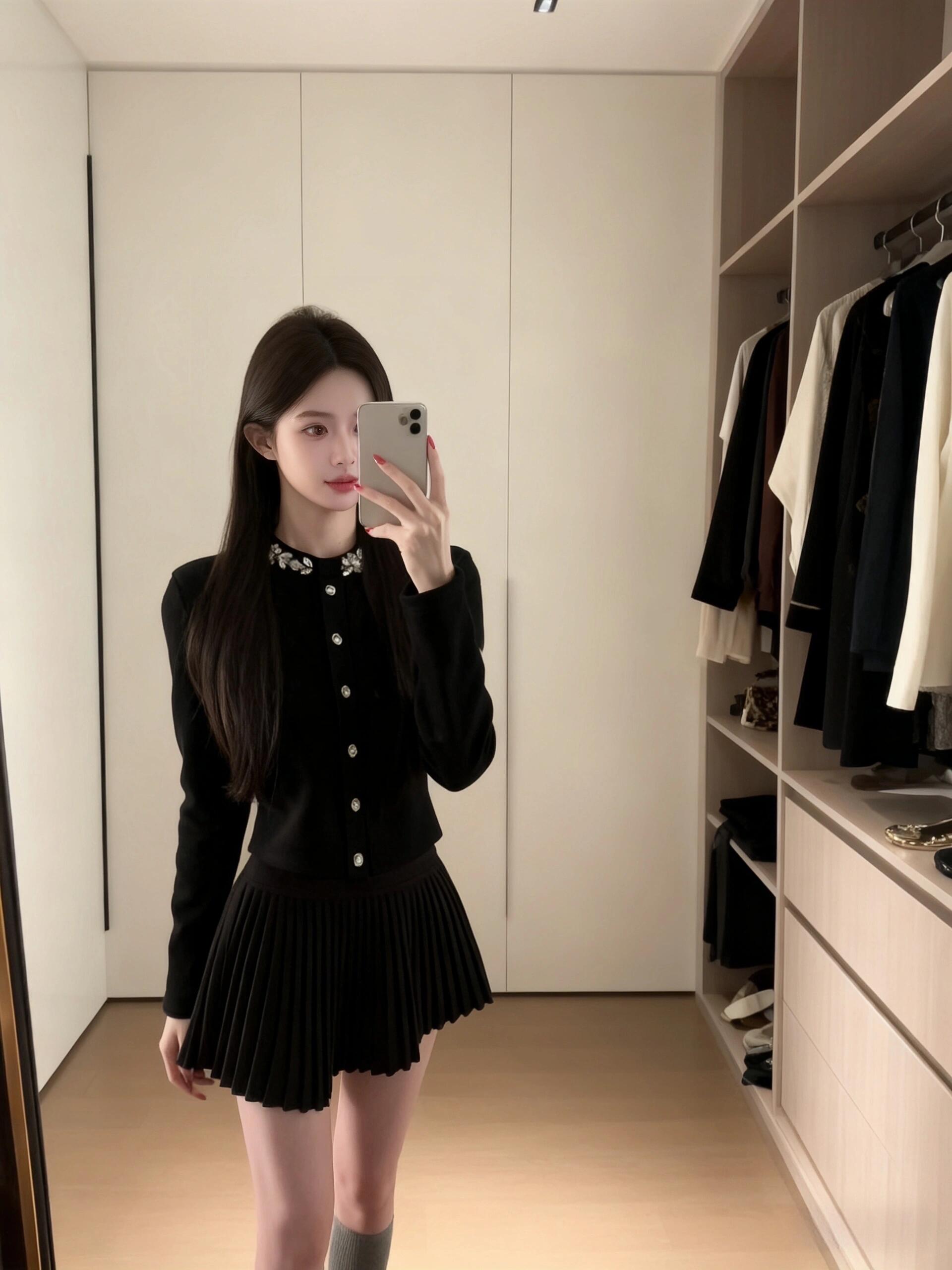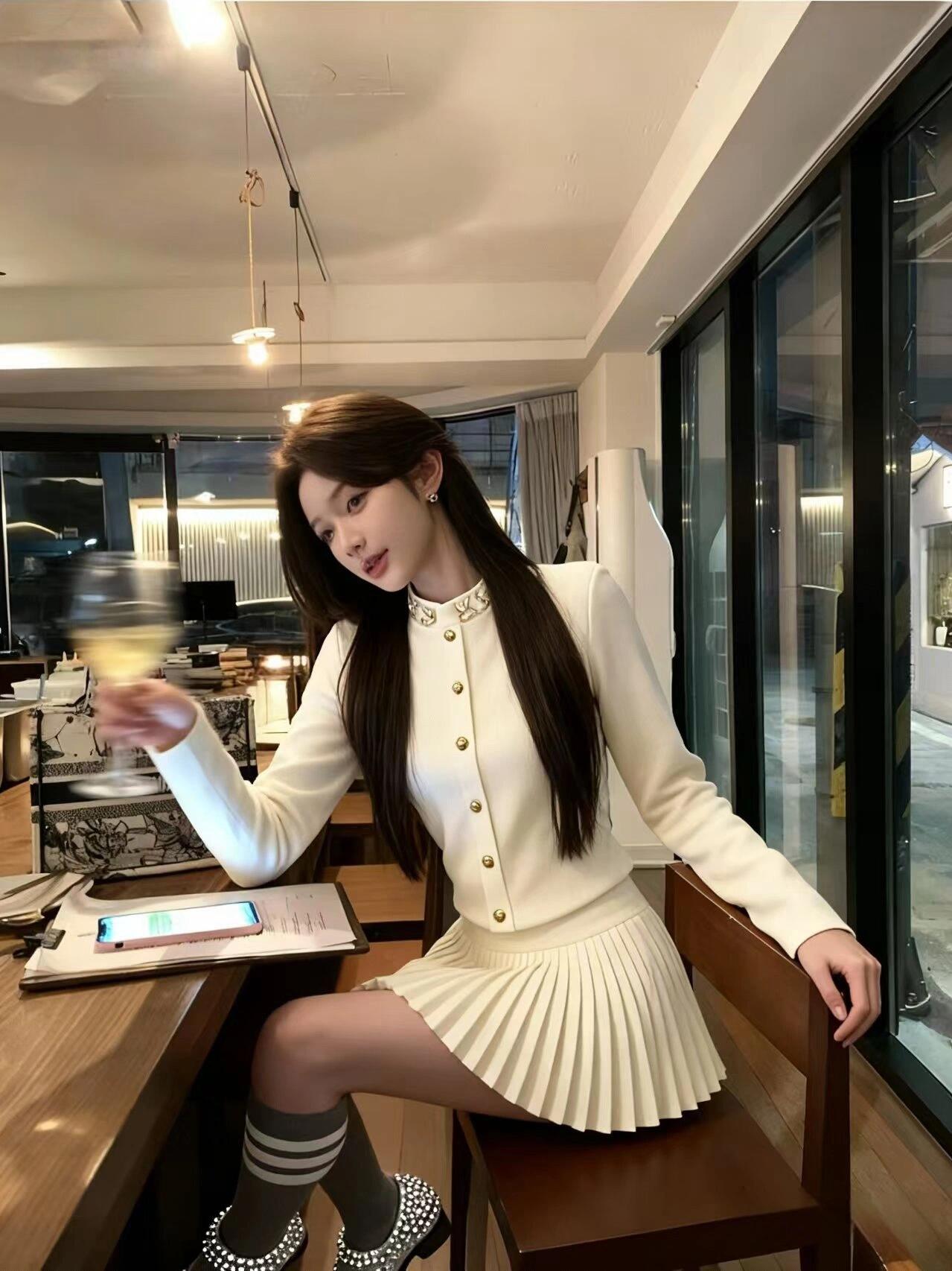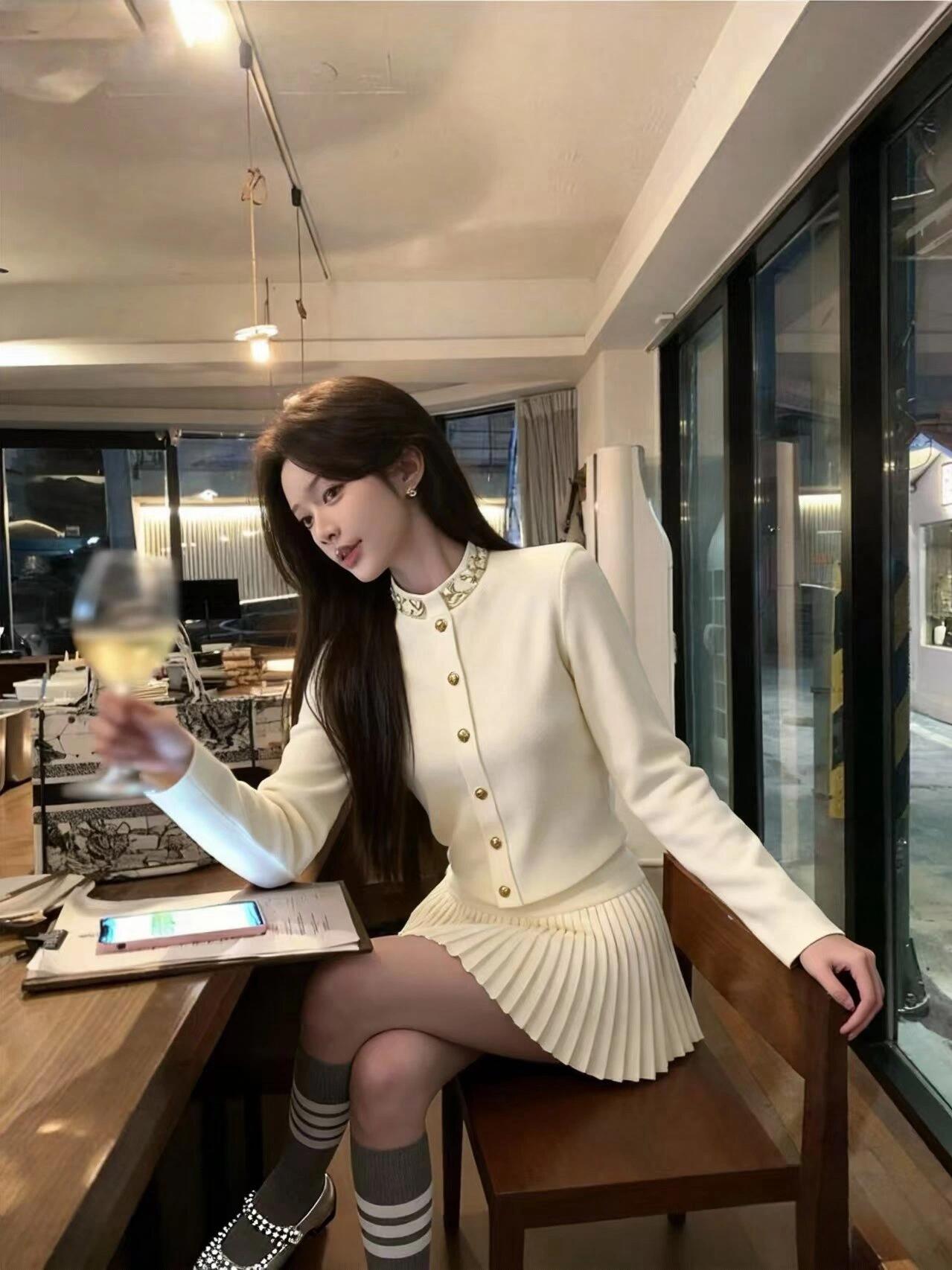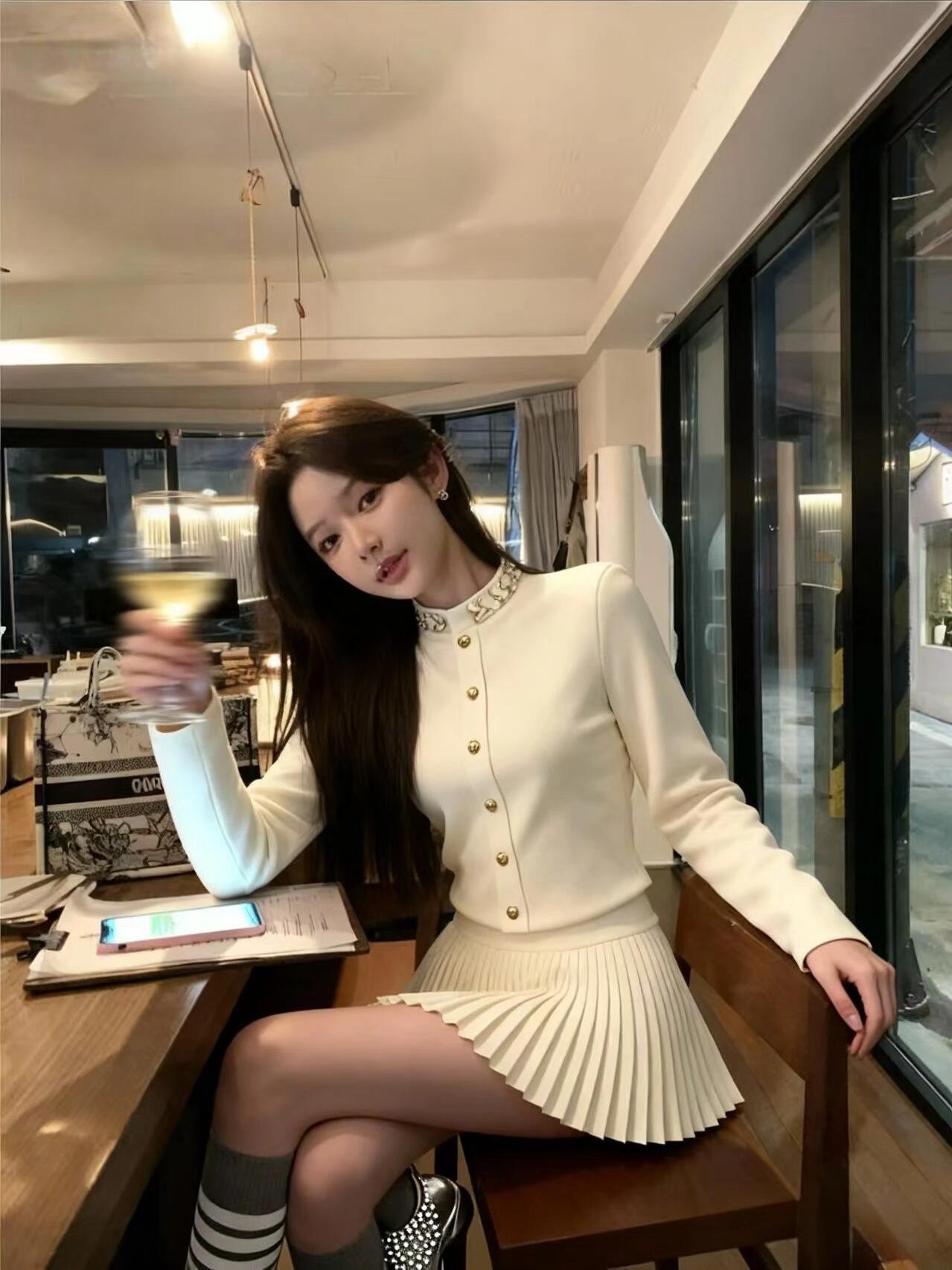 FA55726# miu系千金风高级感套装镶钻针织开衫百褶半身裙小香两件套 服裝批發女裝批發服飾貨源