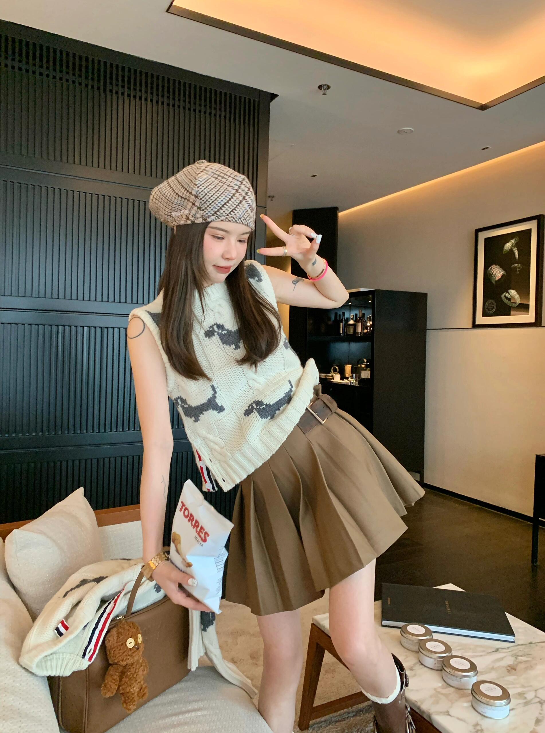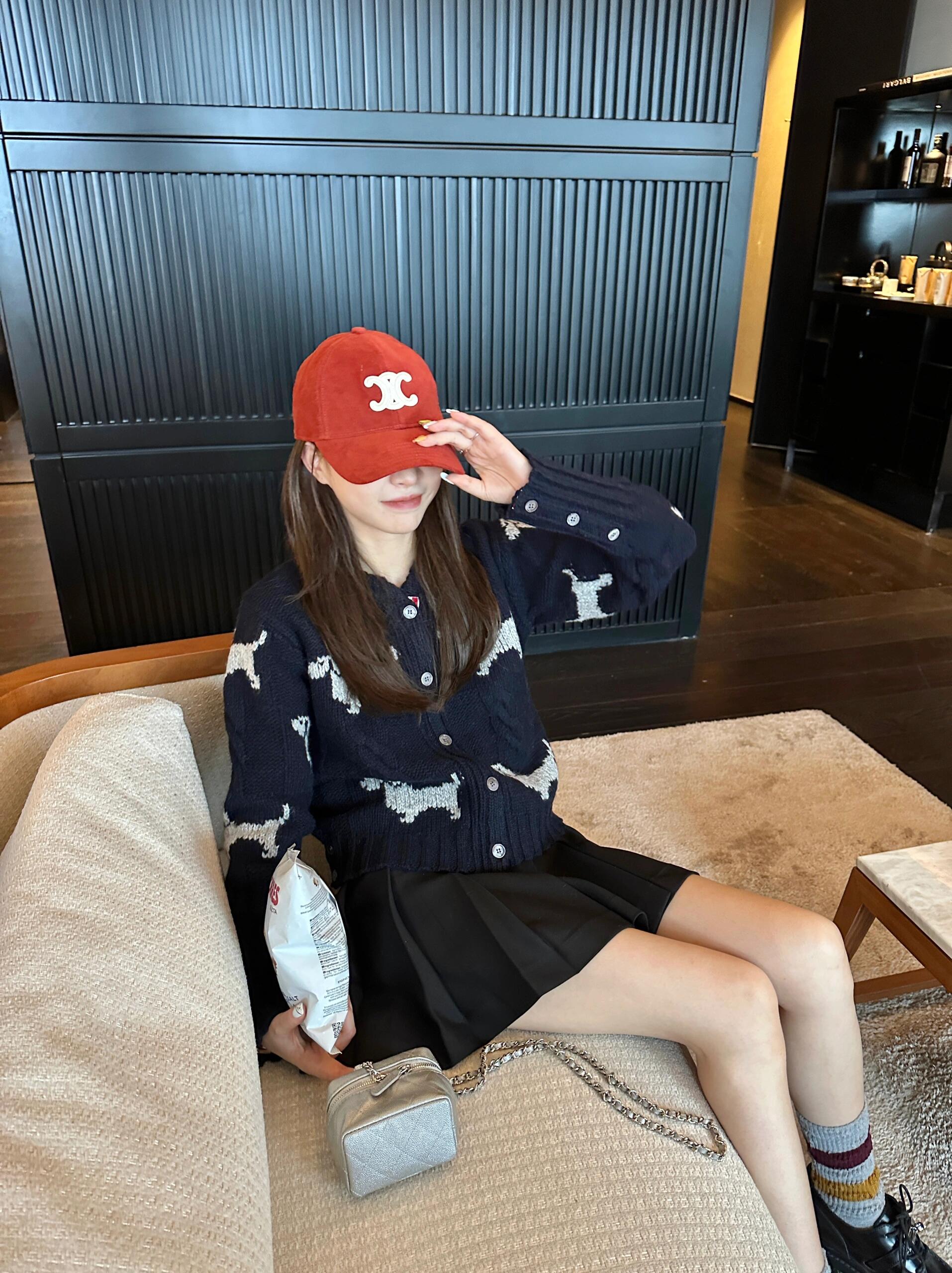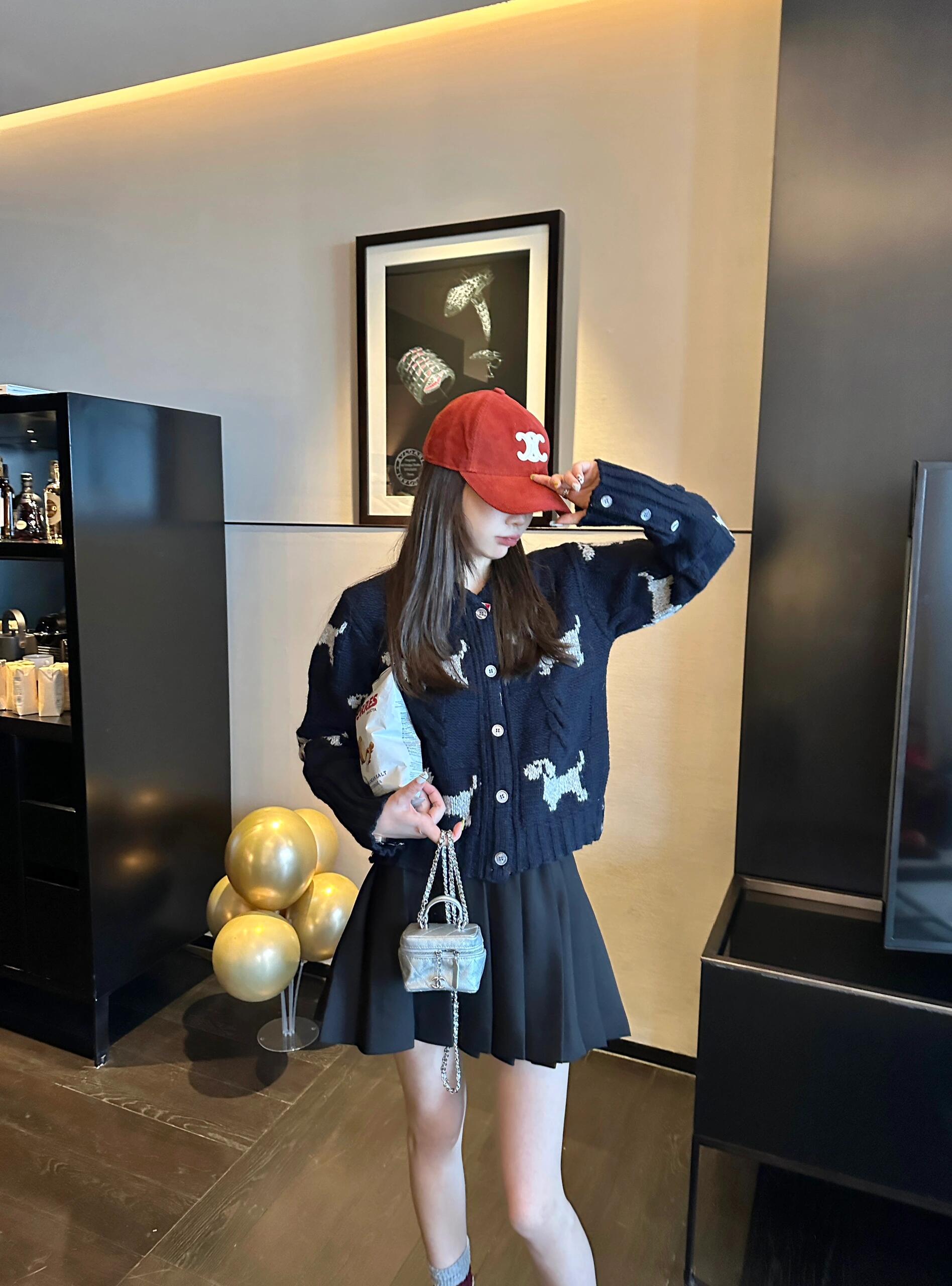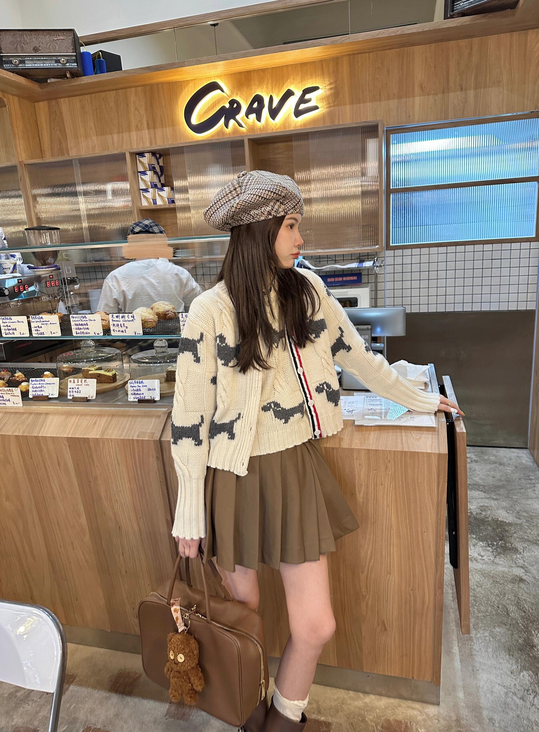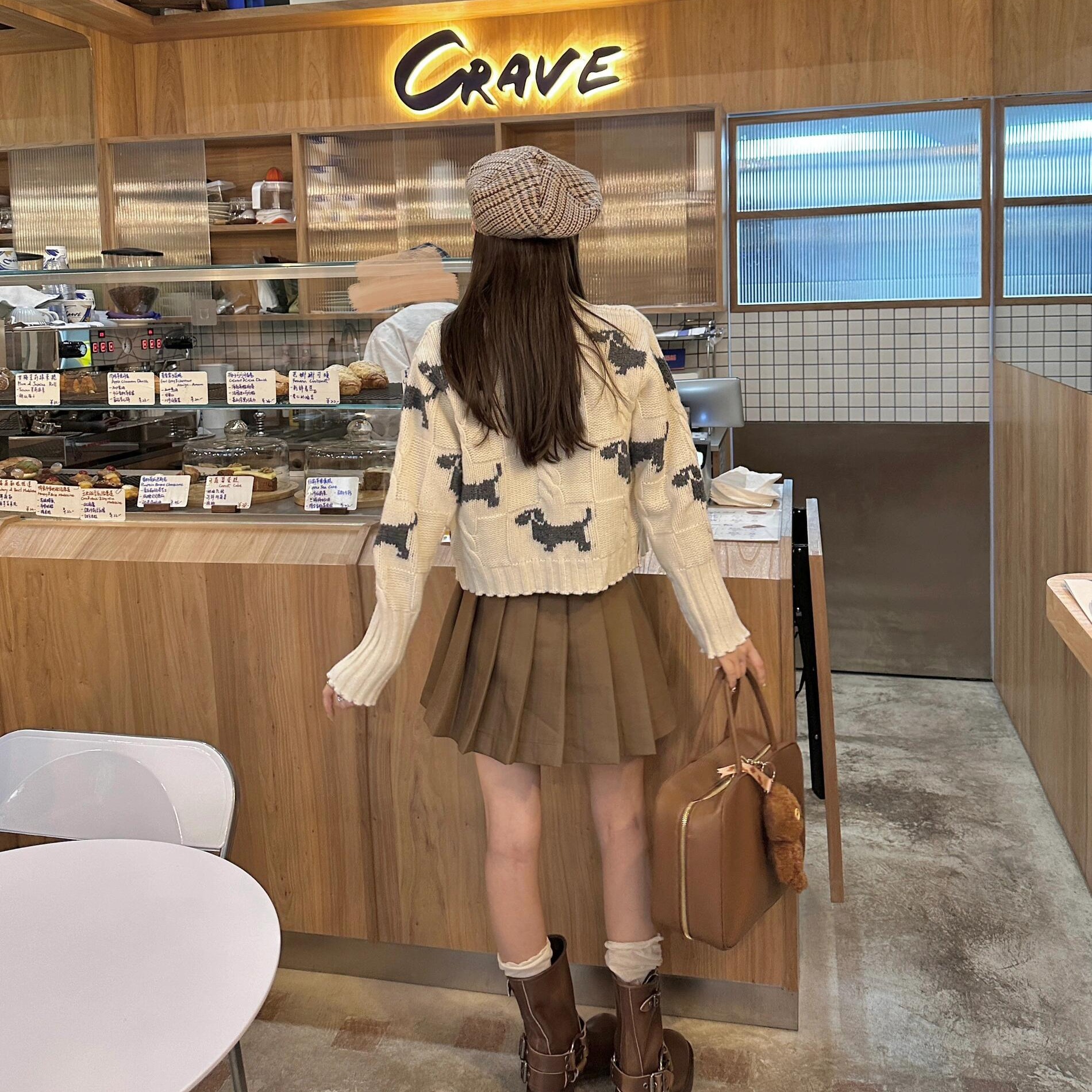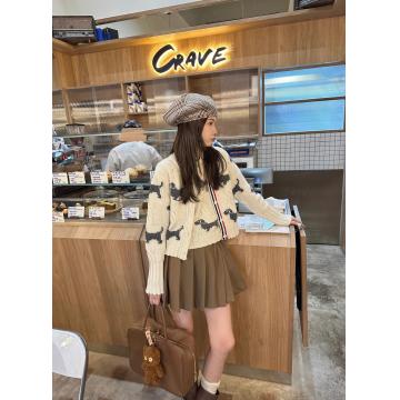 FA55729# 百搭设计感狗狗提花麻花慵懒圆领针织开衫女上衣短款外套 服裝批發女裝批發服飾貨源