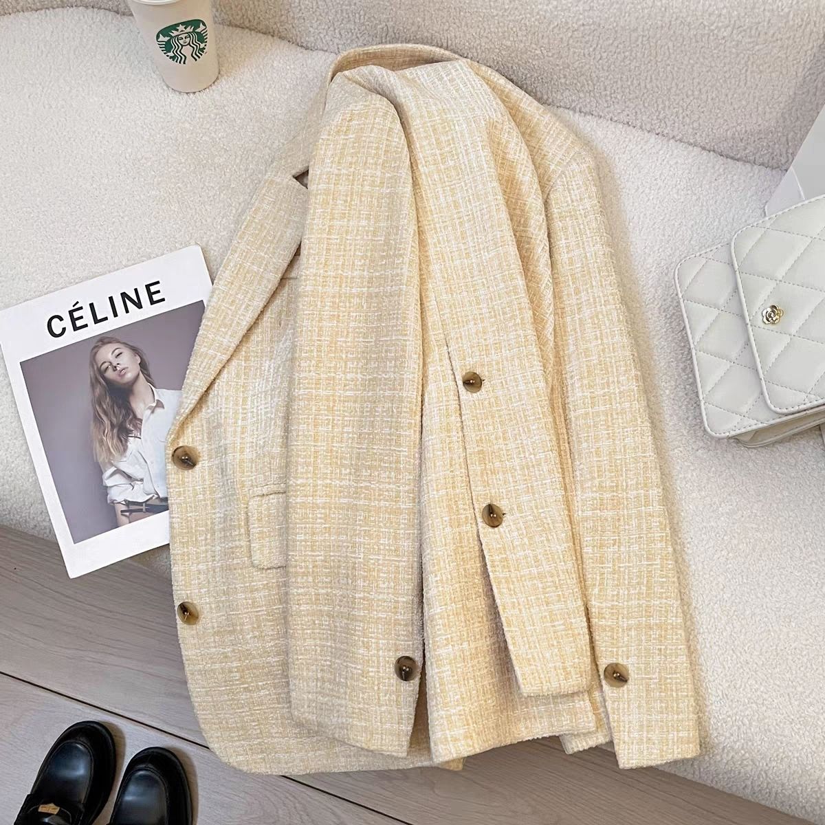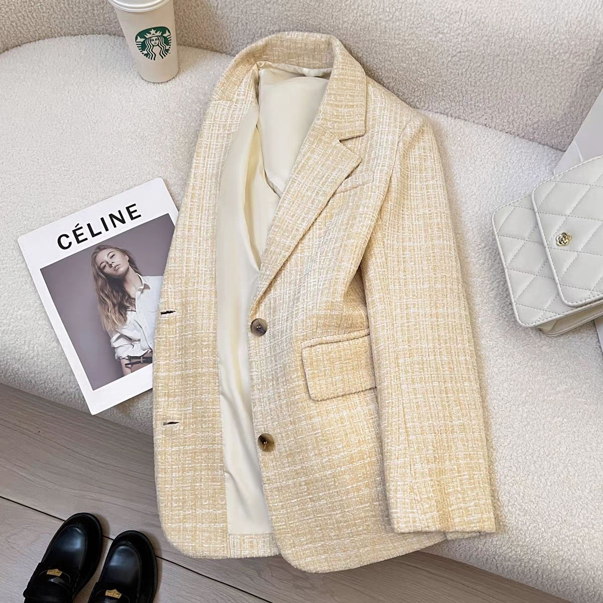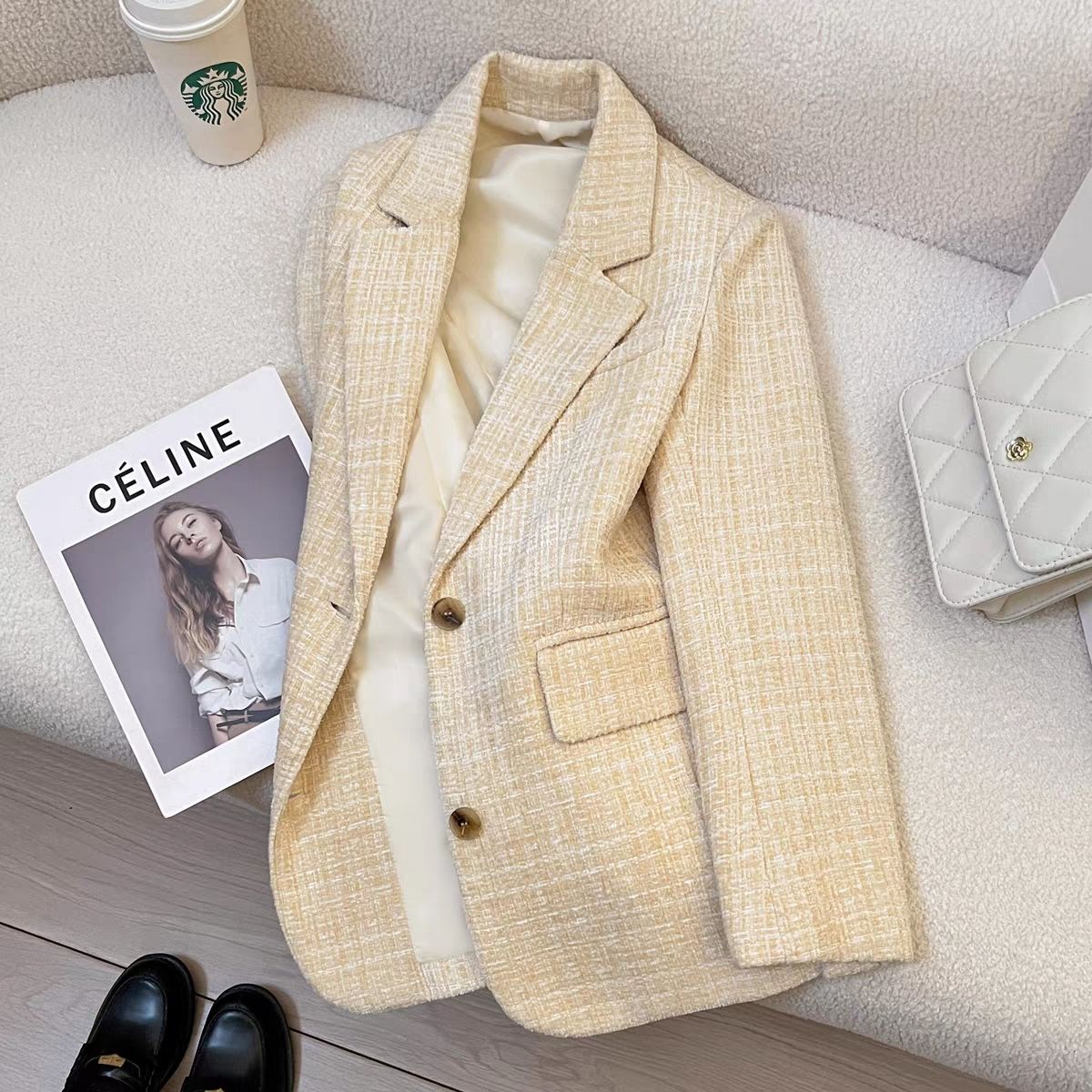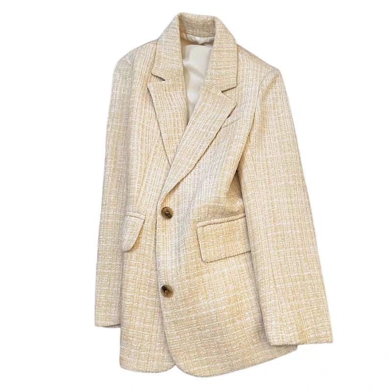 FA55977# 米黄色时尚设计感西装外套女秋冬季新款高级感气质百搭西服 服裝批發女裝批發服飾貨源