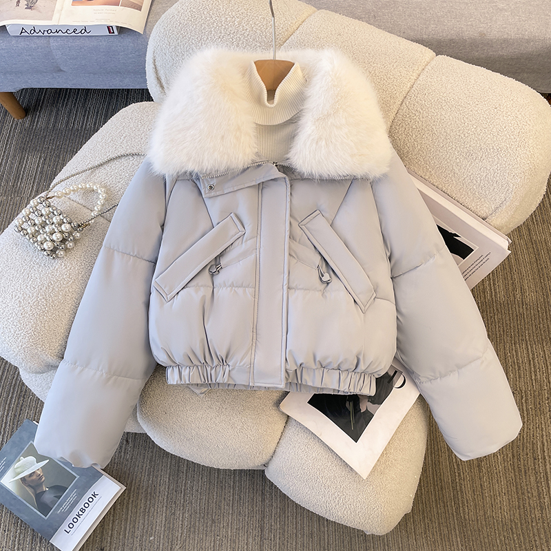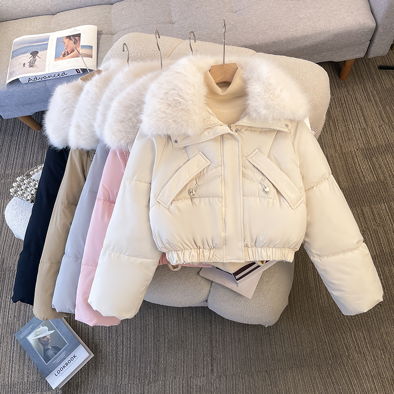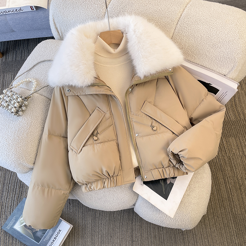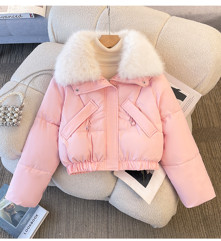 FA48081# 派克服女冬季新款显瘦羽绒棉服时尚加绒厚皮毛一体外套 服裝批發女裝批發服飾貨源